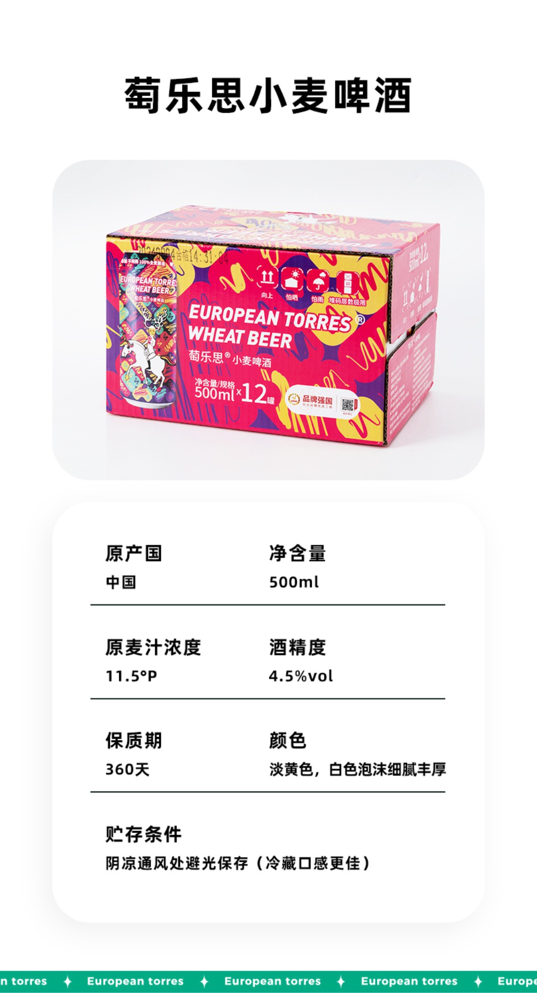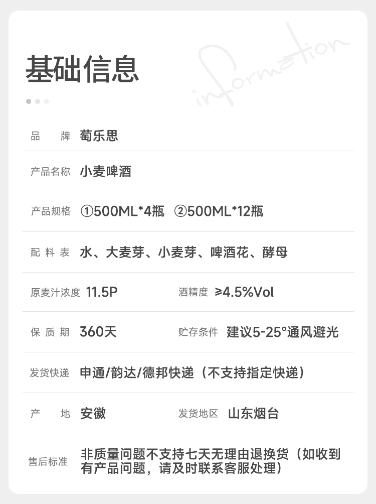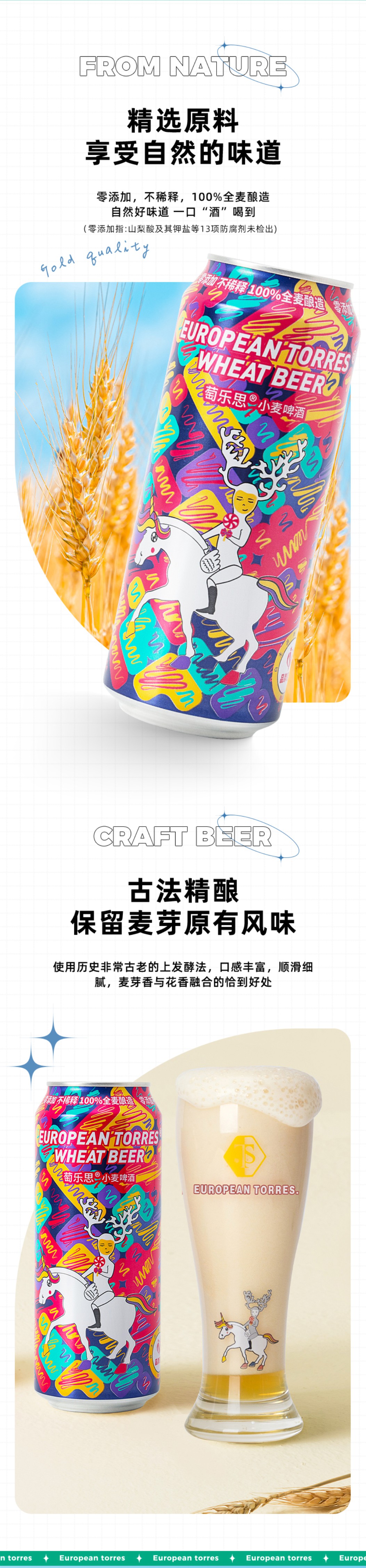 【萄乐思小麦啤酒】全麦酿造 泡沫细腻丰富 0糖 0脂肪 低嘌呤 艺术精酿浪漫微醺AA