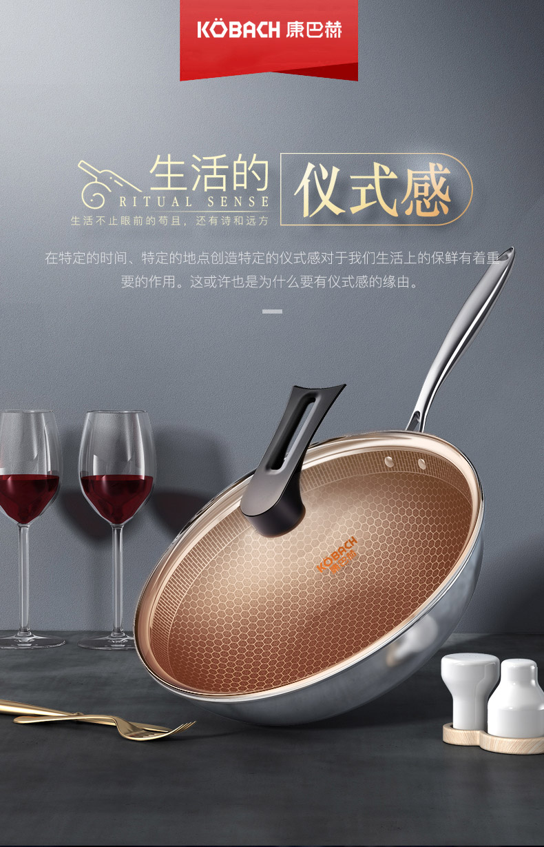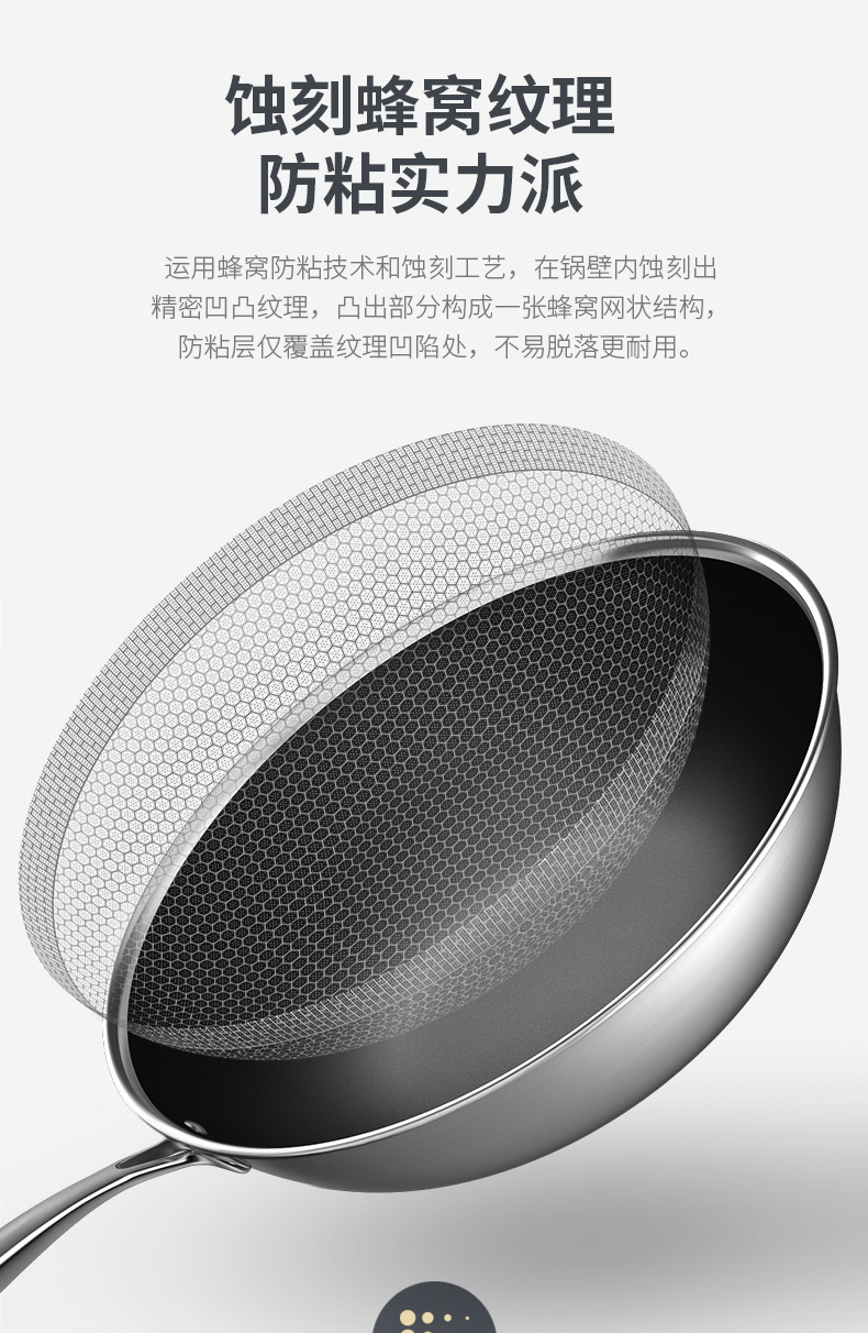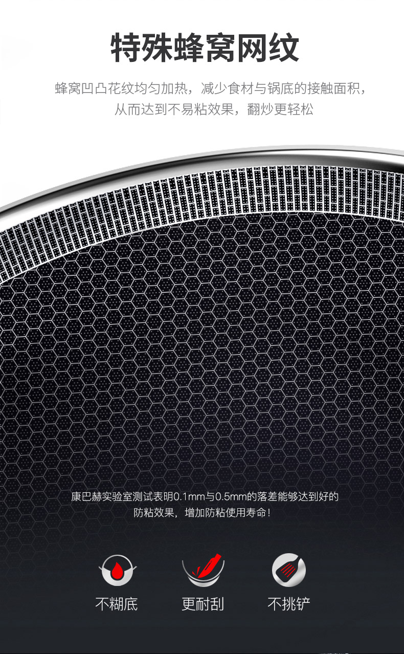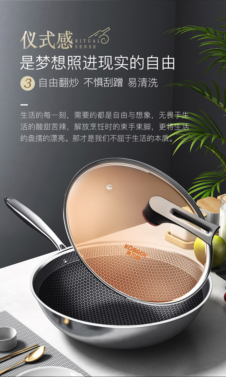 康巴赫第五代蜂窝不粘锅炒锅不锈钢炒菜锅家用