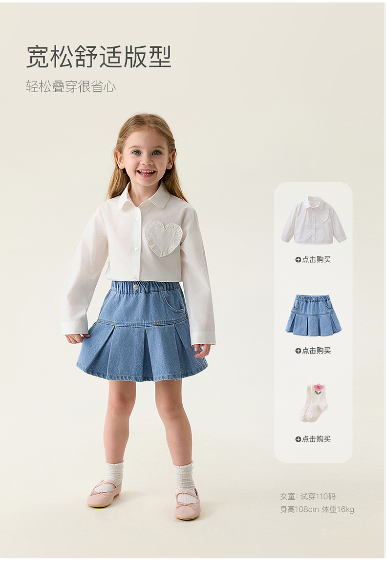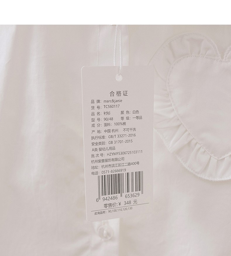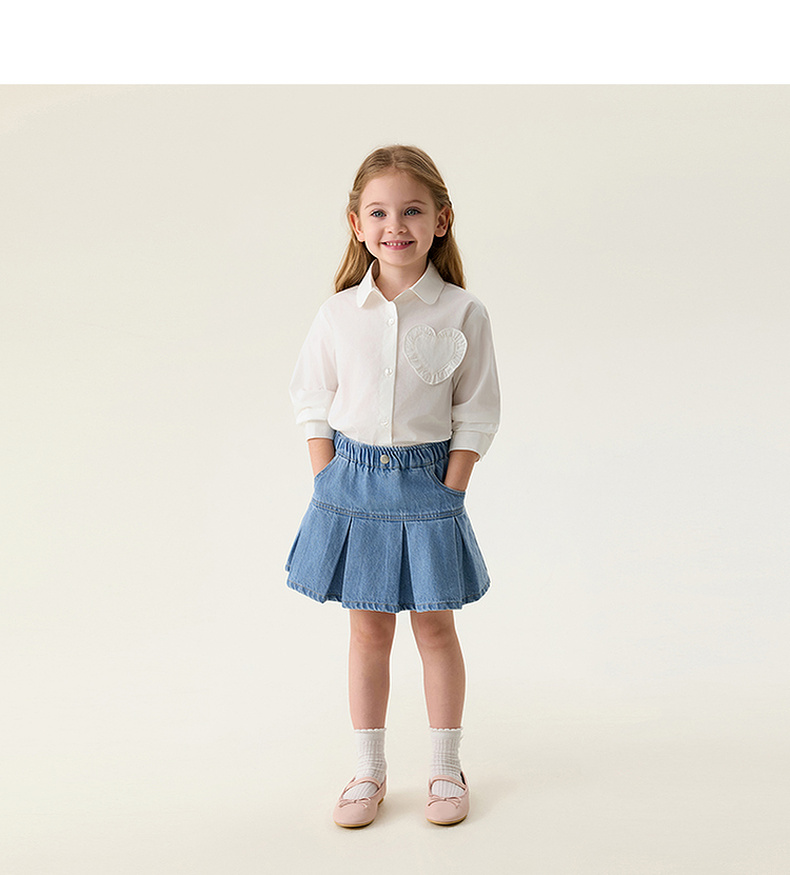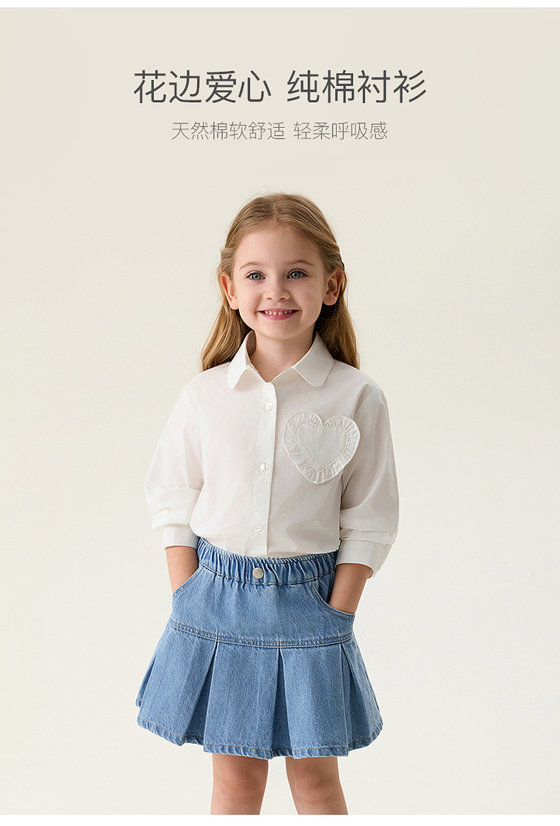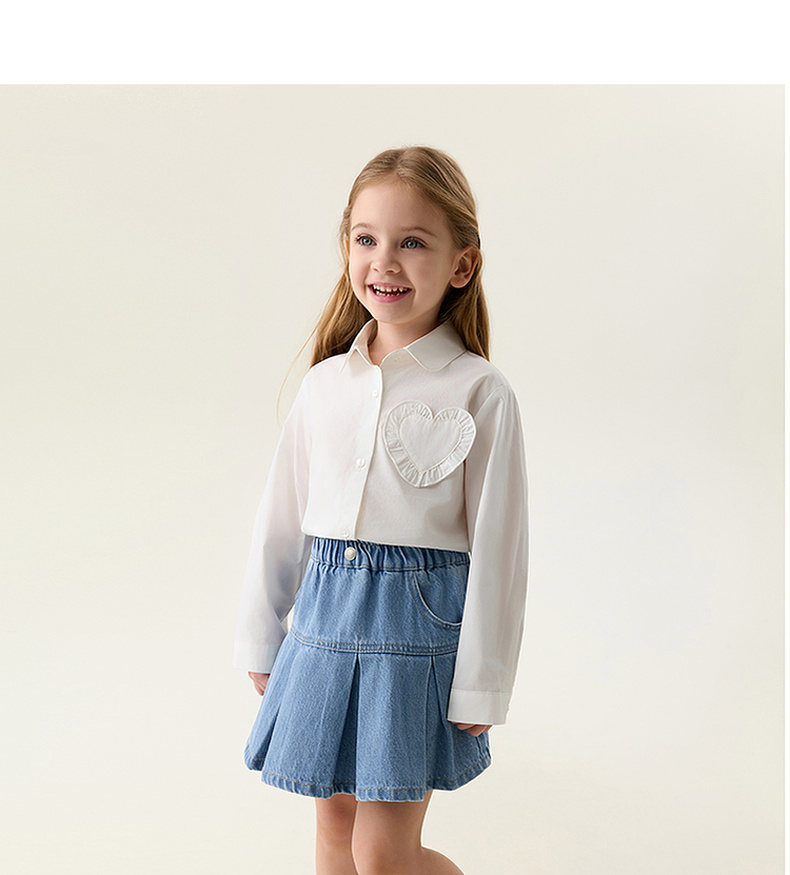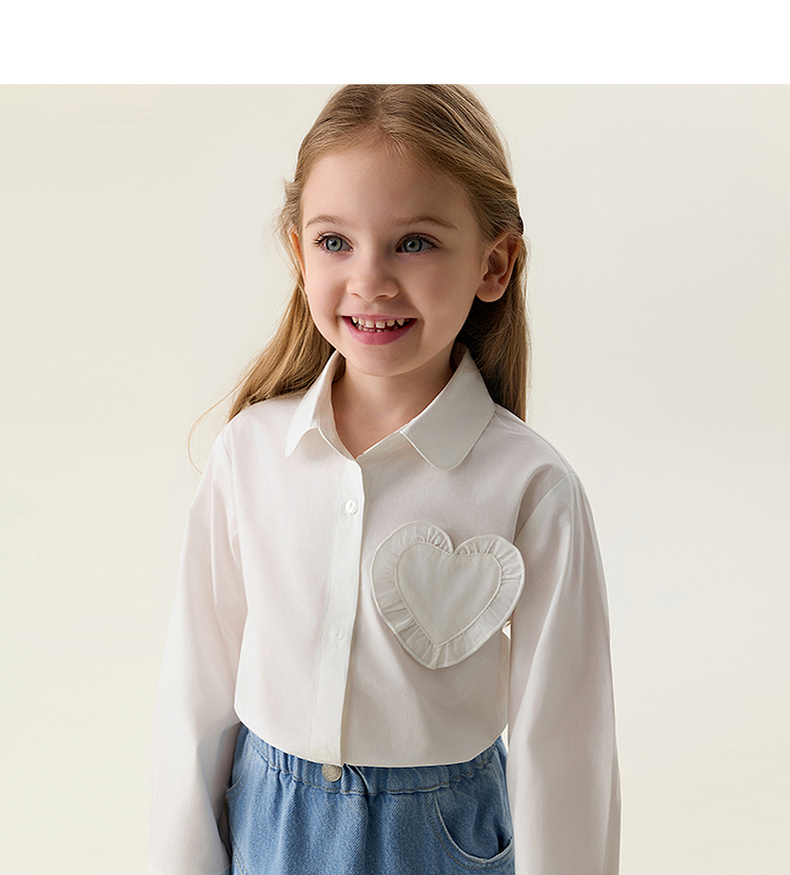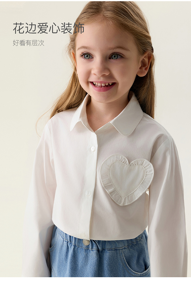 马克珍妮花边爱心女童纯棉衬衫 宝宝衬衣2026年春装新款560117