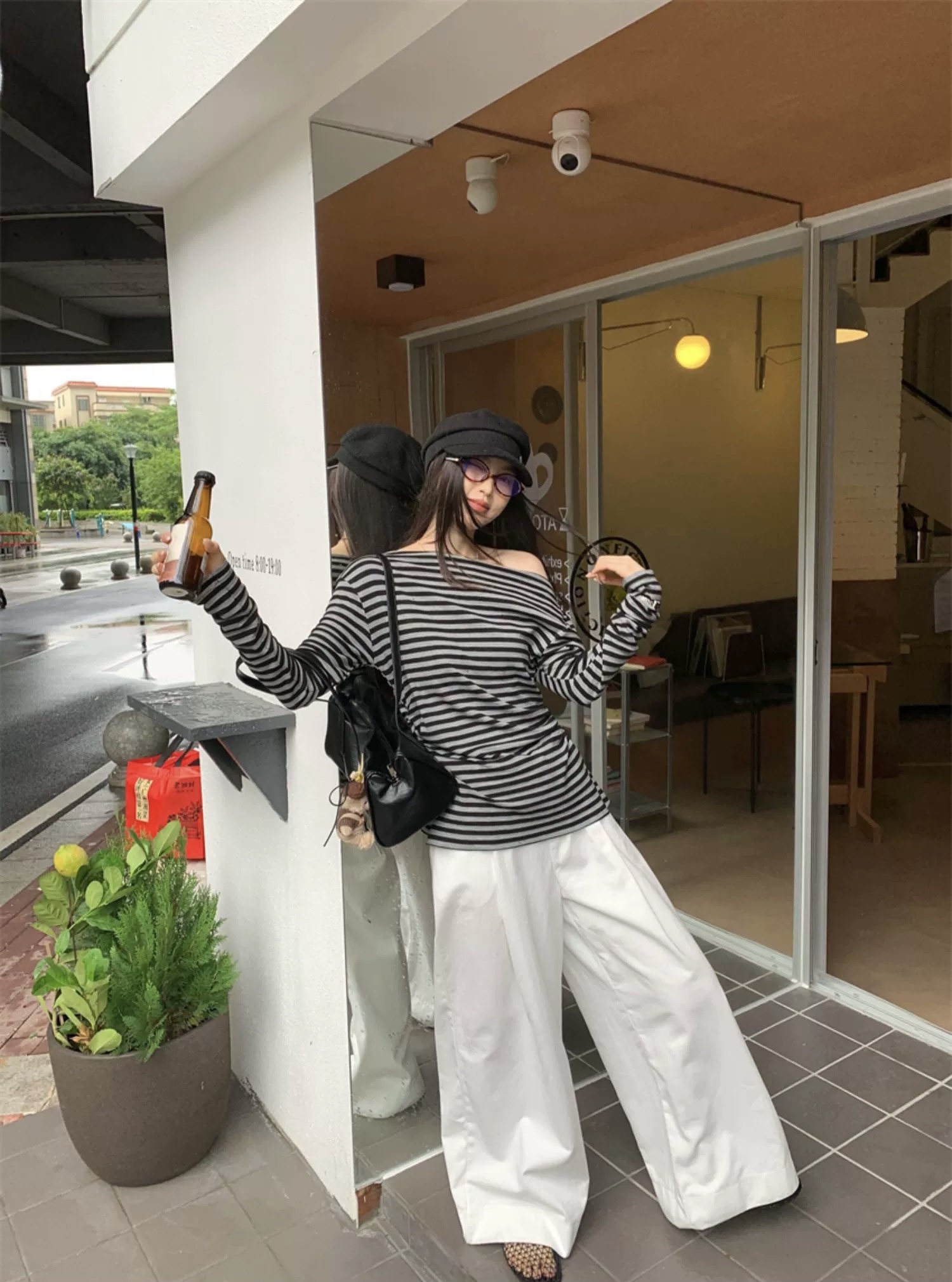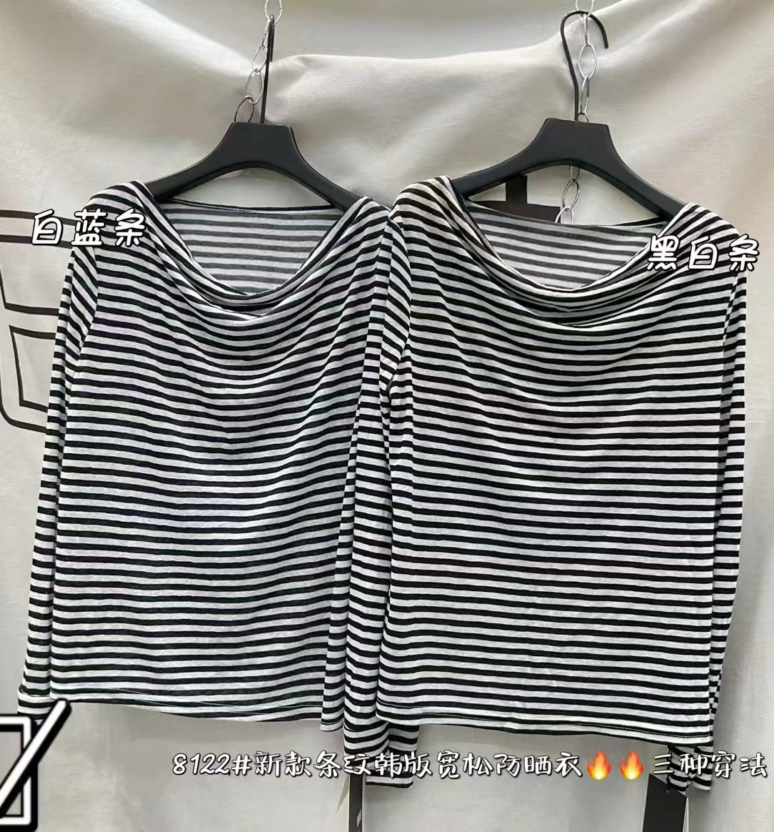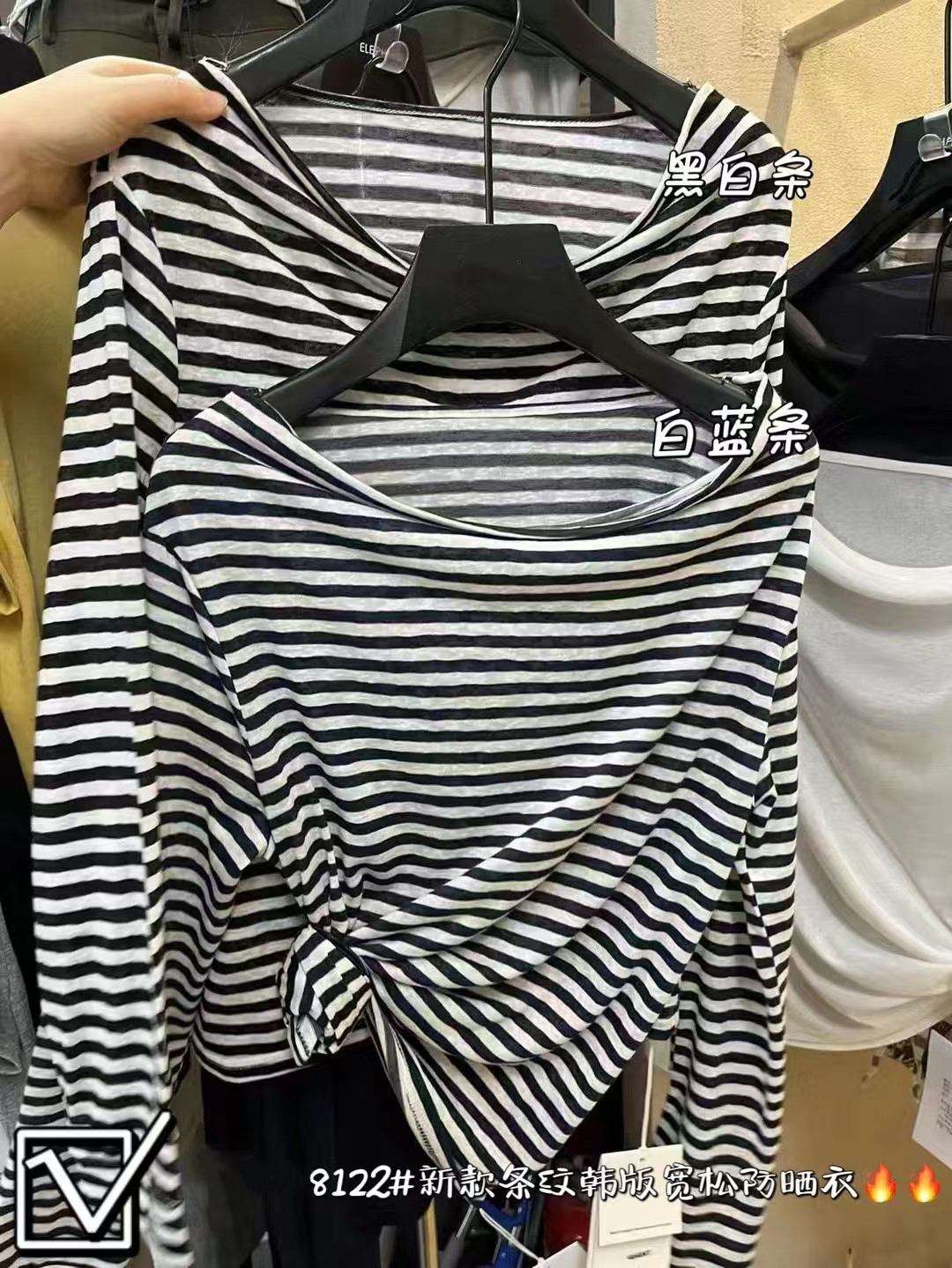 【GZ】无忧购“清仓大促”韩版休闲百搭斜肩条纹长袖T恤8122(截单后3-5天发货)