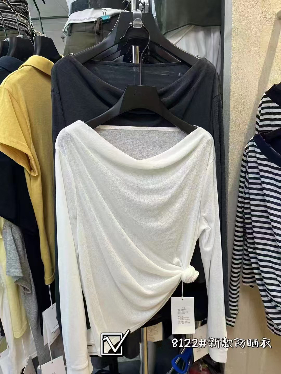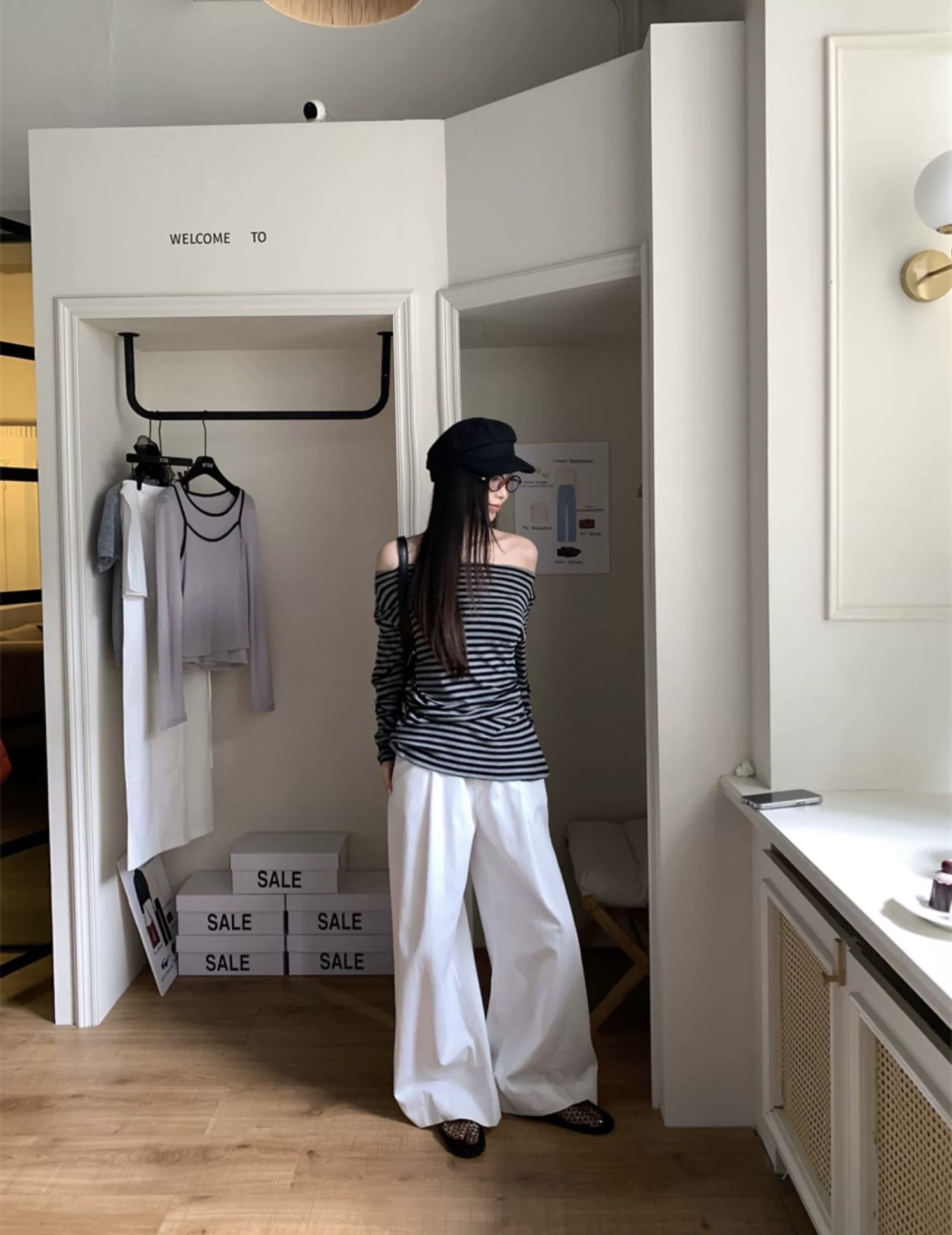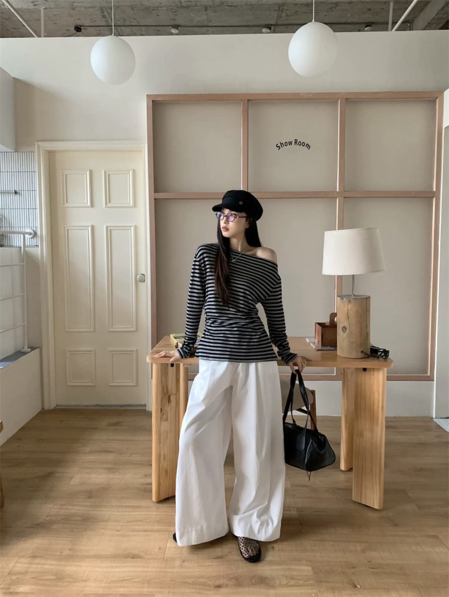 【GZ】无忧购“清仓大促”韩版休闲百搭斜肩条纹长袖T恤8122(截单后3-5天发货)