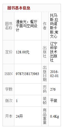本书内容源于编者与书中来自世界各地的新锐设计师所进行的关于中小型餐厅从品牌设计到空间设计的深入交流与探讨,在此基础上进一步挖掘每个项目的特征与亮点,深度表现设计师魅力的设计灵魂!他们以谦虚但同时尖锐的目光寻找设计被需要的所在,并将每个设计细节地安置在能够被赋予生命的地方。 本书内容共分为墨西哥餐厅、西班牙餐厅、法式餐厅、英伦餐厅、意大利餐厅、日料店、地中海餐厅、海鲜餐厅、小酒馆、清真餐厅、素食餐厅、快餐店、比萨店、烧烤店以及其他创意餐厅,86个项目案例系统完整的展现了一个餐厅从平面到空间的整体设计,为读者揭示了餐厅设计的无限可能性。 |