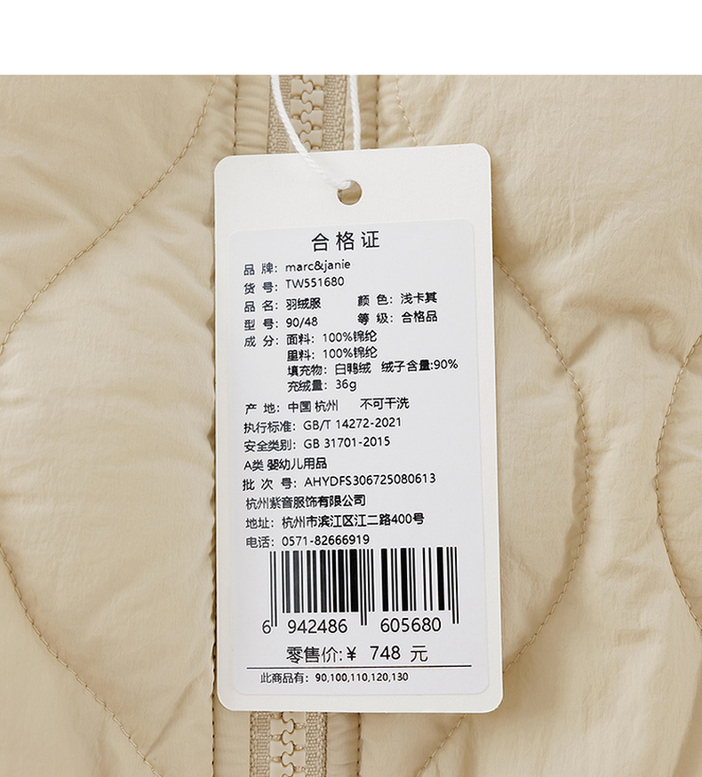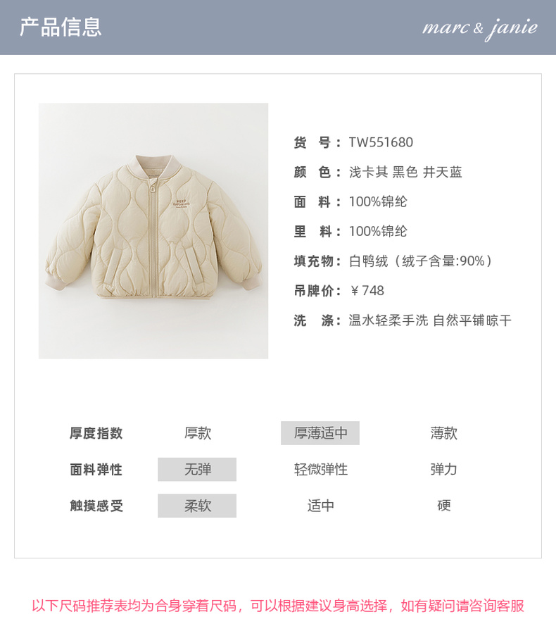 马克珍妮男童云感轻盈暖暖羽绒服2025年冬装新款551680
