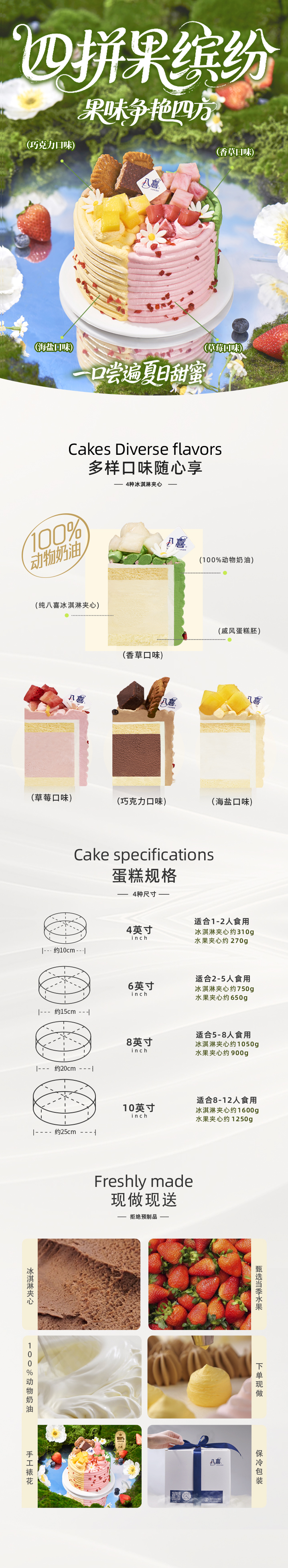 ※【四拼果缤纷】4英寸-冰淇淋蛋糕