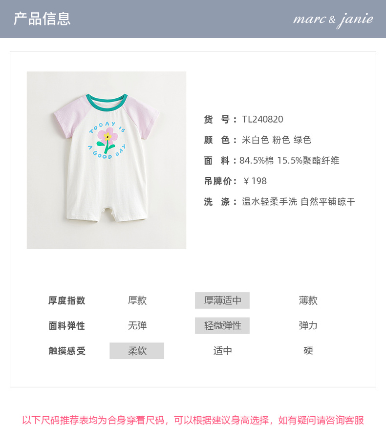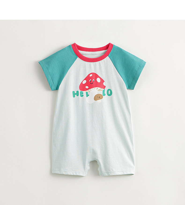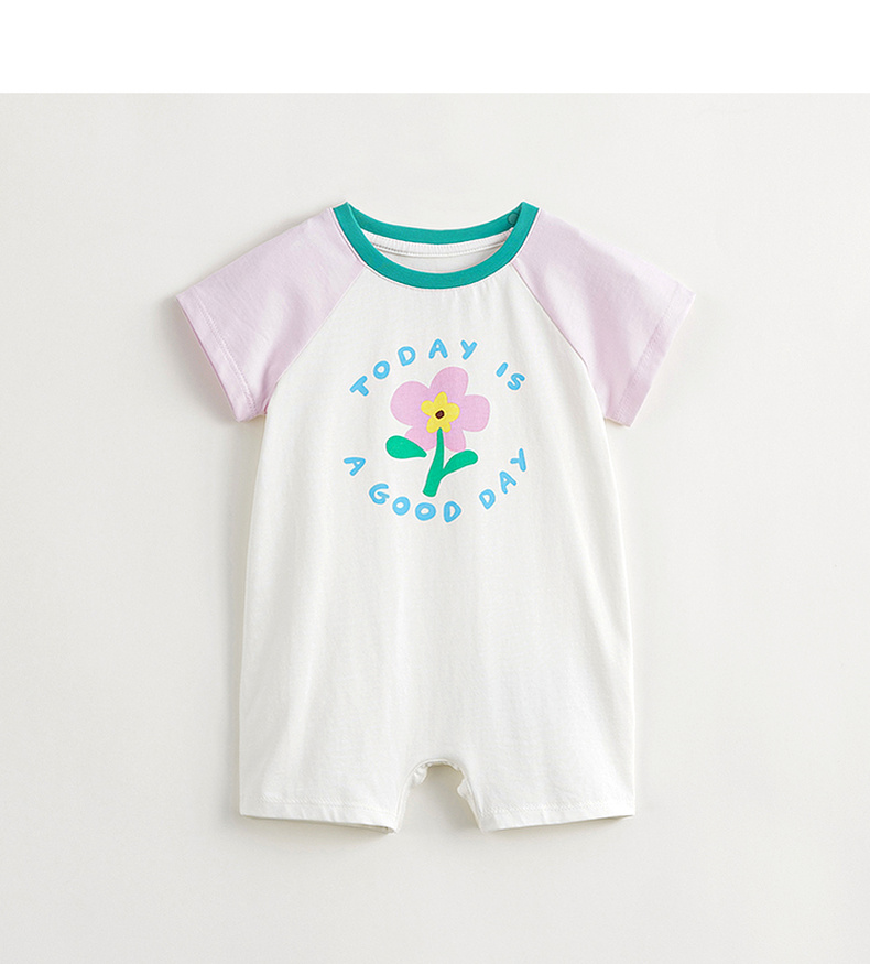 [凉感透气]马克珍妮宝宝趣味植物拼色短袖连体衣婴儿爬服夏240820