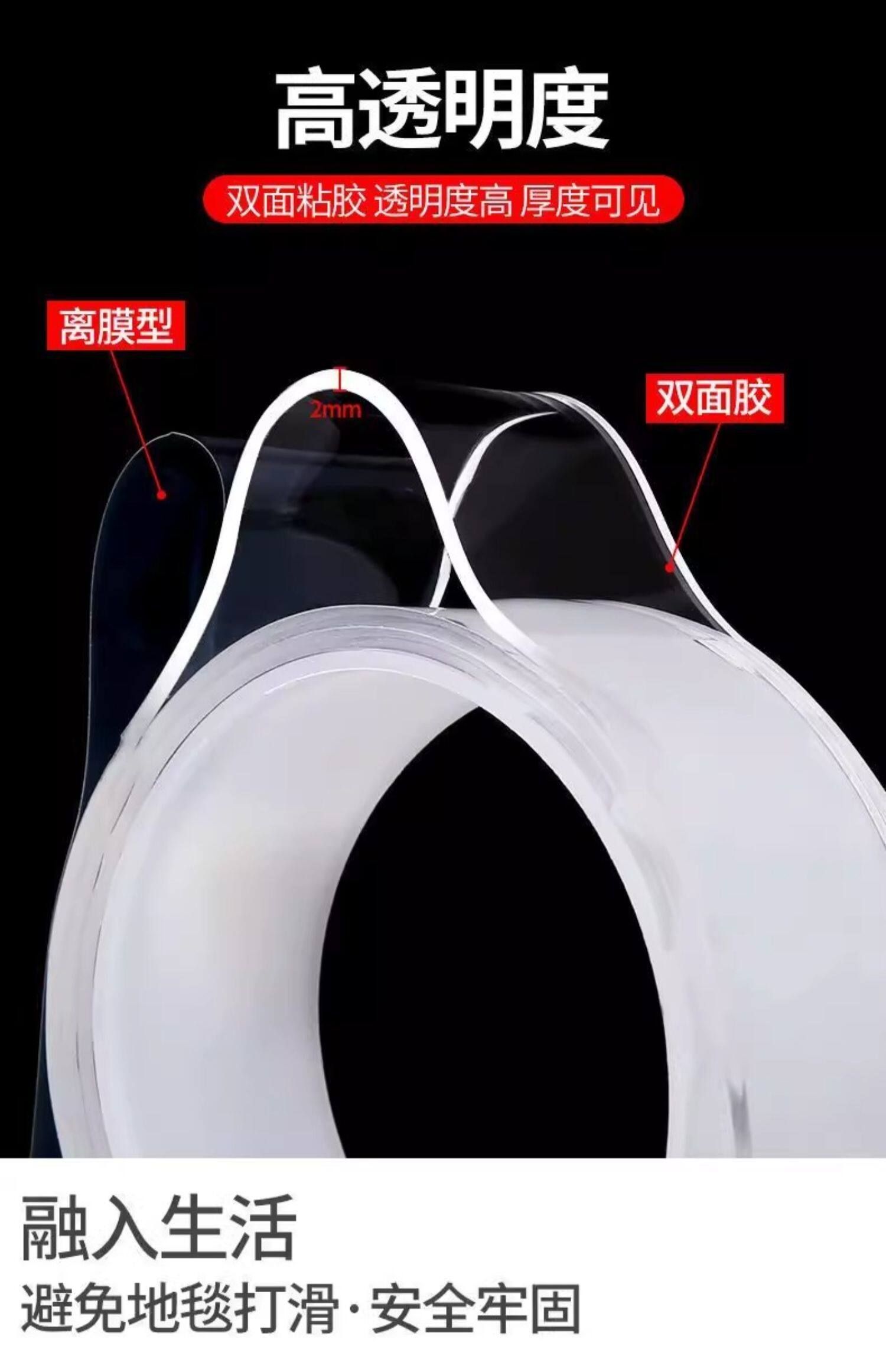 胶双面胶高粘度固定两面3m透明亚克力纳米不魔力墙面强力留痕车用