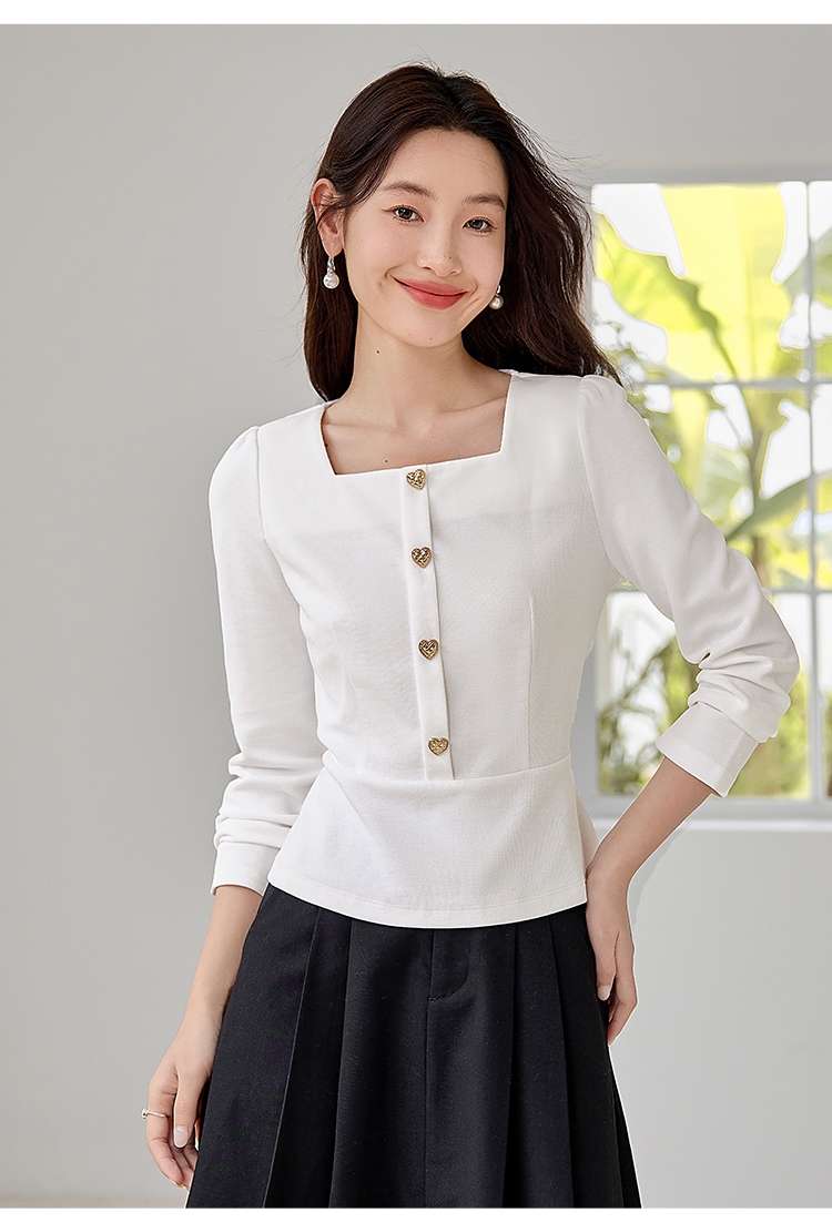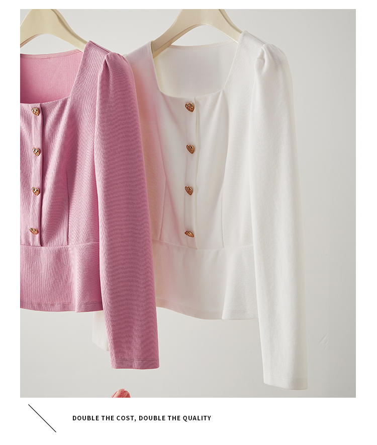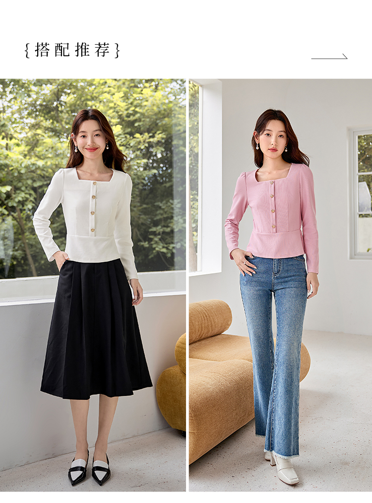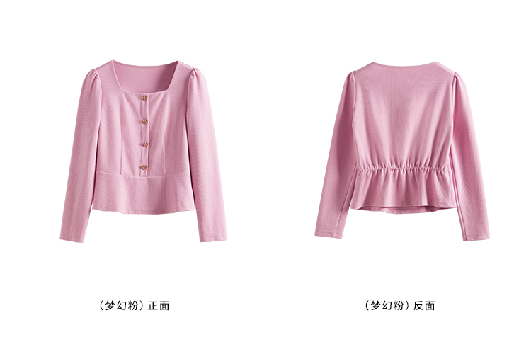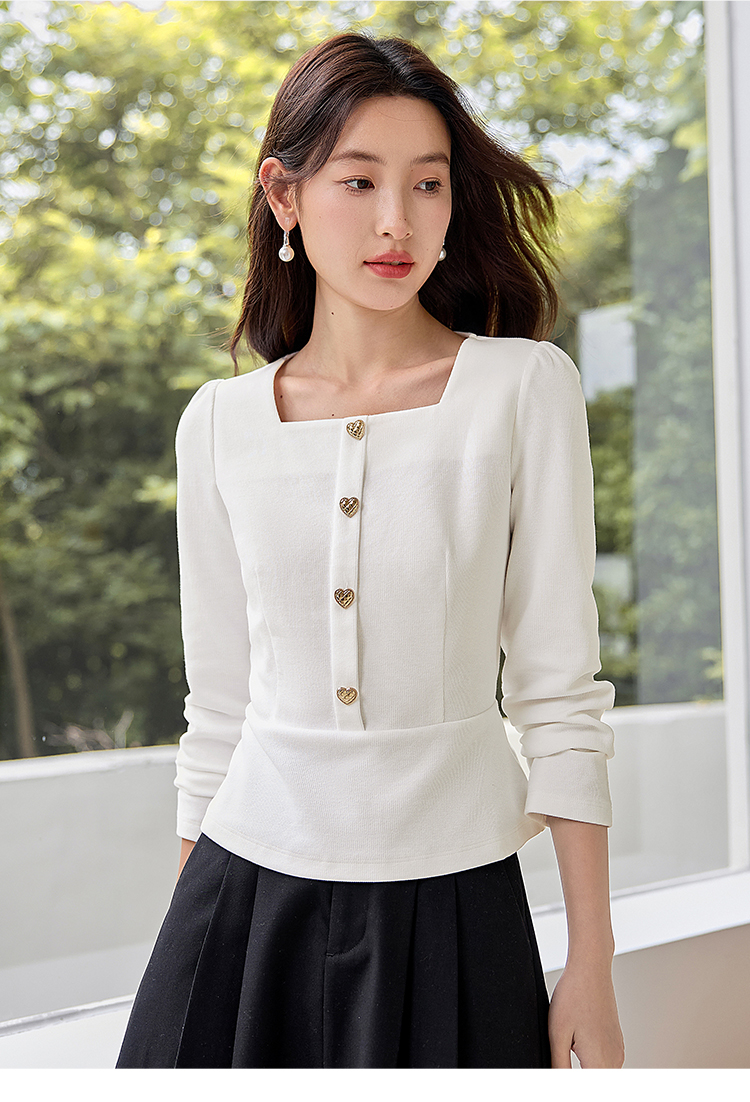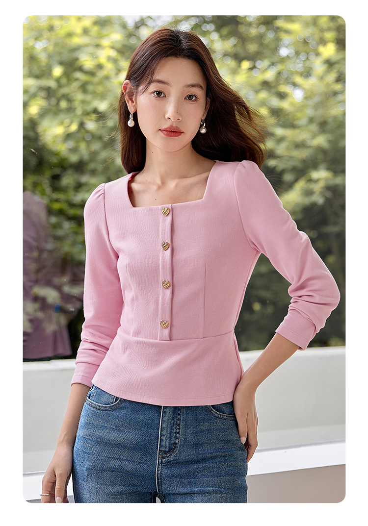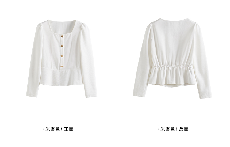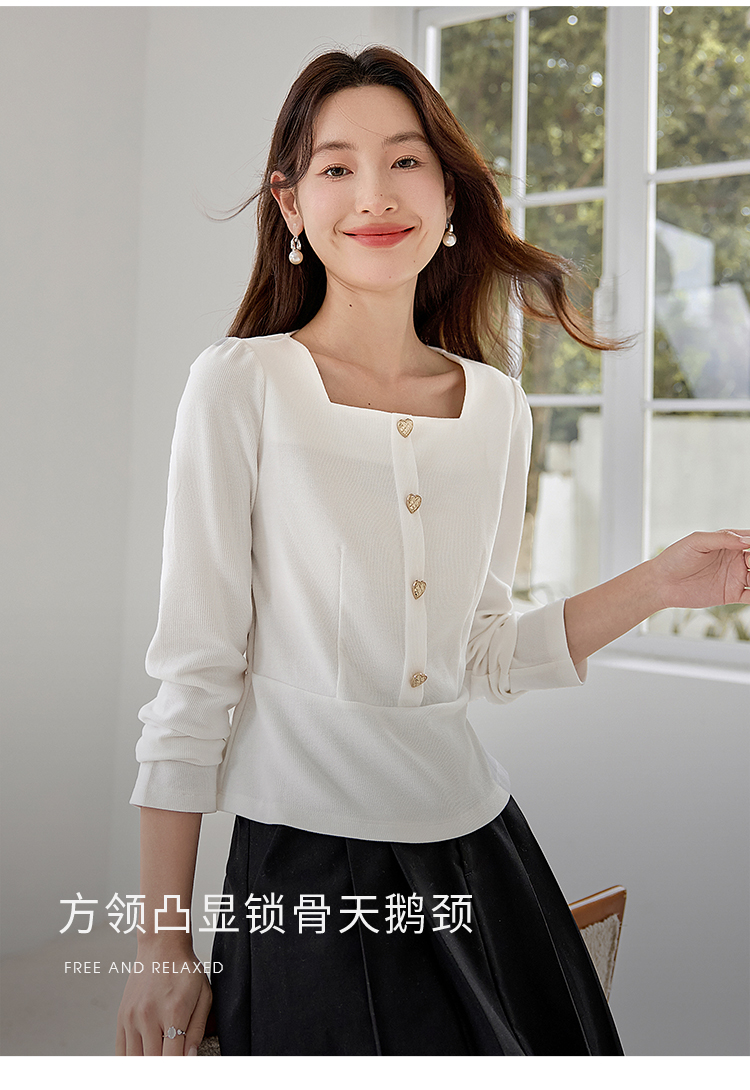 【五折购】熙世界法式方领针织衫女2025秋季新款收腰时尚洋气长袖T恤上衣
