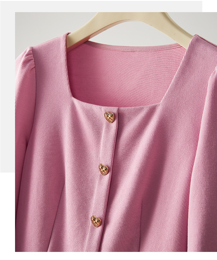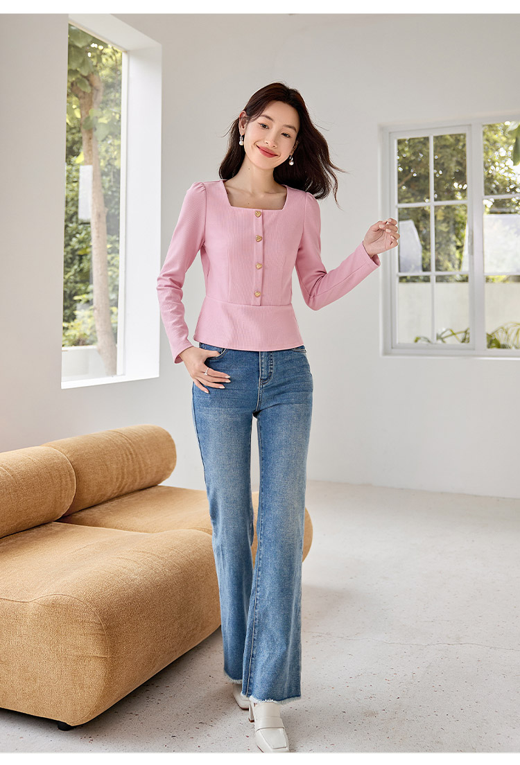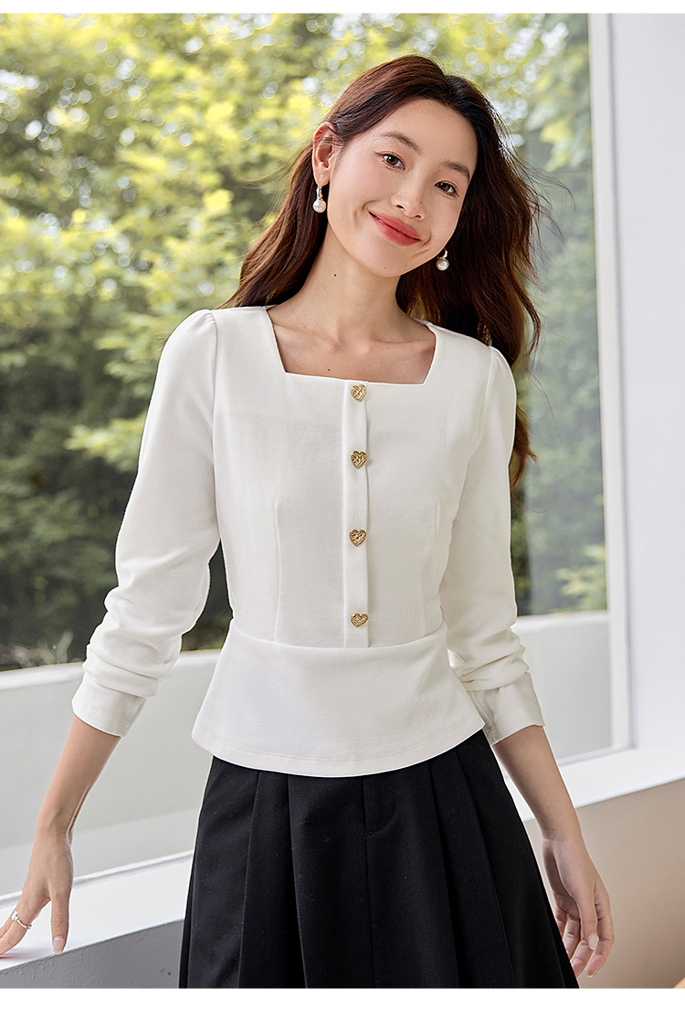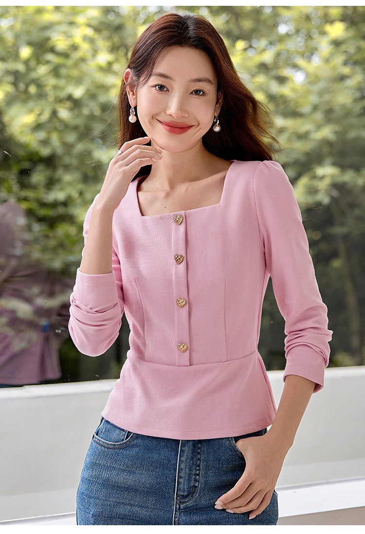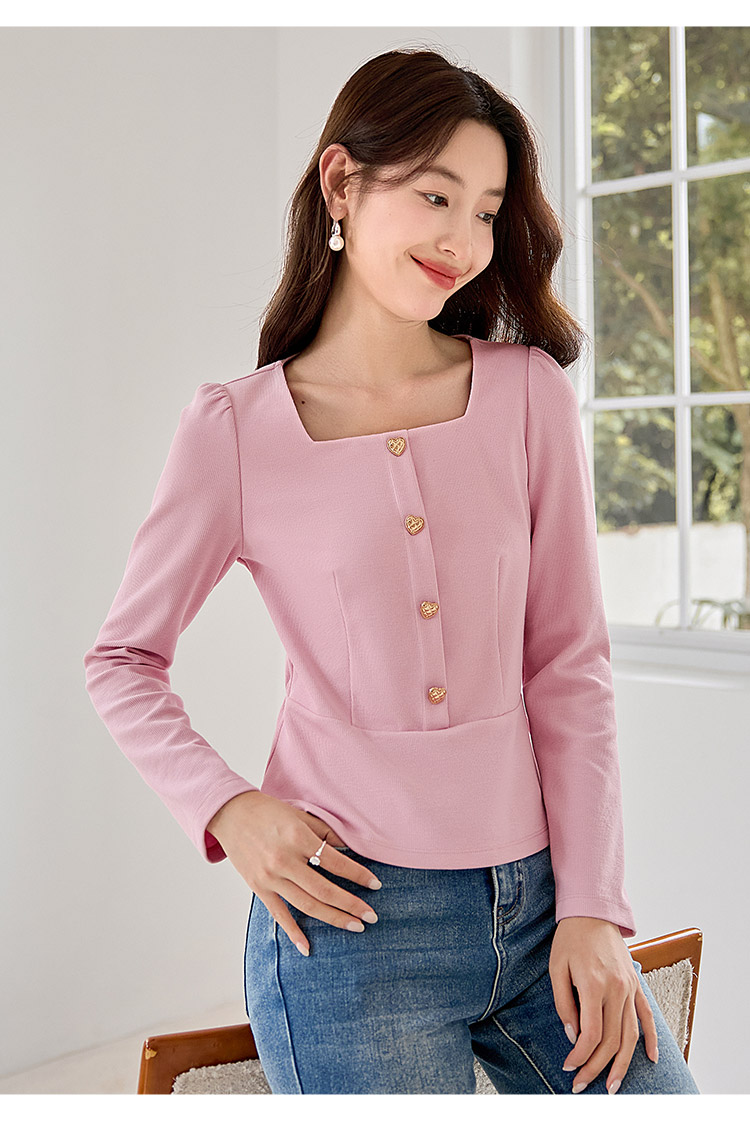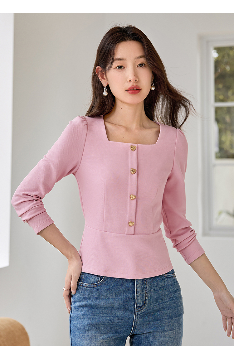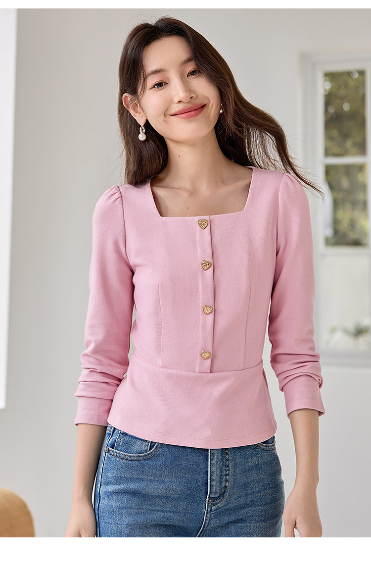 【五折购】熙世界法式方领针织衫女2025秋季新款收腰时尚洋气长袖T恤上衣