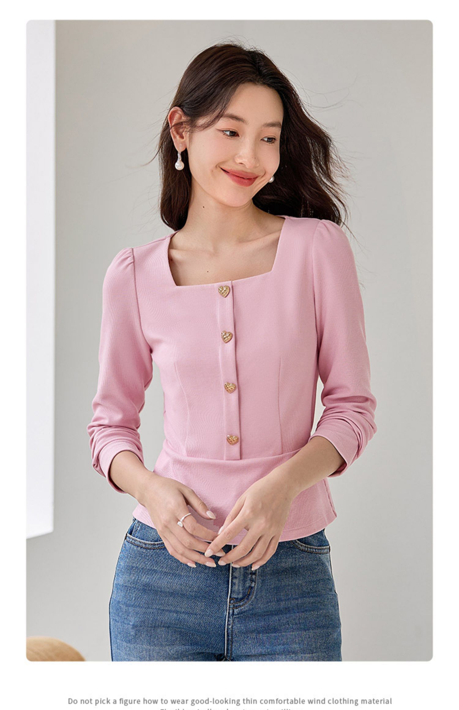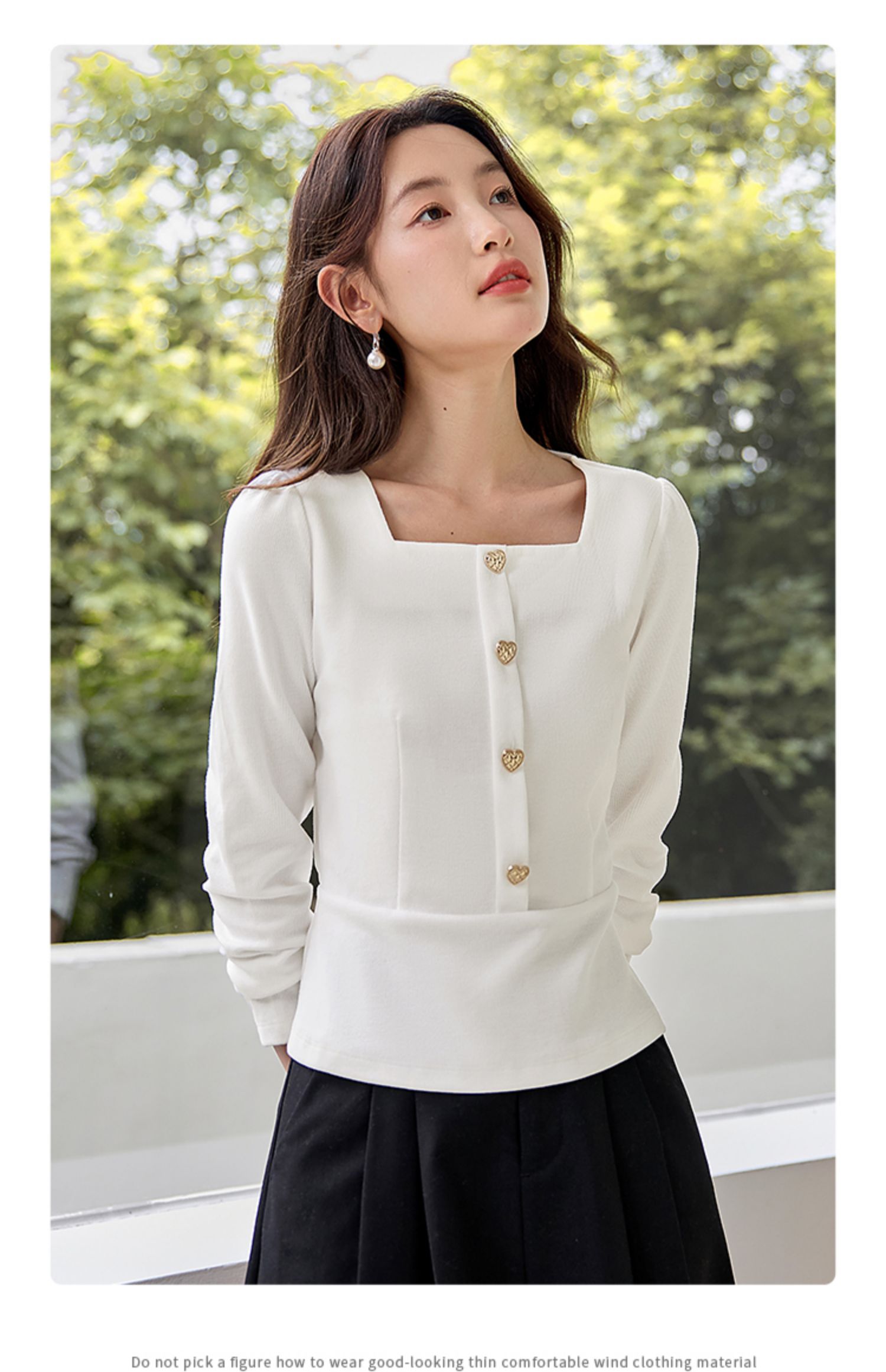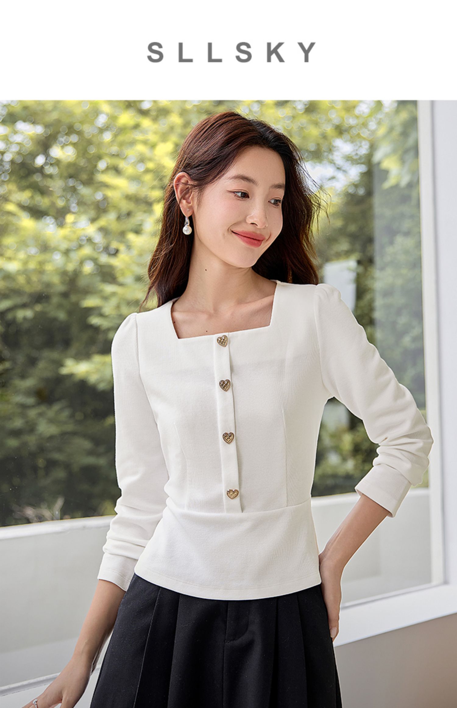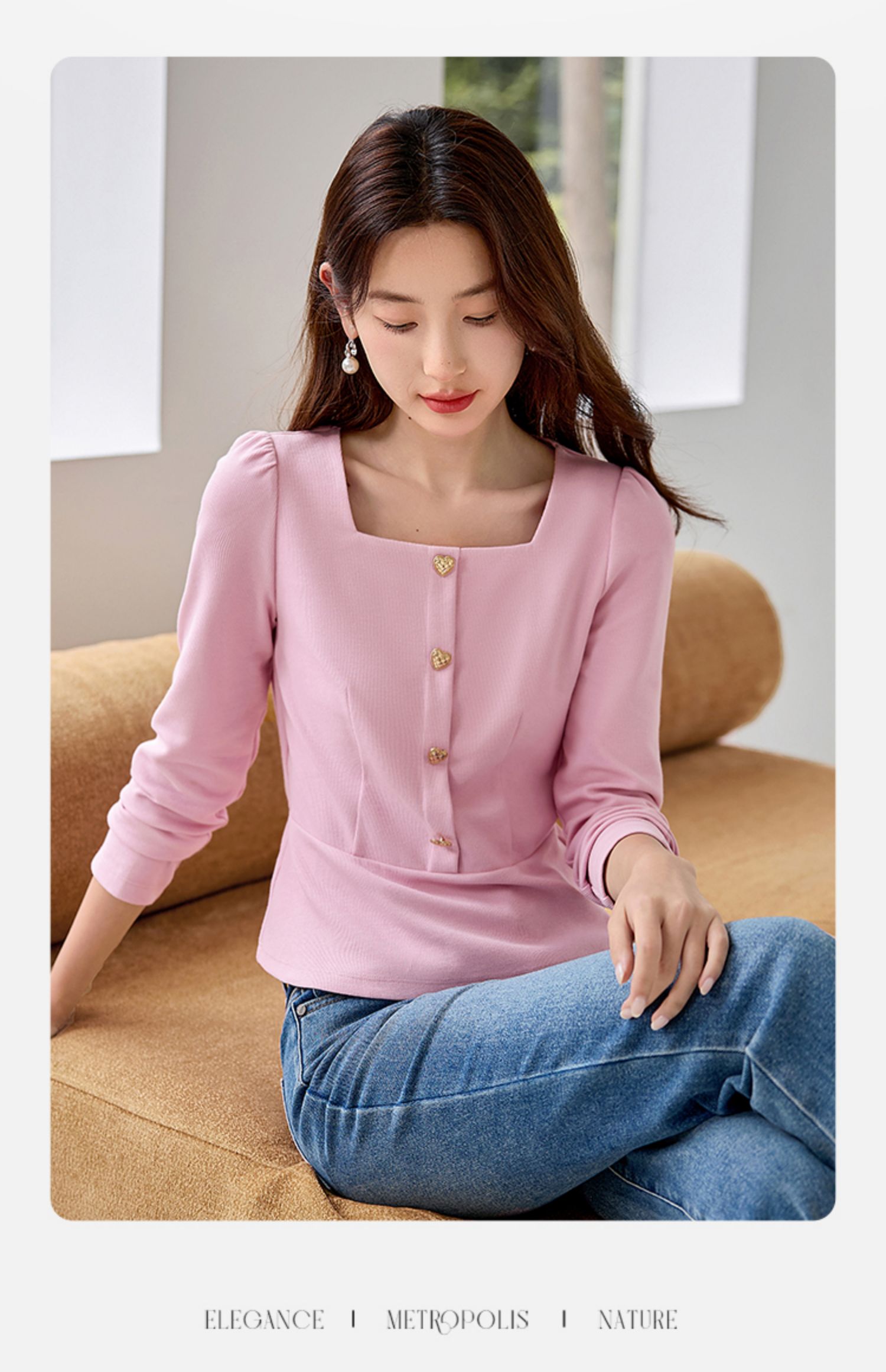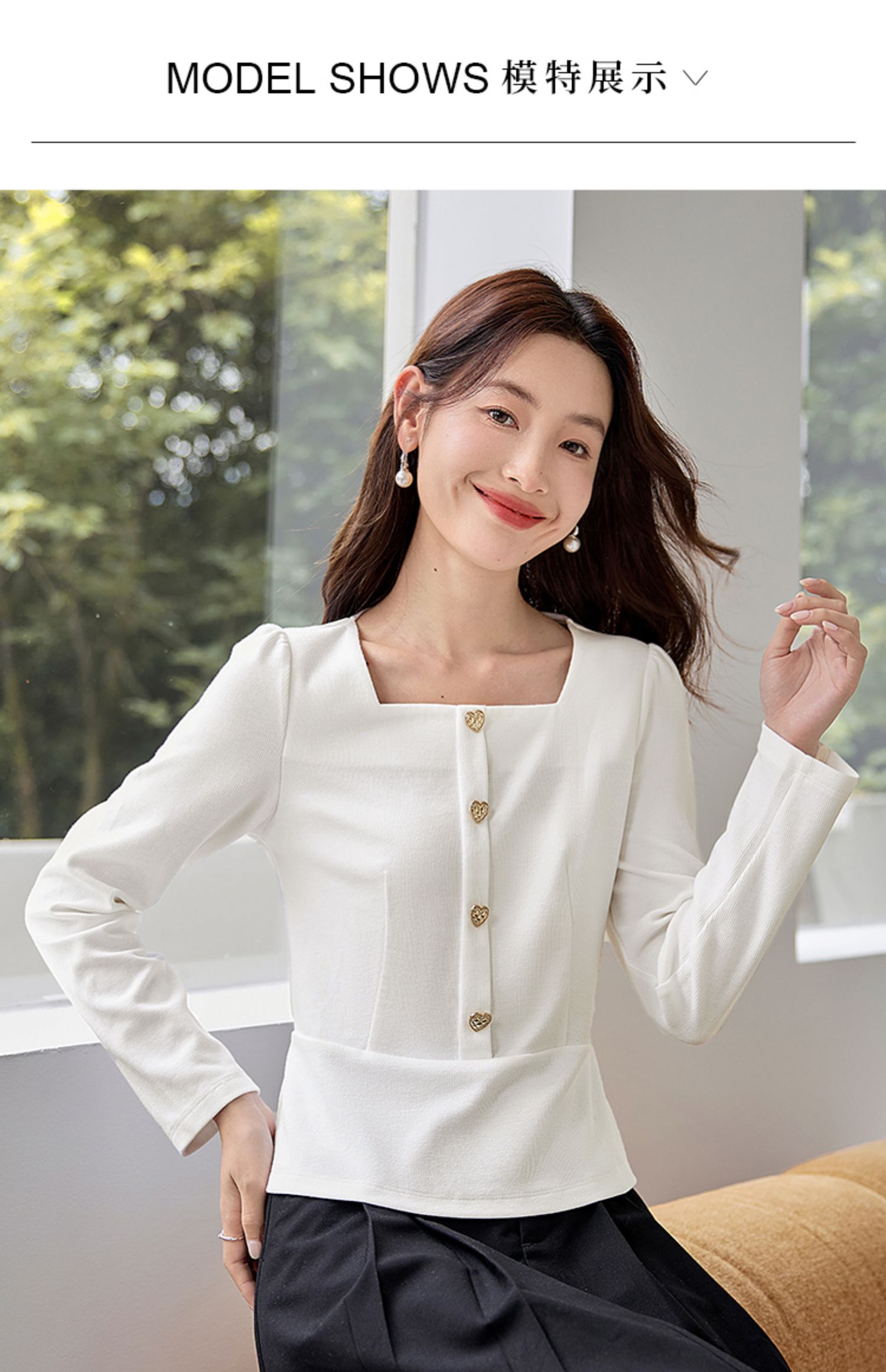 【五折购】熙世界法式方领针织衫女2025秋季新款收腰时尚洋气长袖T恤上衣