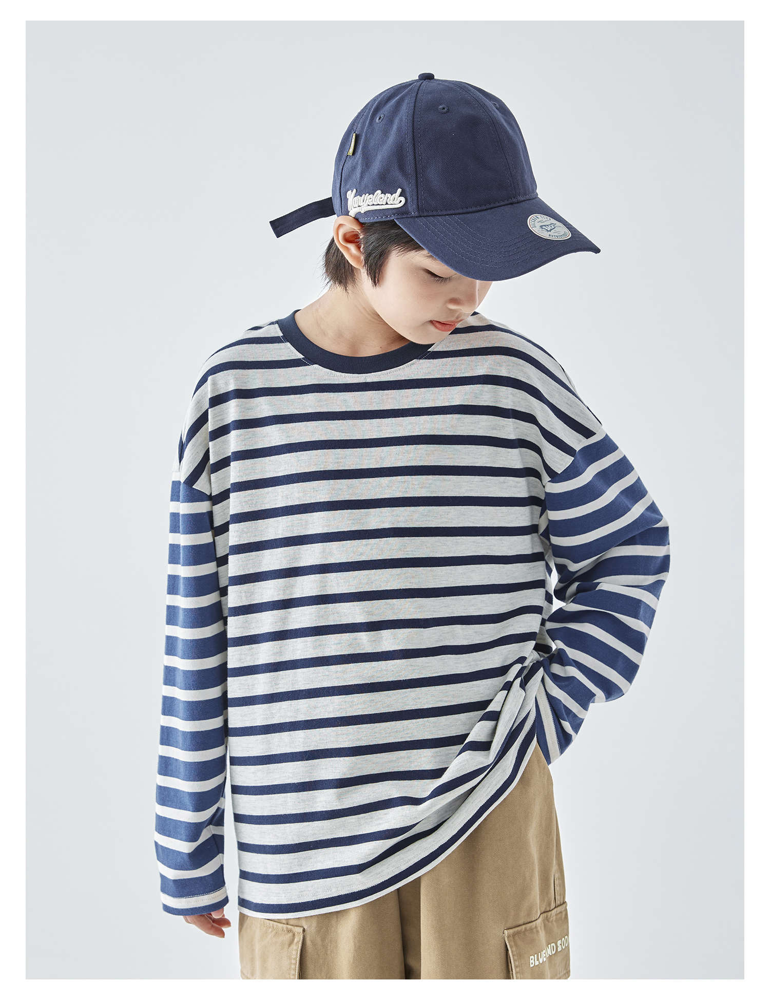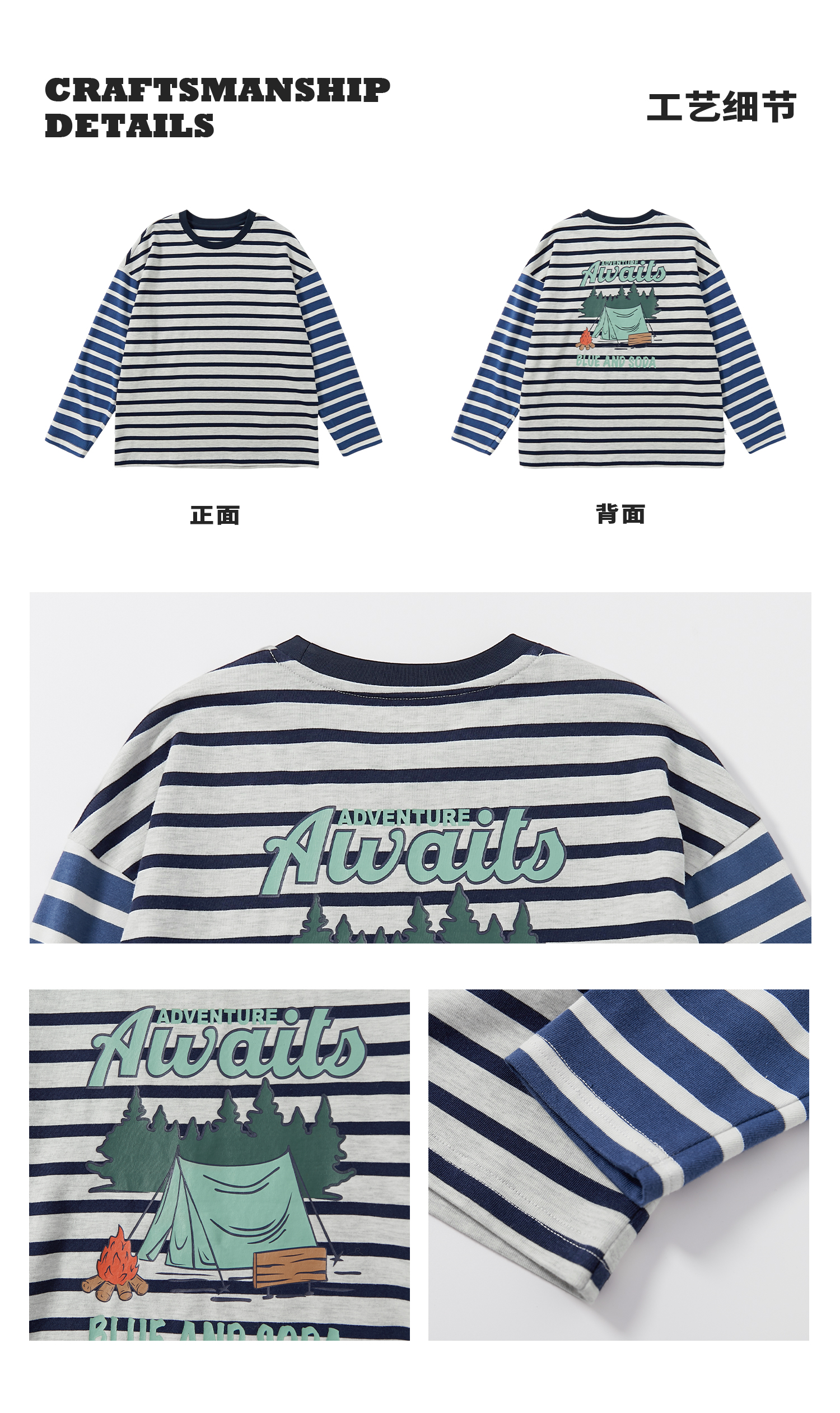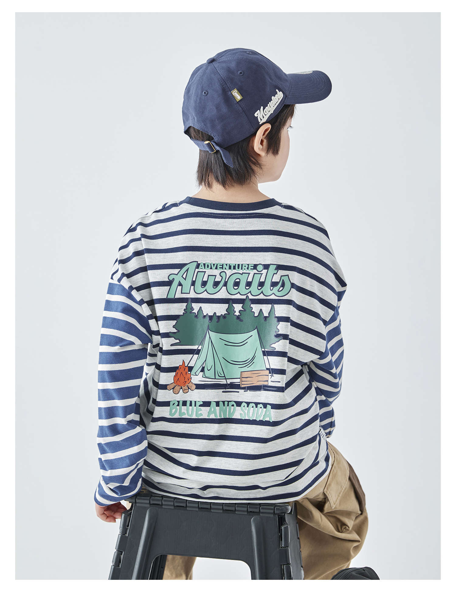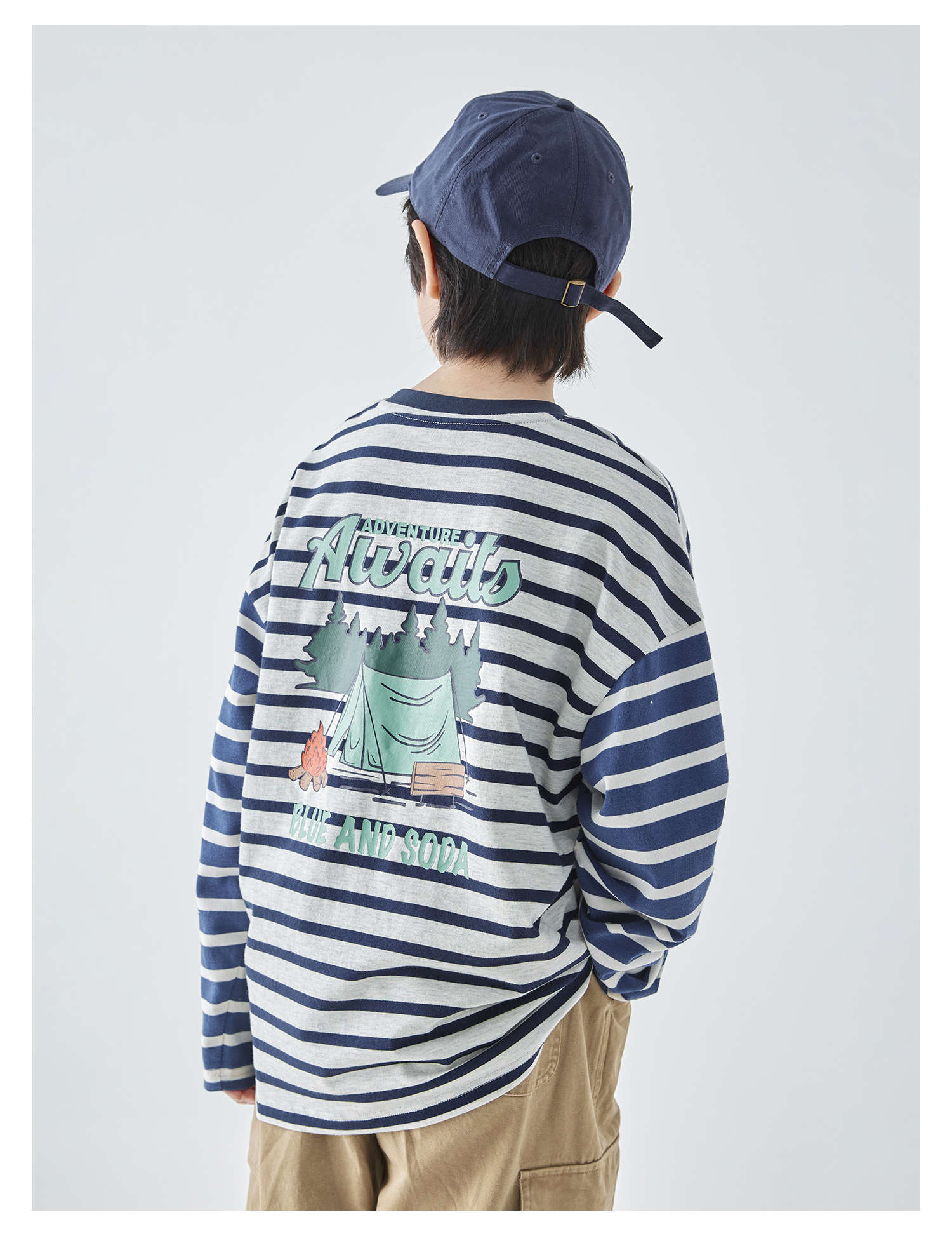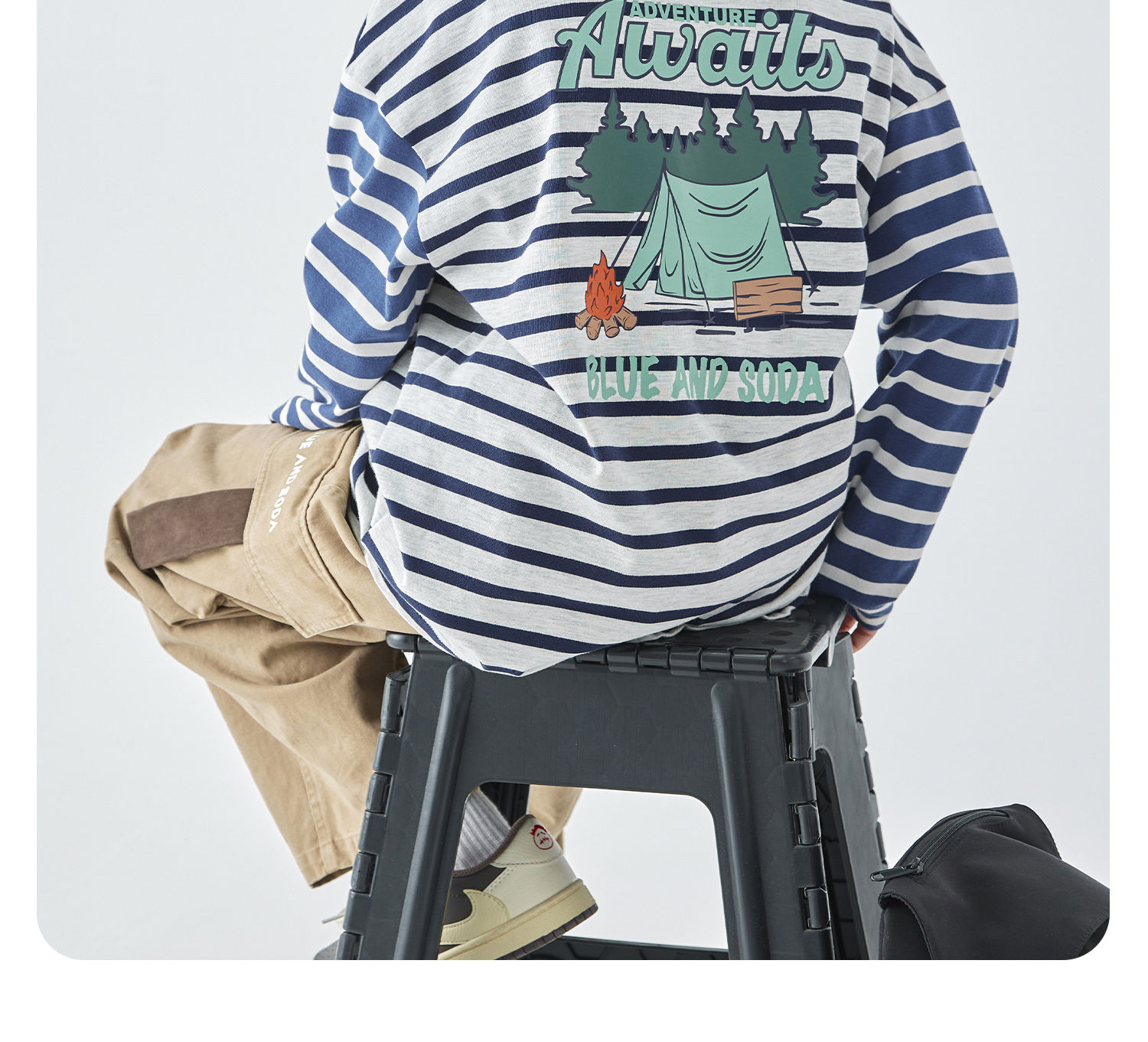 预售3.31发 蓝汽水25年秋季新款亲子装中大男童印花长袖T恤经典条纹休闲上衣