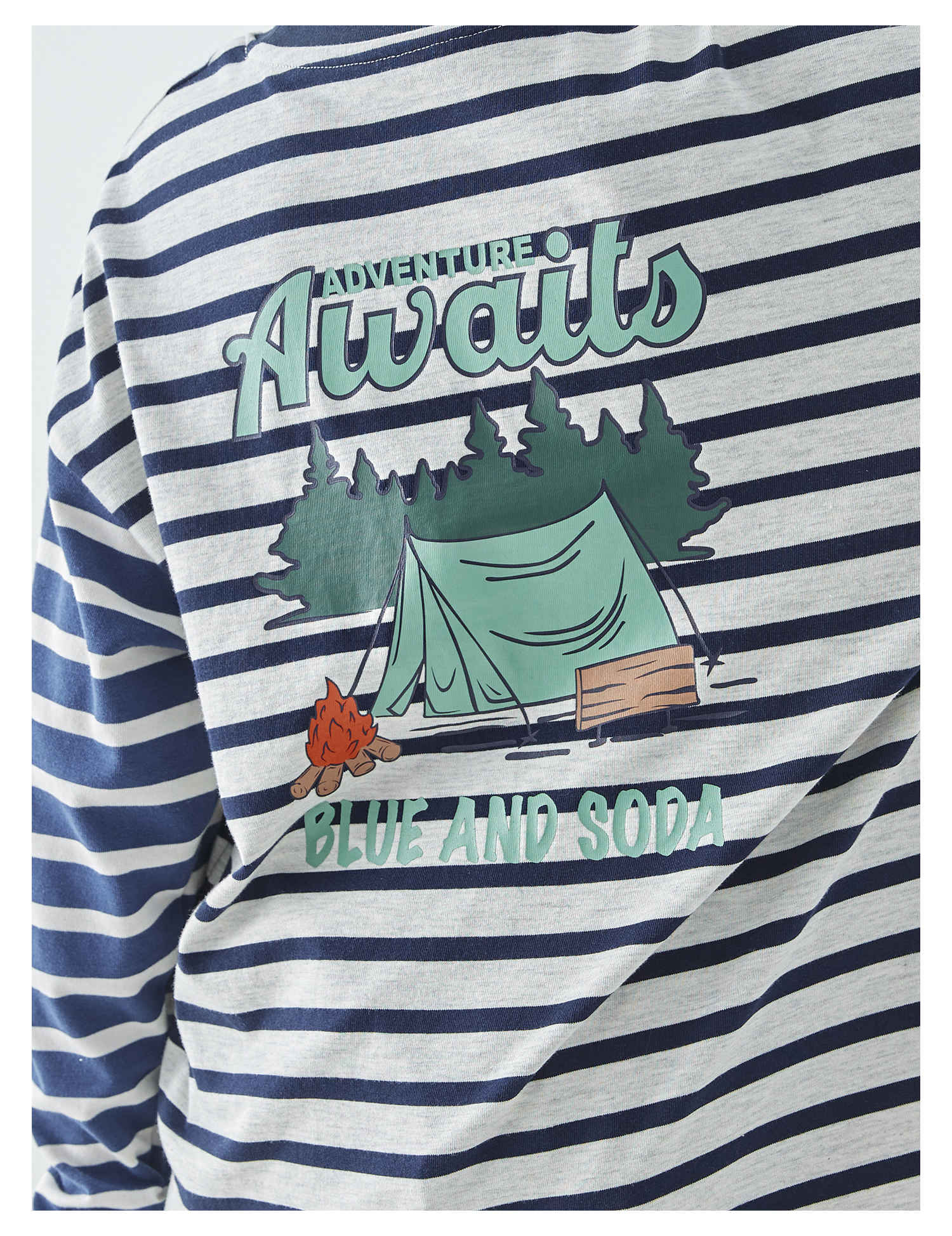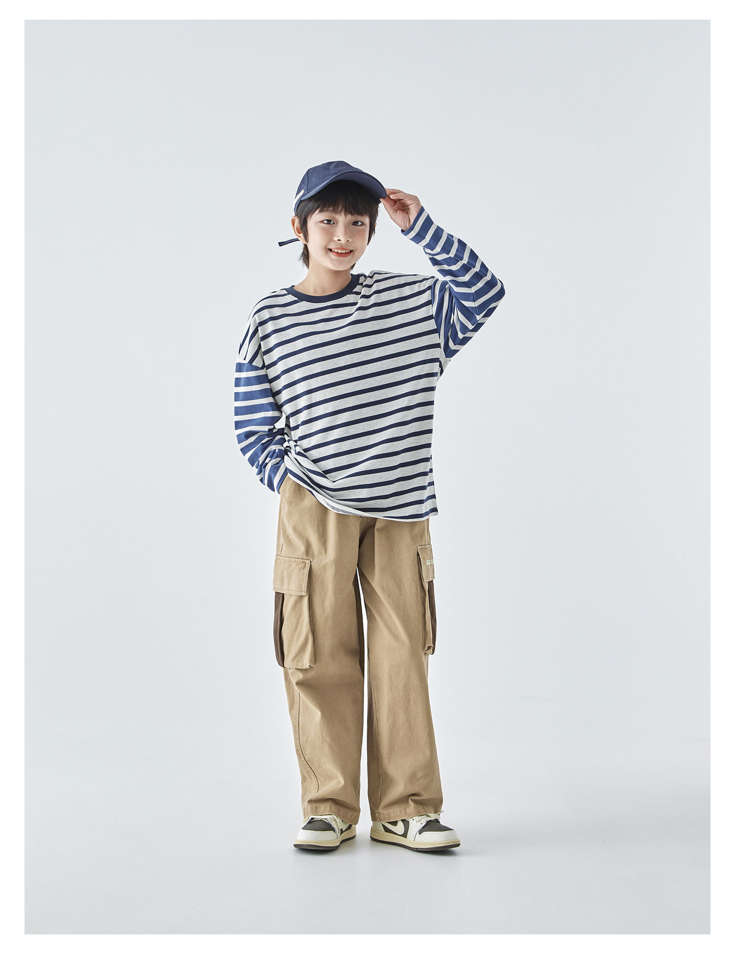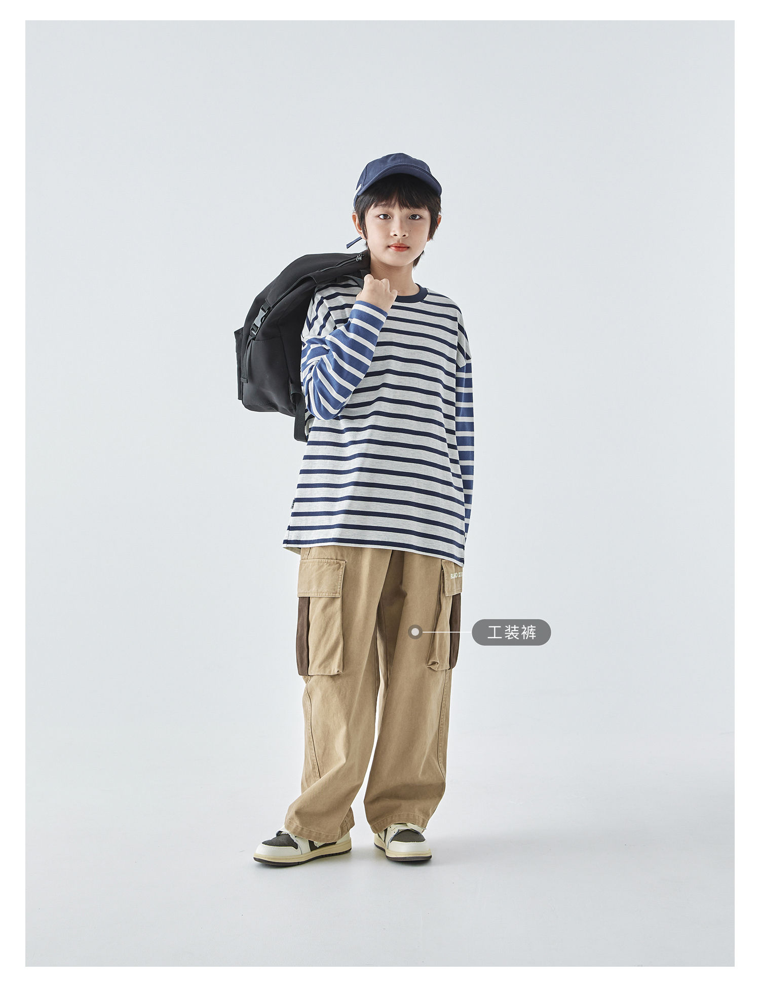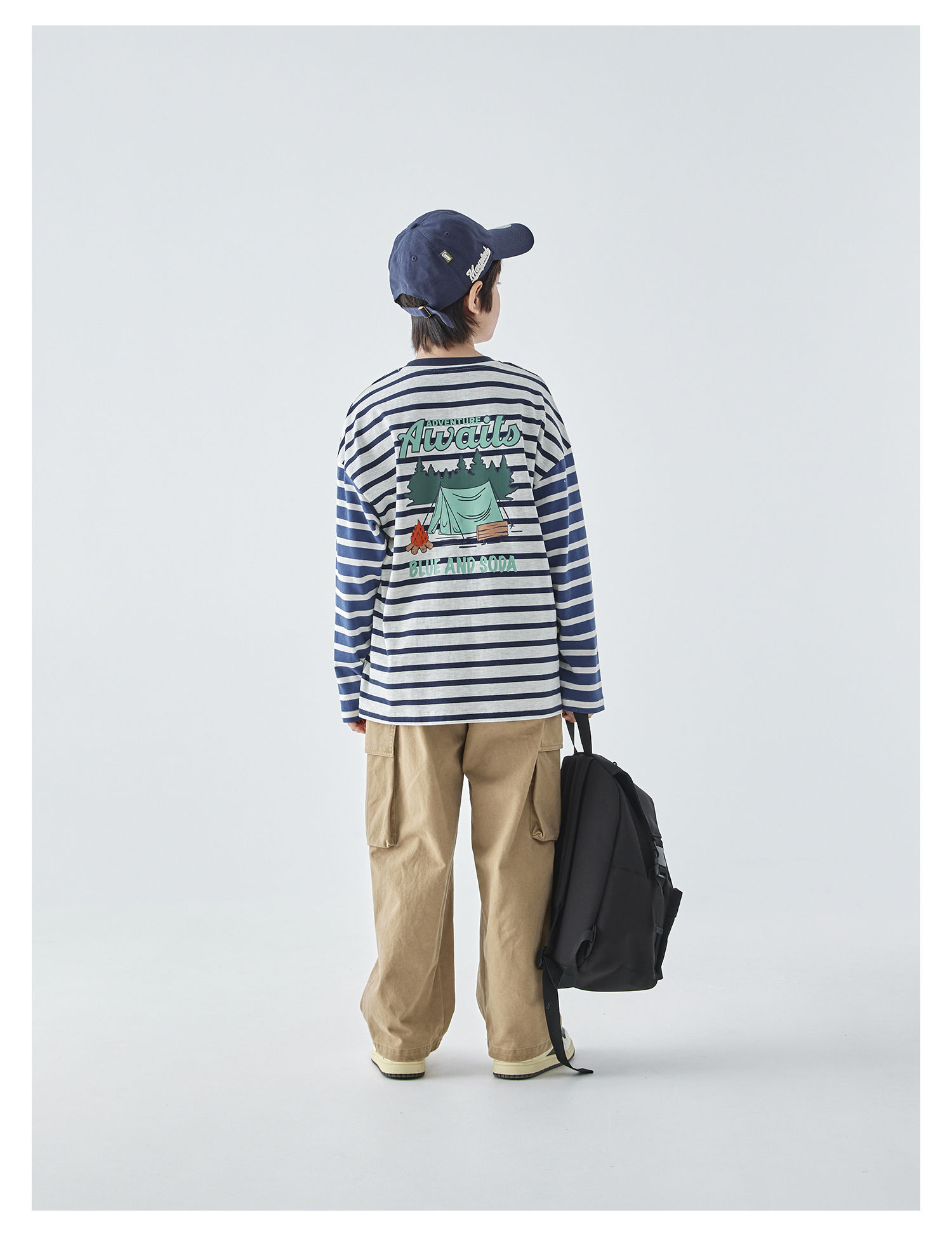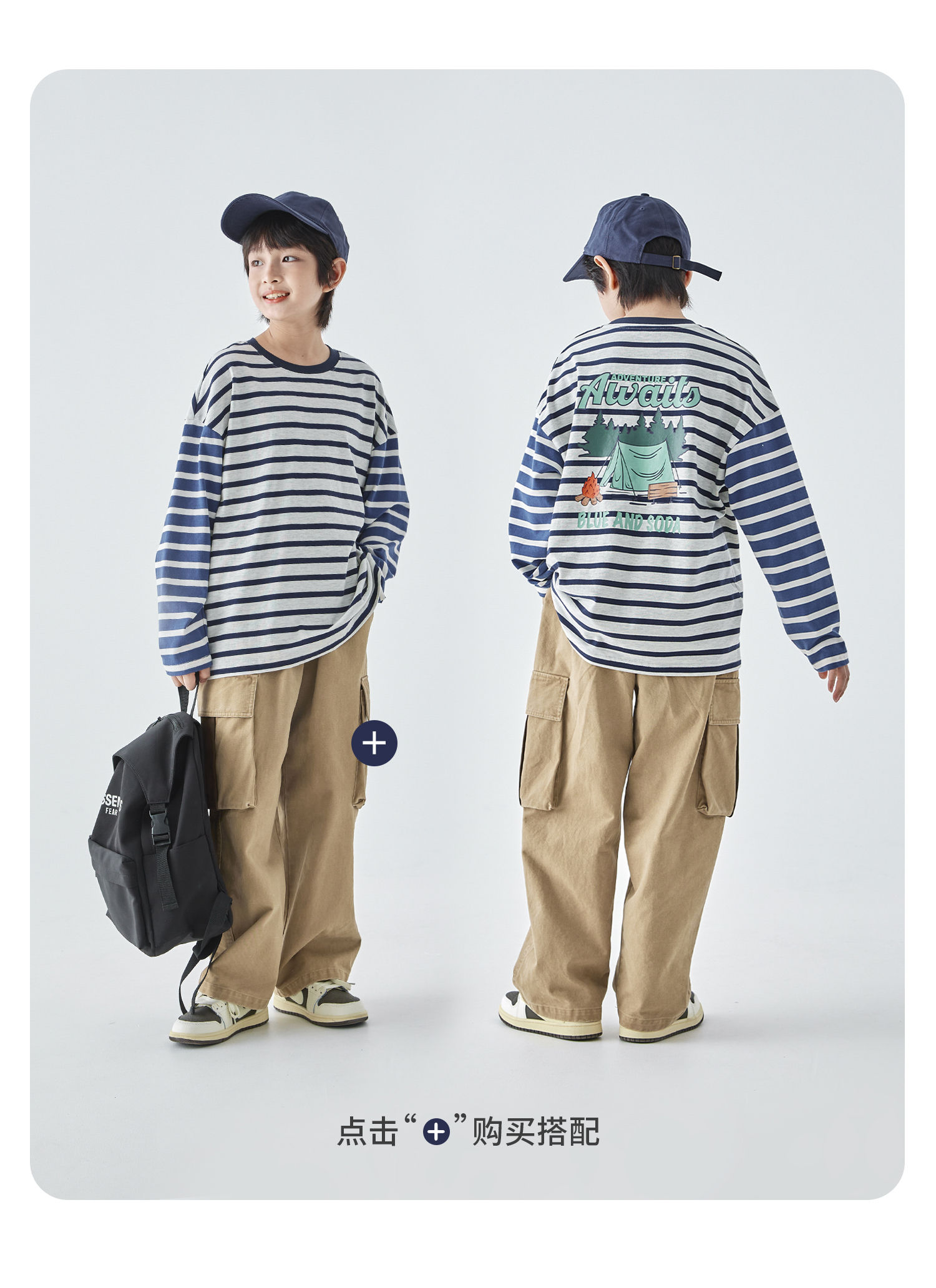 预售3.31发 蓝汽水25年秋季新款亲子装中大男童印花长袖T恤经典条纹休闲上衣