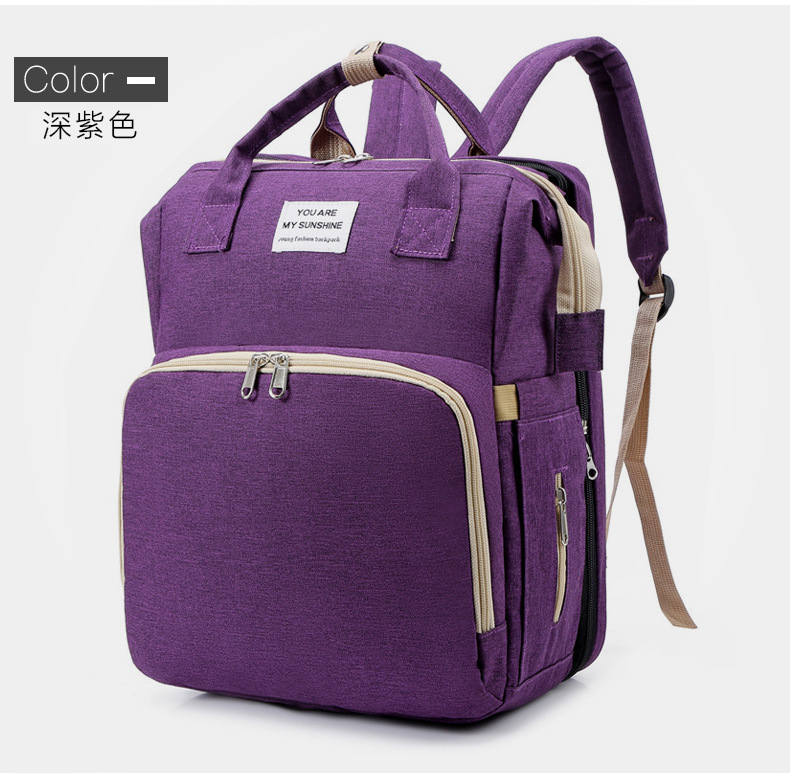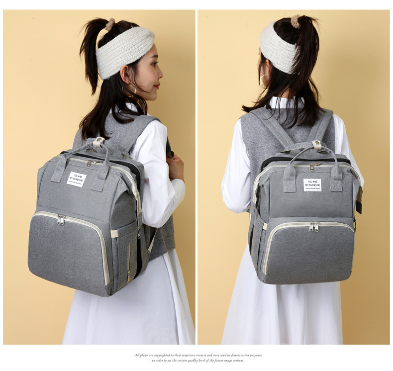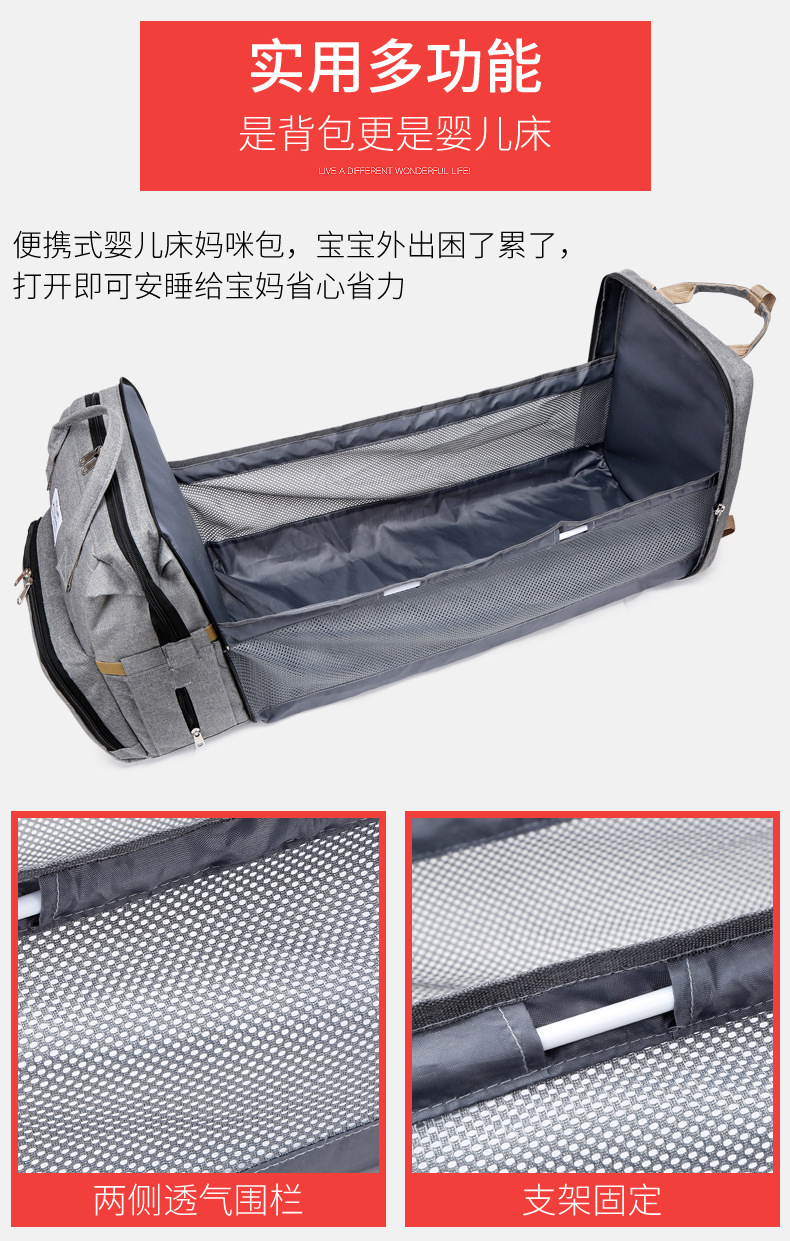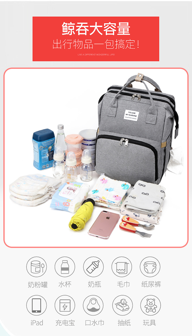 【时尚妈咪包,秒变婴儿床】新款时尚妈咪包折叠婴儿床母婴包 大容量手提奶瓶尿布双肩妈妈包 保温奶瓶仓 大容量 防泼水-QQ