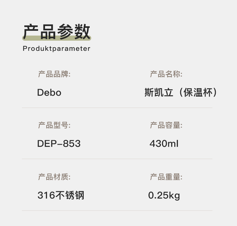 debo德铂斯凯立卡罗尔316不锈钢保温杯