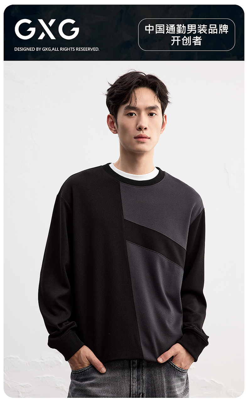 GXG男装25秋季时尚潮流宽松运动日常通勤舒适百搭男式圆领卫衣K&C