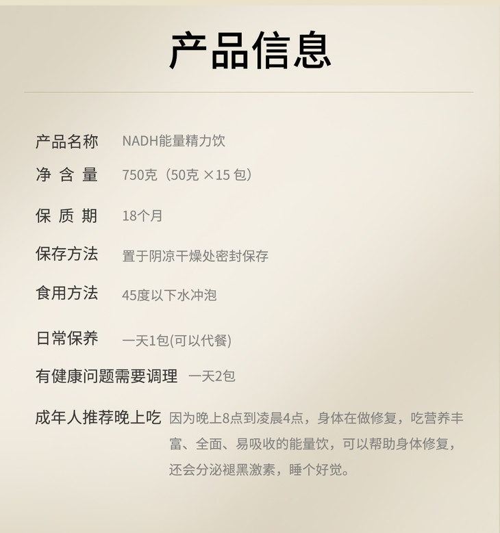 世界选物官NADH能量精力饮精力up抗龄50g*15包/盒