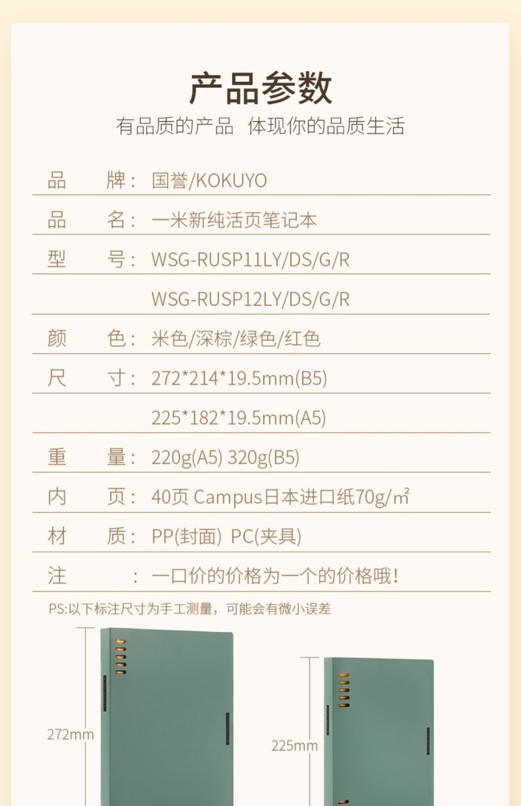 国誉一米新纯活页笔记本A5/B5