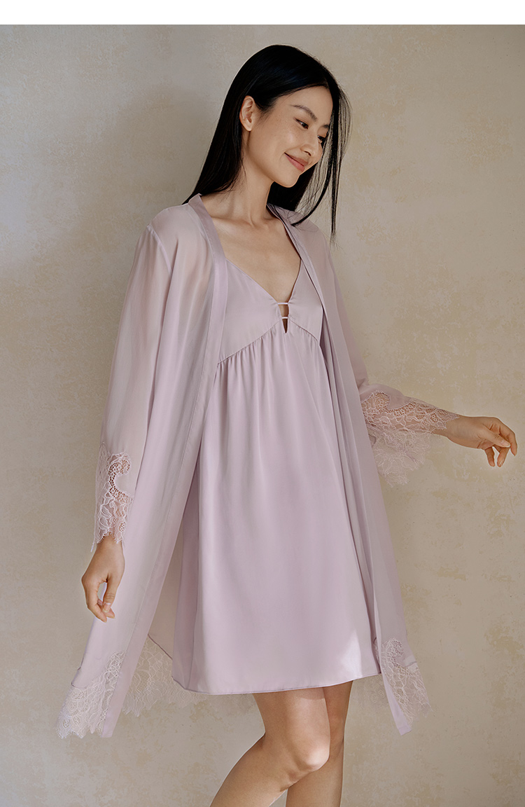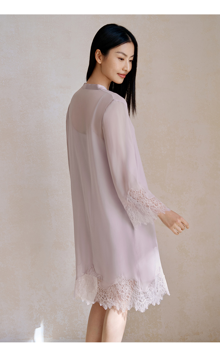 金三塔100%桑蚕丝女真丝花边拼接睡裙袍套YSFFA101 YSFFA307