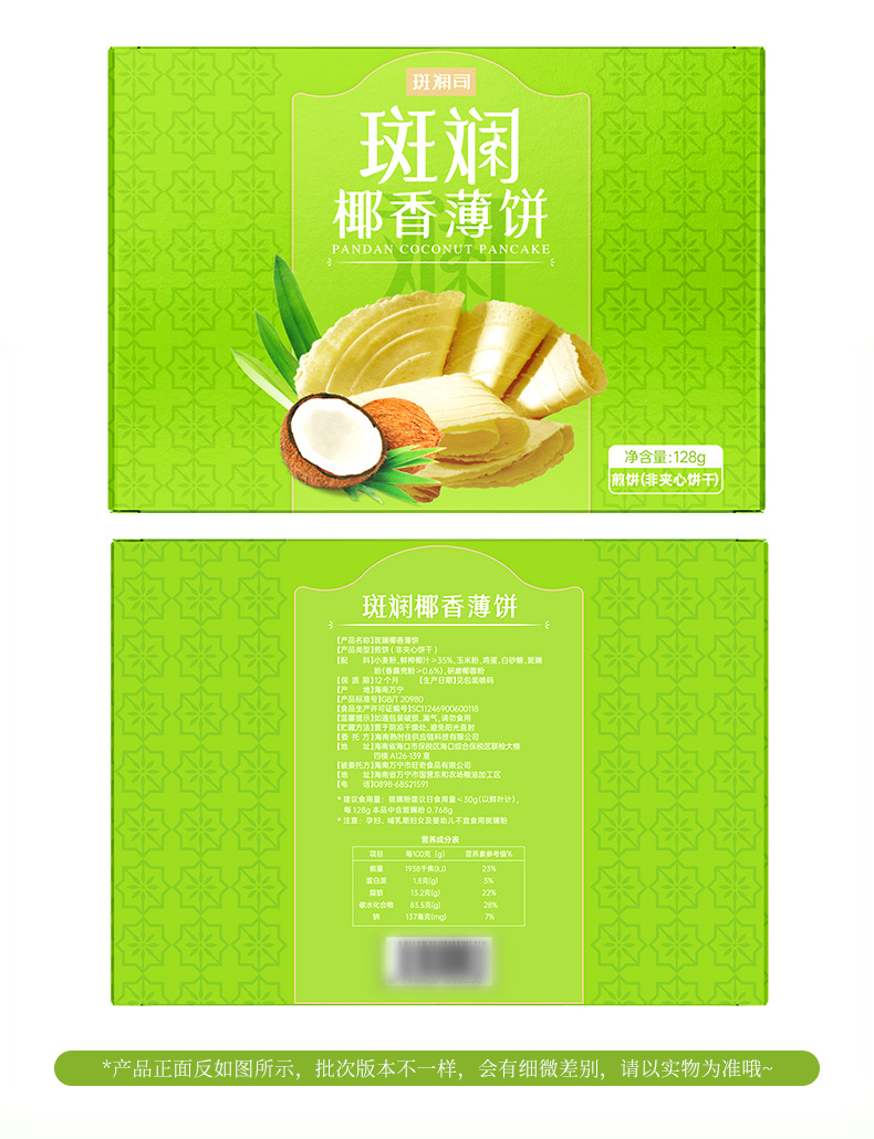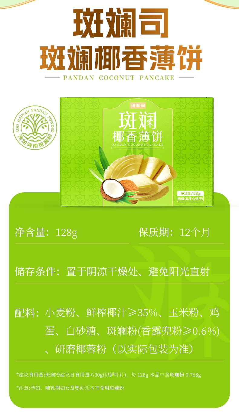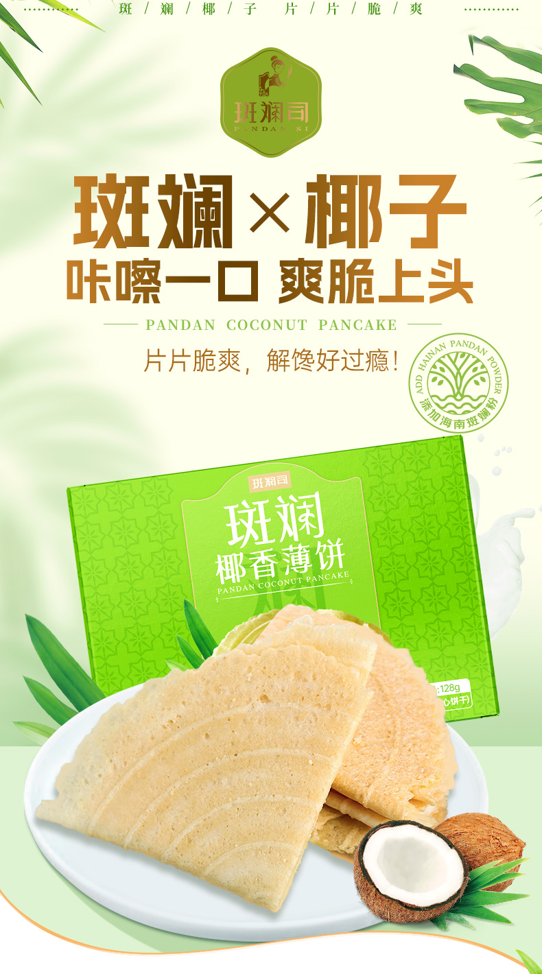 斑斓司斑斓椰香薄饼薄脆饼干解馋休闲零食小吃点心早餐代餐128g