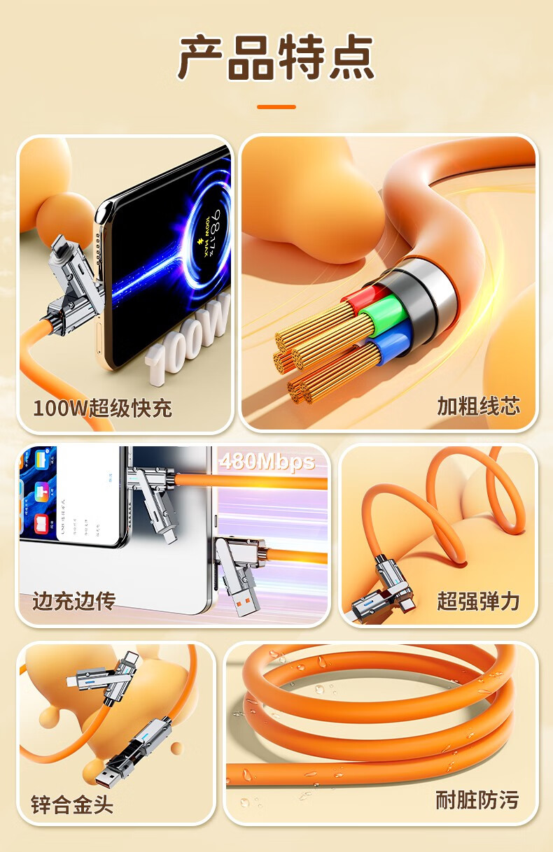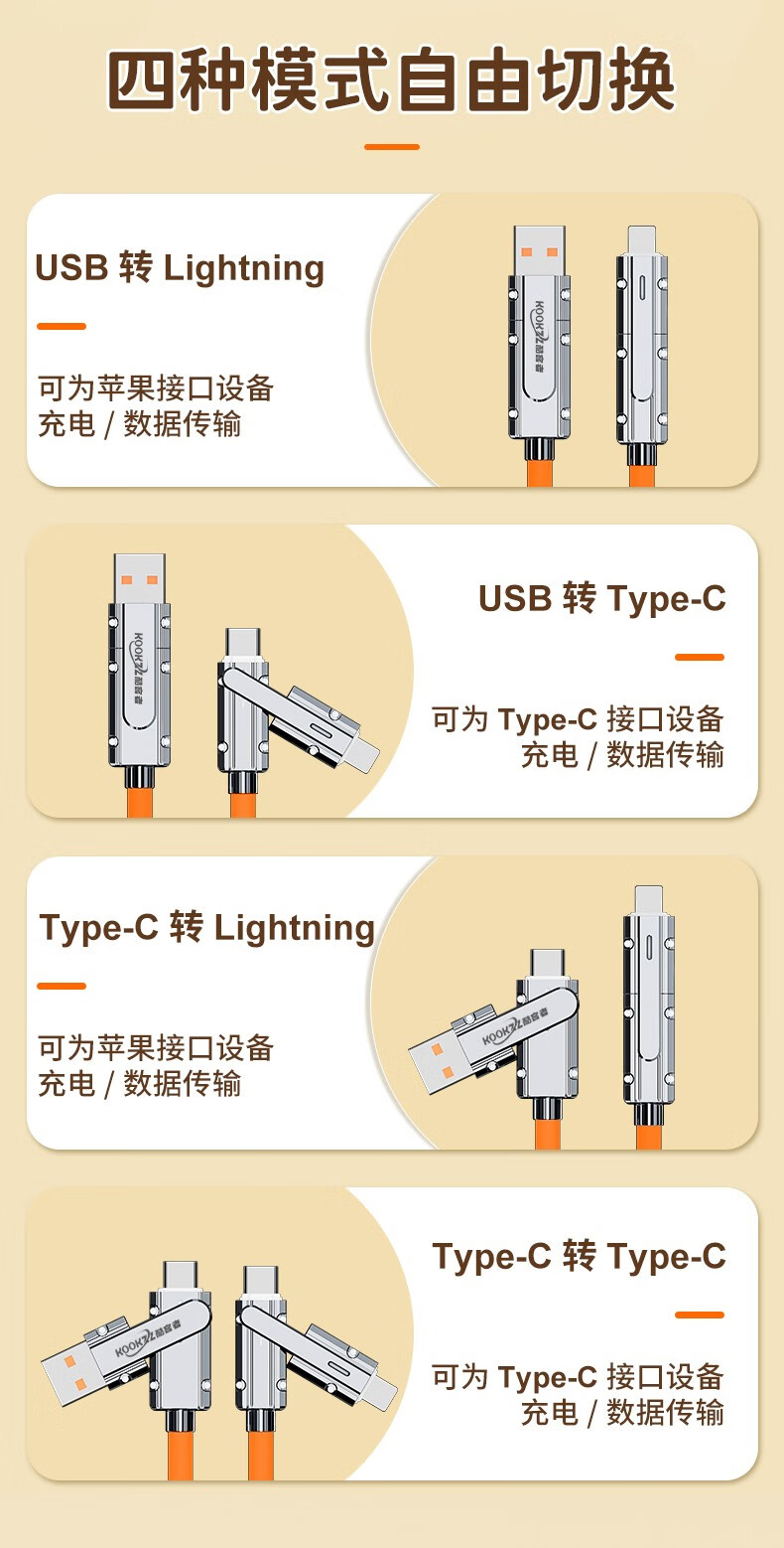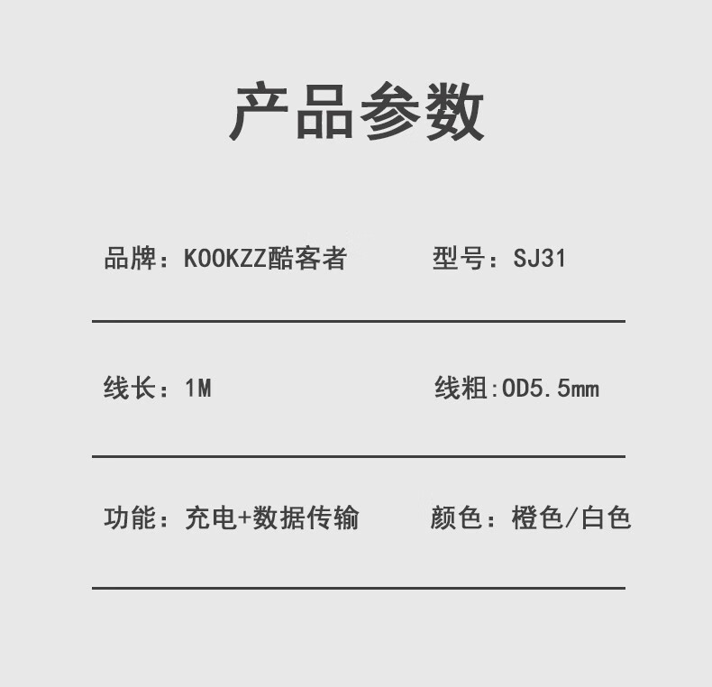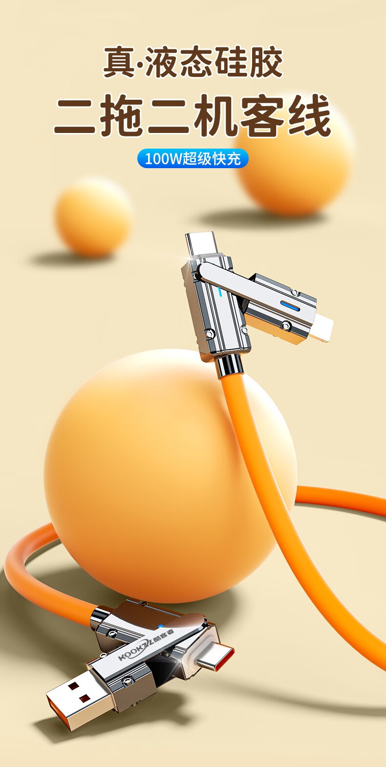 【分仓直发包邮】KOOKZZ酷客者100W超级快充二托二数据线SJ31