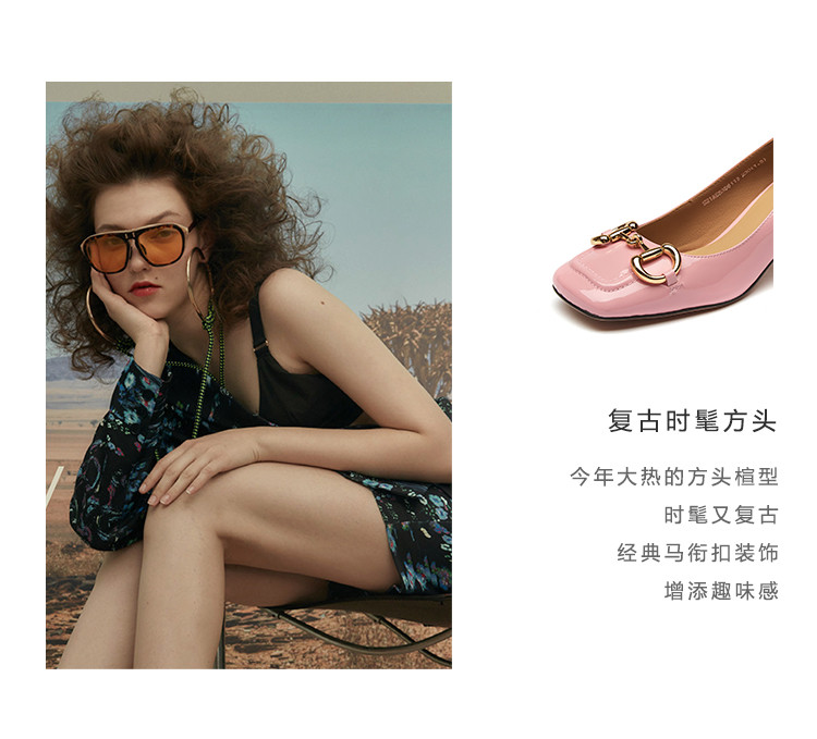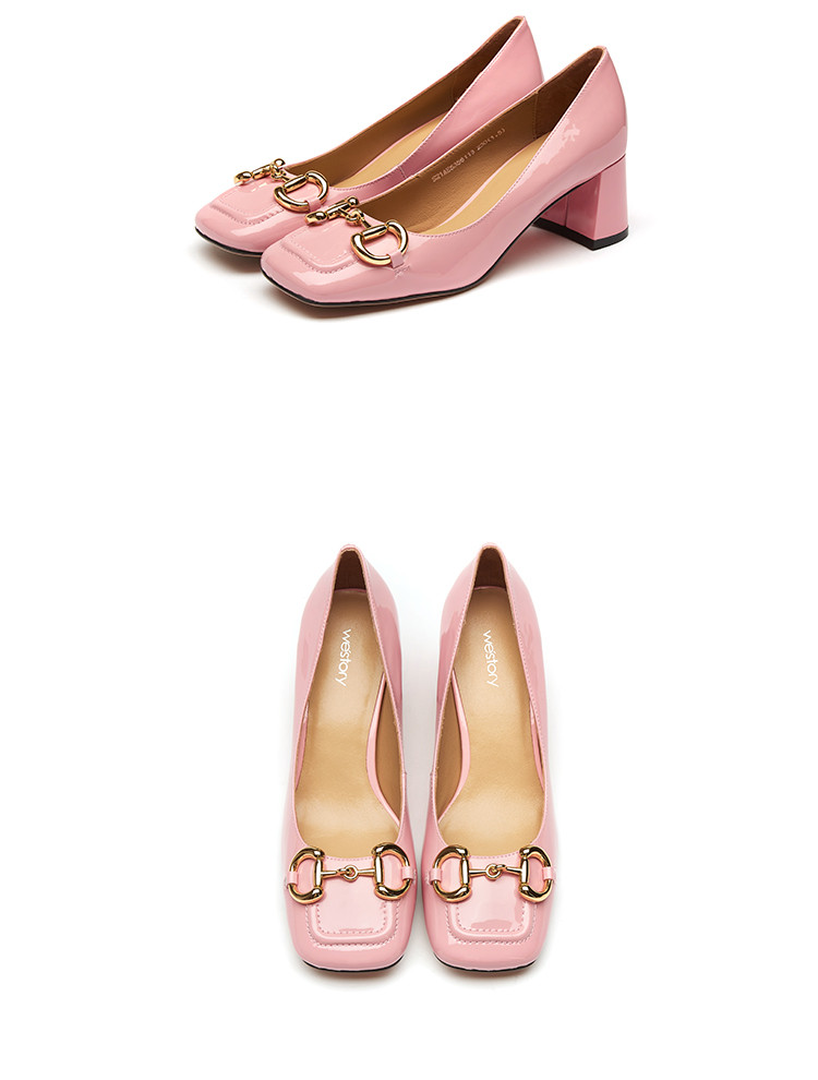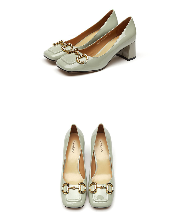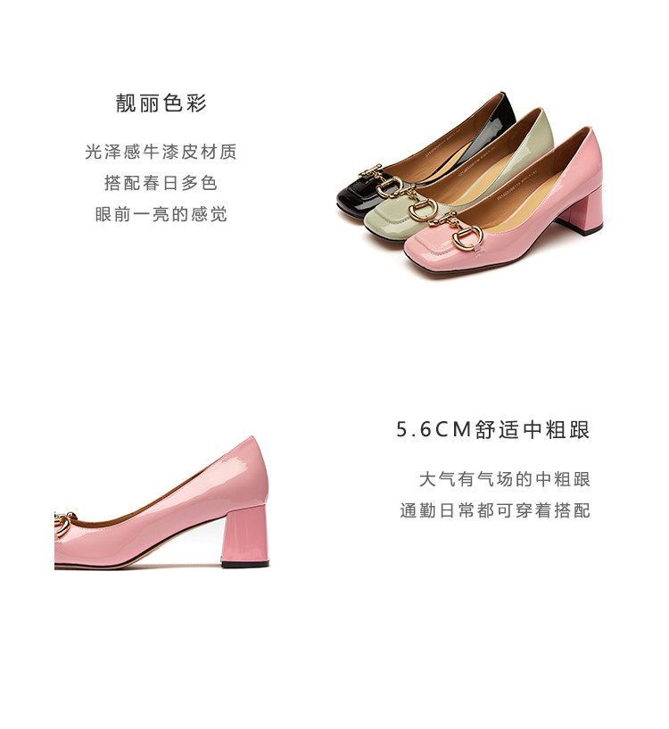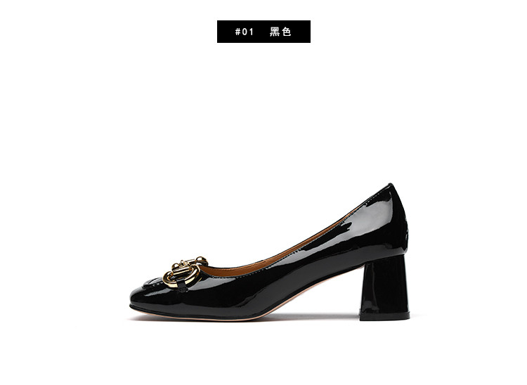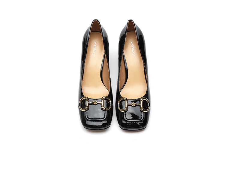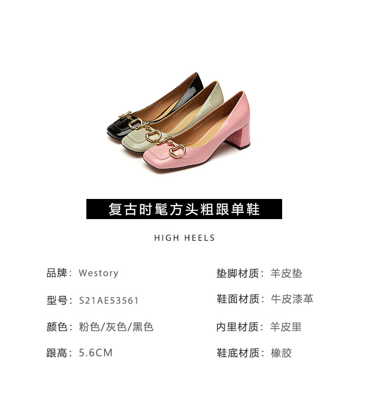 westory女鞋2021夏季新款方头经典马衔扣粗跟中跟ins风玛丽珍单鞋女S21AE53561