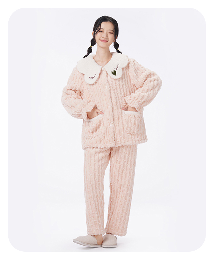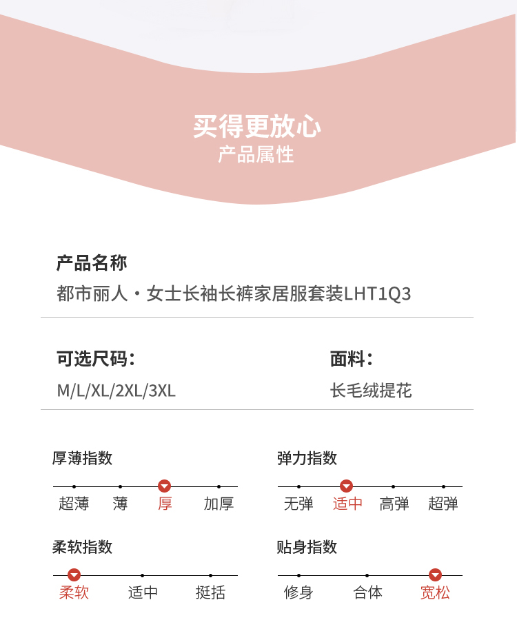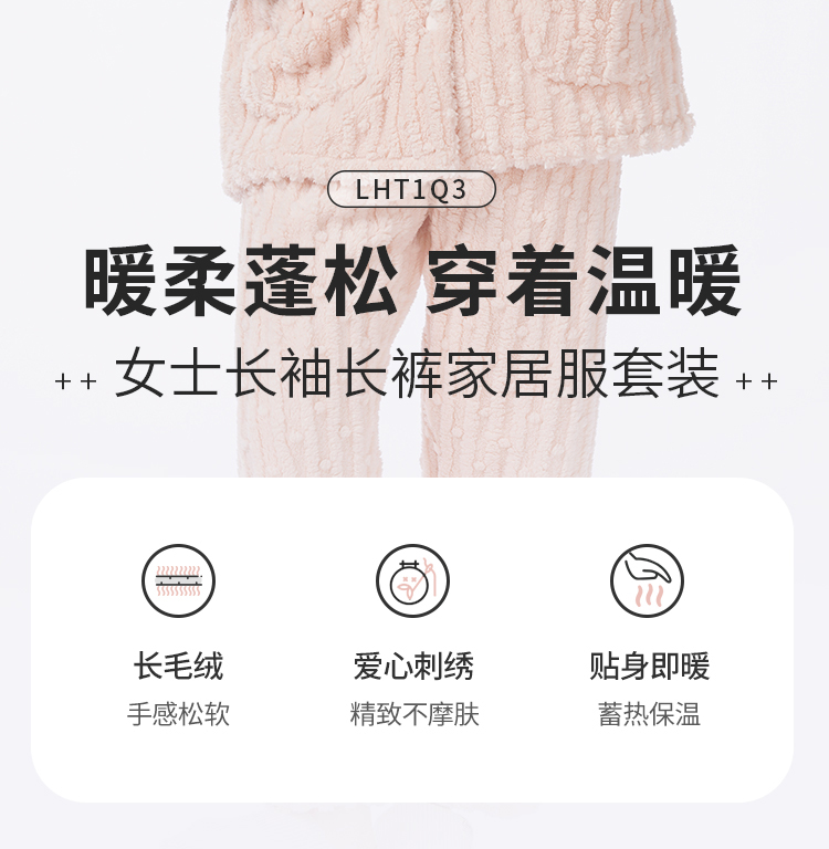 都市丽人睡衣生活家居长袖家居服长毛绒提花厚女士长毛绒套装LHT1Q3