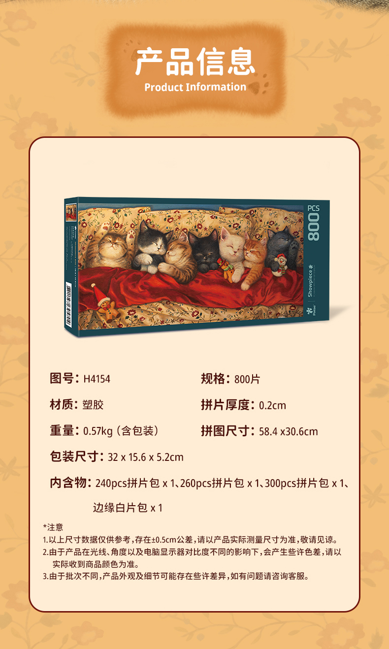 800片 平面塑料拼图 H4154 Phoenix Chan-小猫排排睡