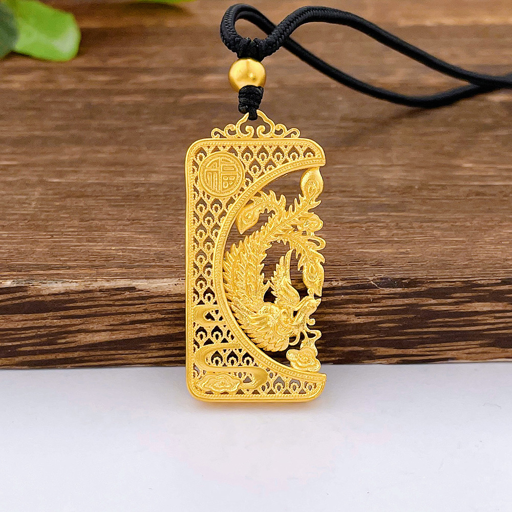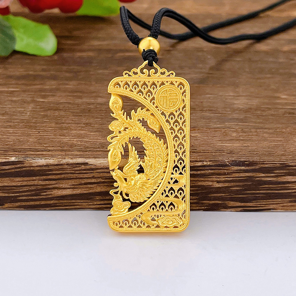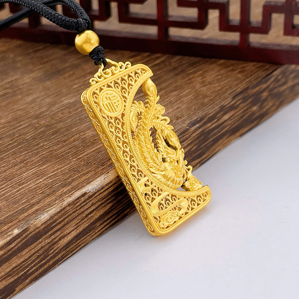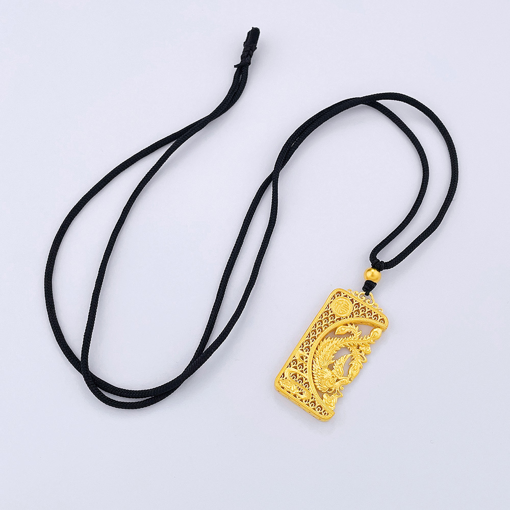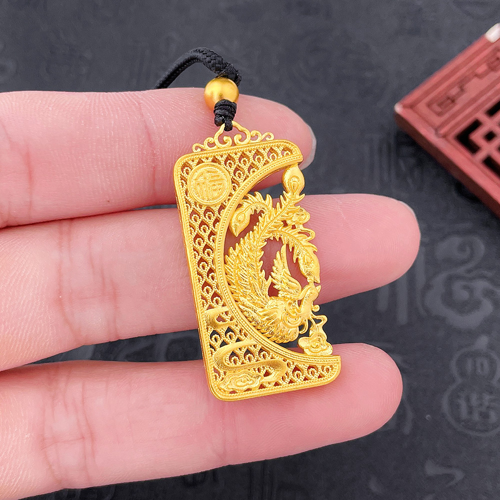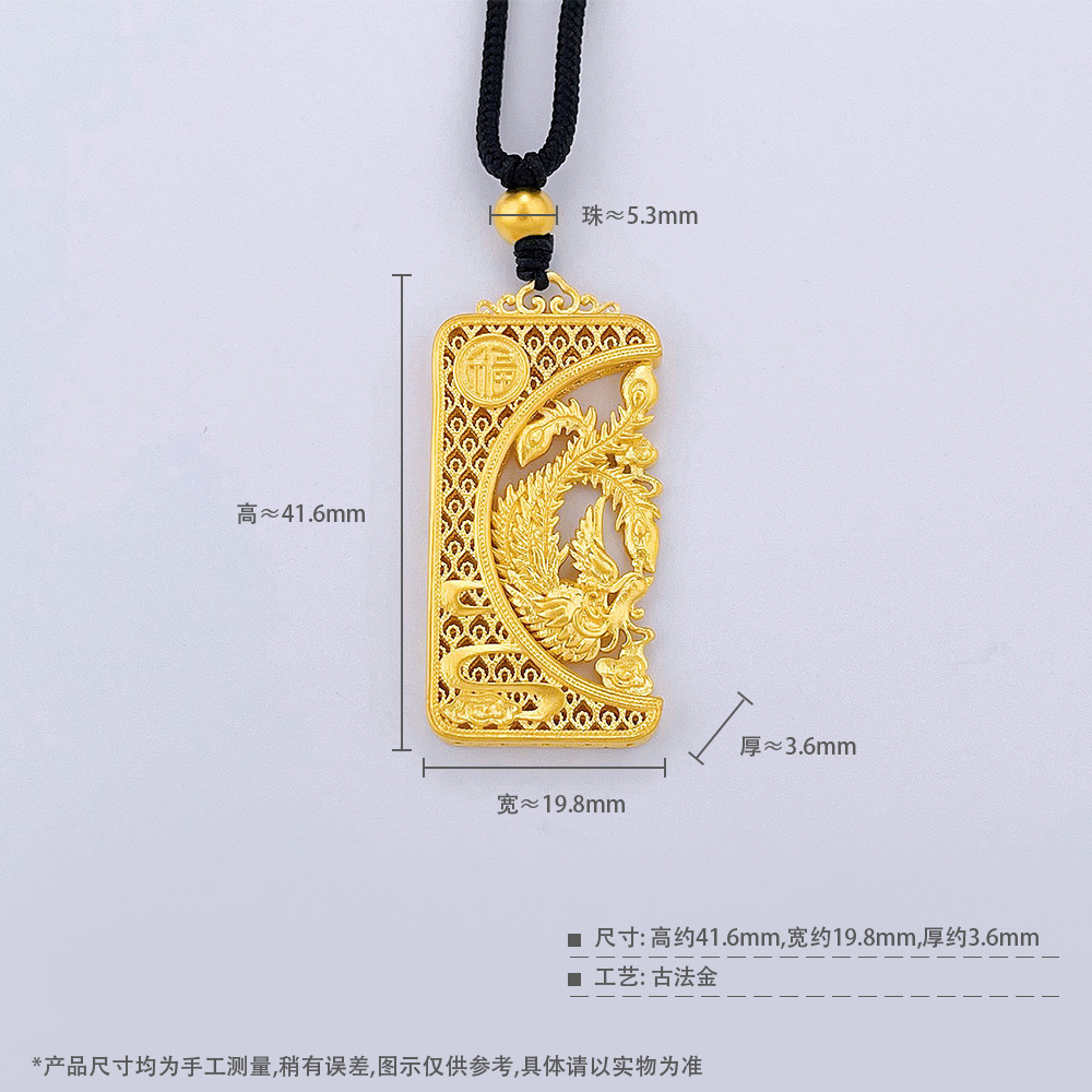 【限时克减150元】足金999 古法挂绳镂空花丝龙凤配凤牌吊坠(含珠子)(YGFDZ00229-B)(预售产品下单后不退款不退货不换货不补差价)