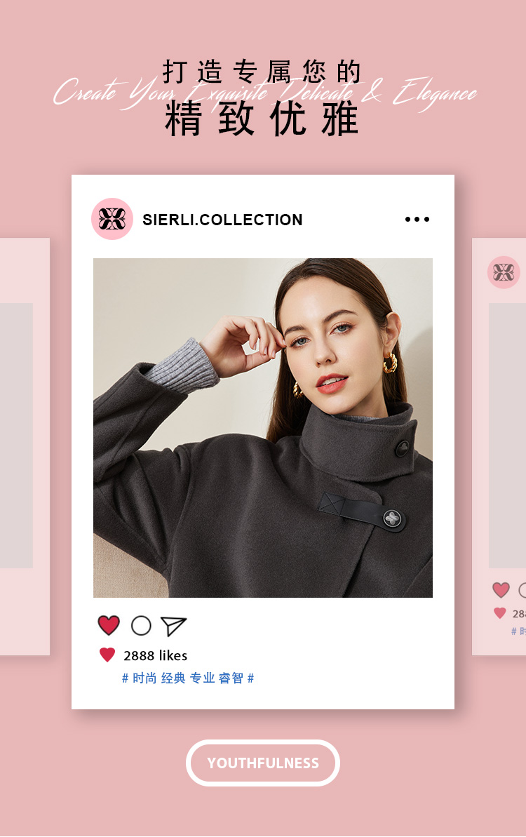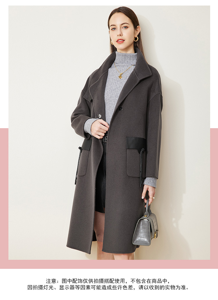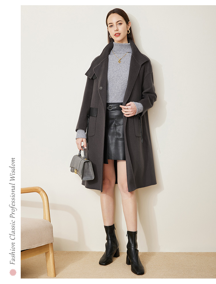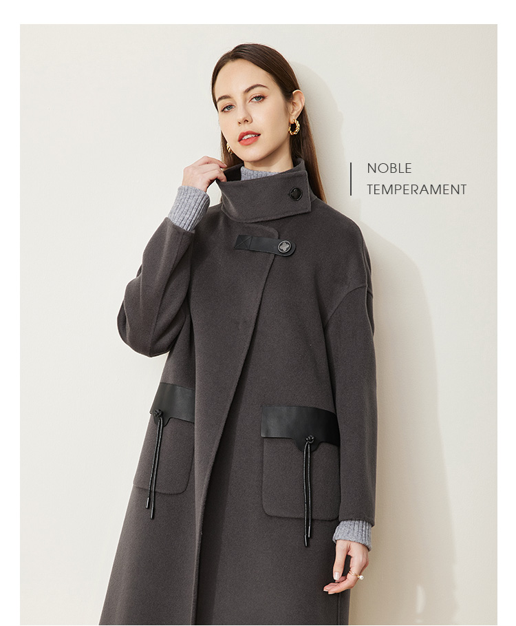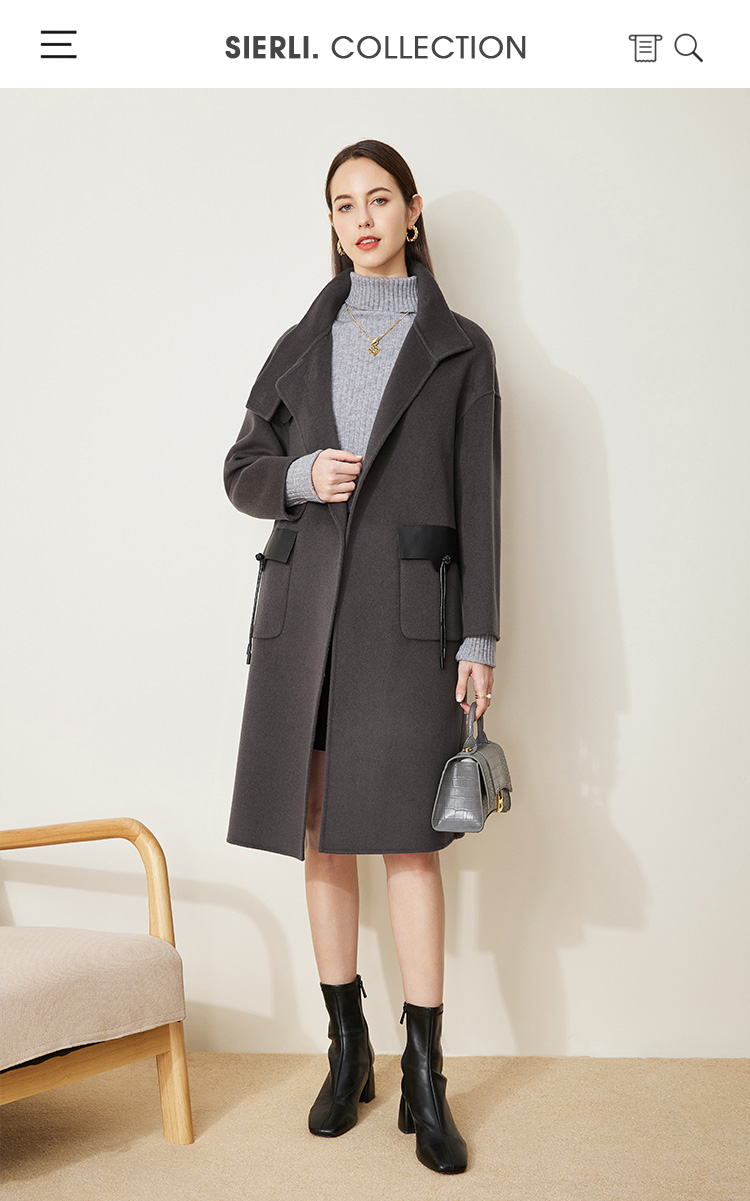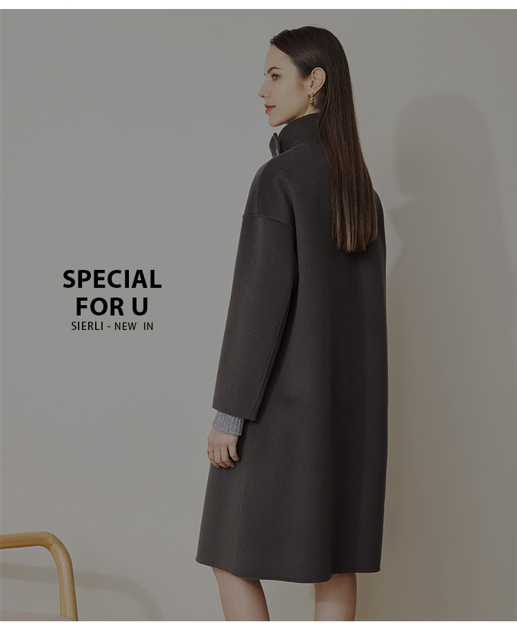 LH9U3斯尔丽瑟俪2021秋冬新款干练帅气立领大口袋暗扣精致羊毛大衣女