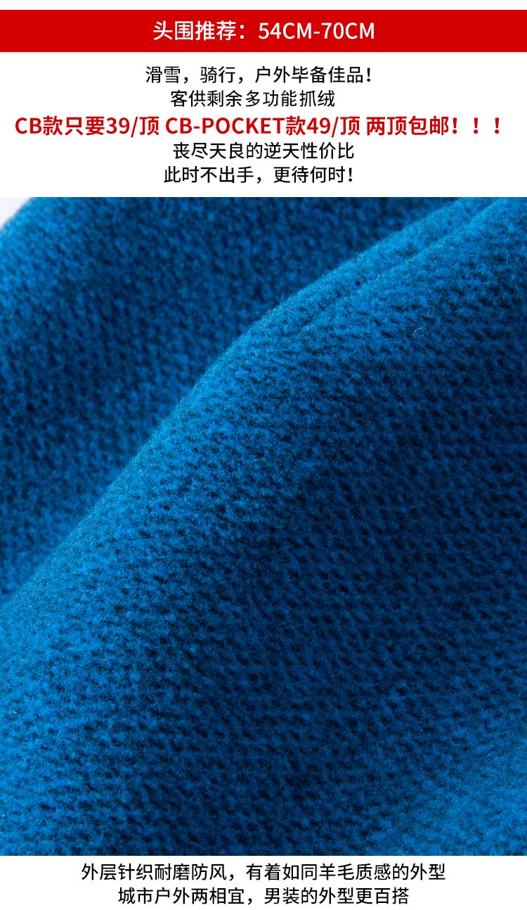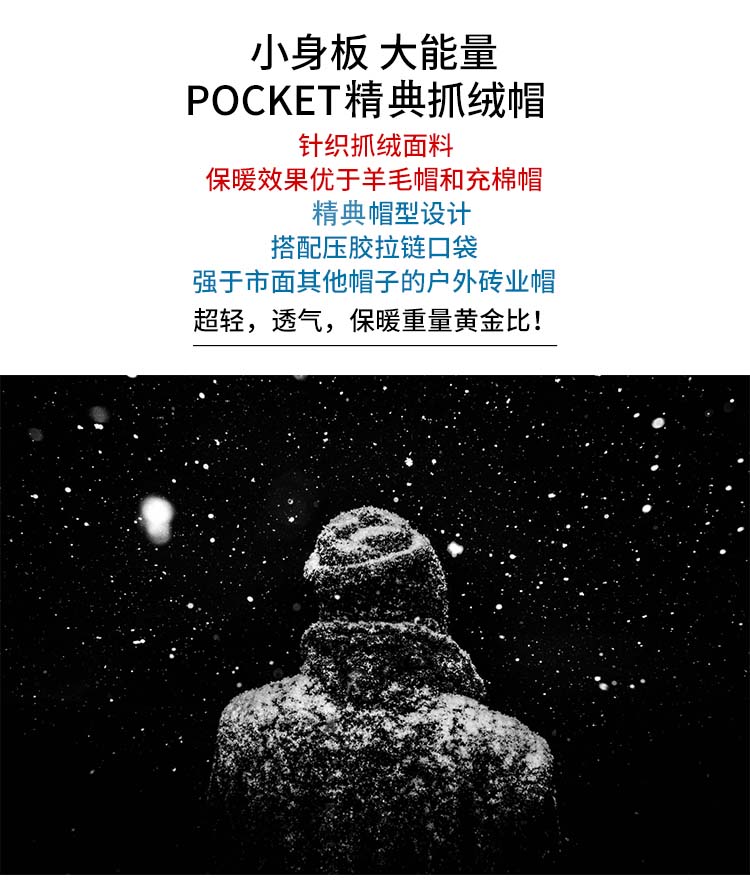 经典男女压胶口袋拉链针织抓绒帽户外保暖21PJ31