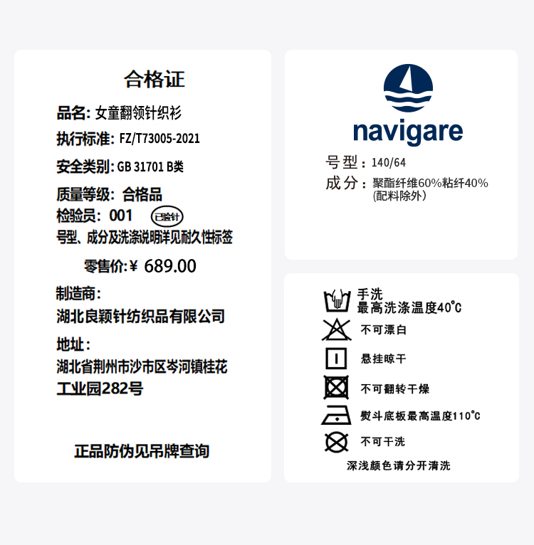 【纳维凯尔】【120-165】Navigare意大利小帆船童装女童短袖针织衫