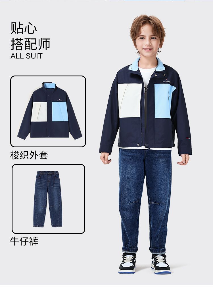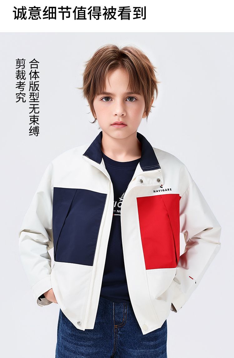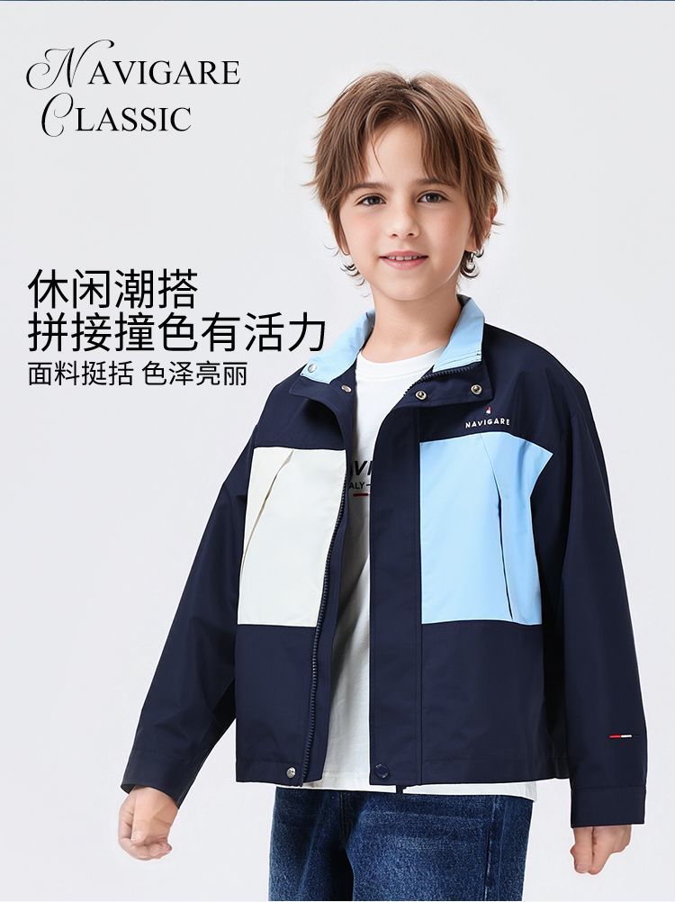【纳维凯尔】【120-165】Navigare小帆船男童春秋款防水撞色休闲外套