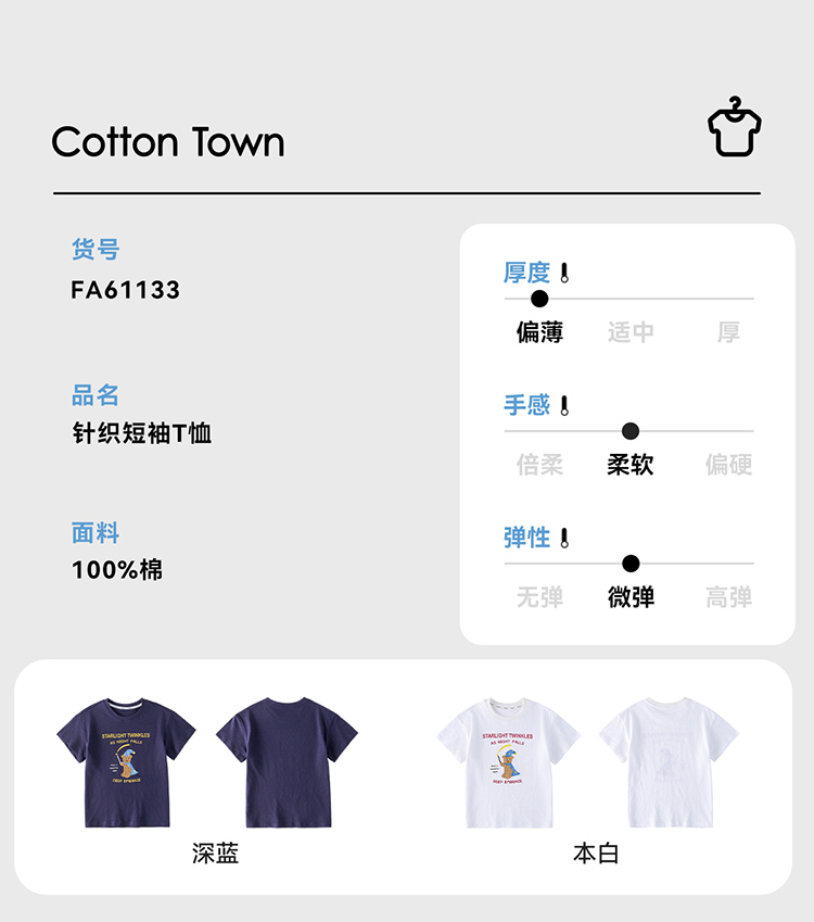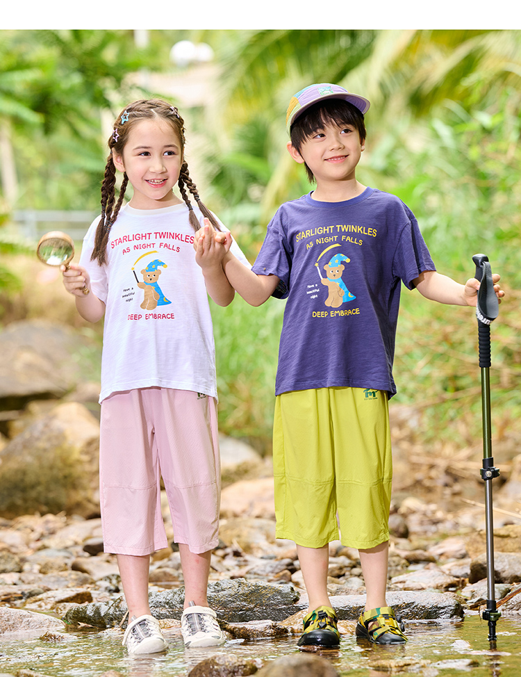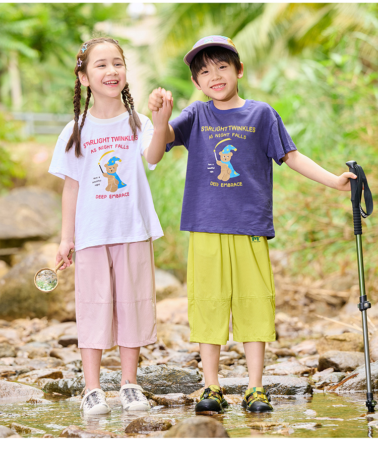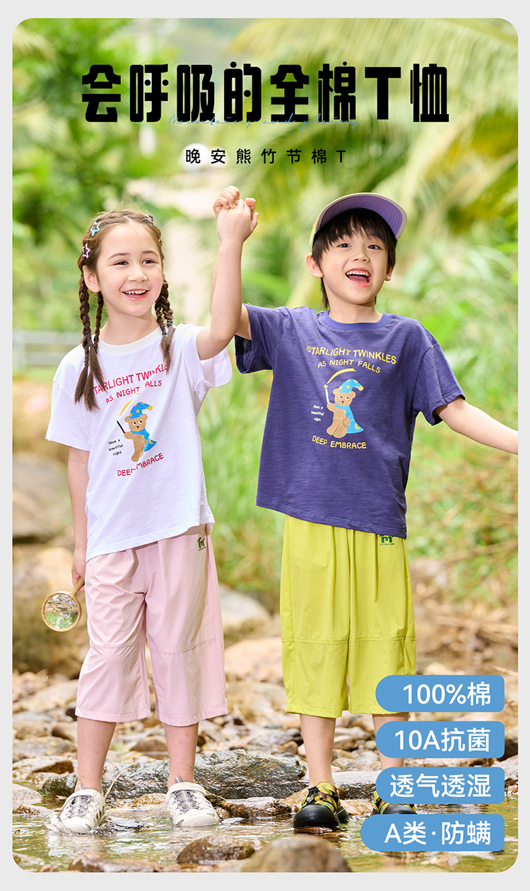 【10A抗菌纯棉】棉花堂夏款晚安熊童趣印花竹节棉儿童短袖T恤 ----FA61133