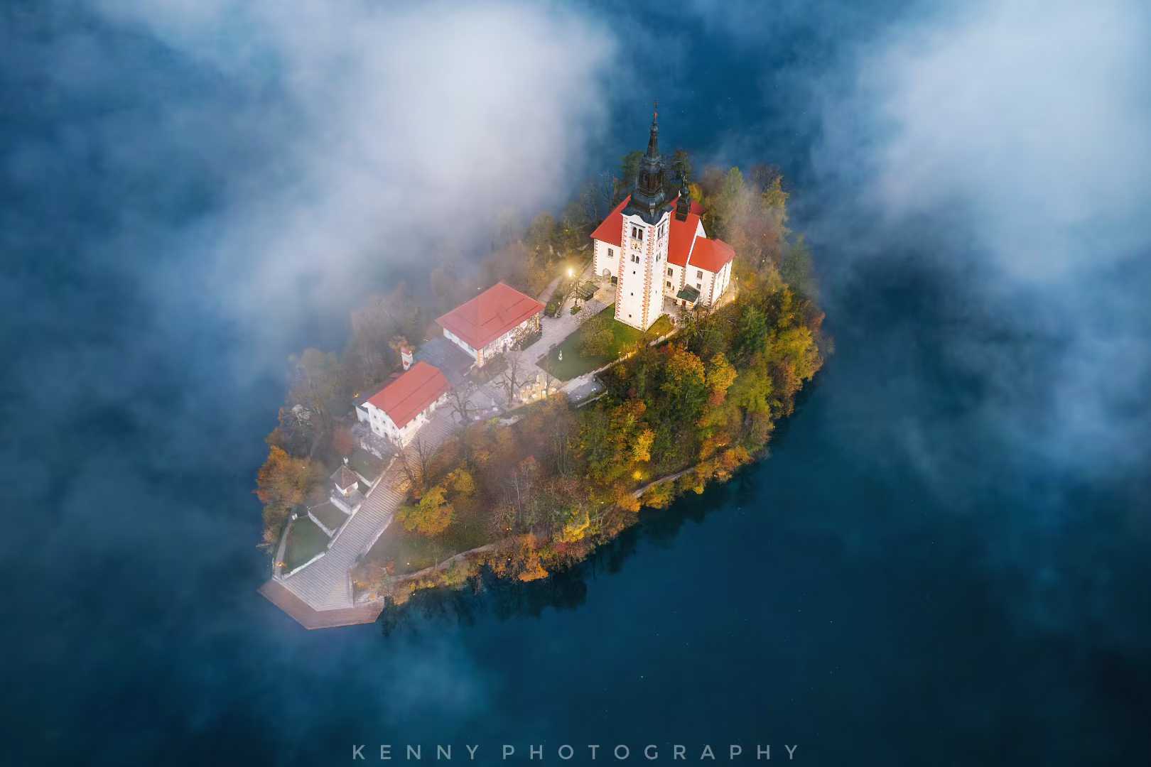 拍摄布莱德湖晨雾和日出,后自由在湖边创作,下午前往高位拍摄布莱德湖全景。
