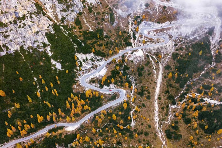 秋季的意大利山区是出片的好时机,是一趟不留遗憾的摄影盛宴。满树的绚烂多彩落为满地的金黄,远处是银妆素裹的冰川为背景,给你带来独一无二的视觉震撼,所有你能想象到的色彩这里全都有。