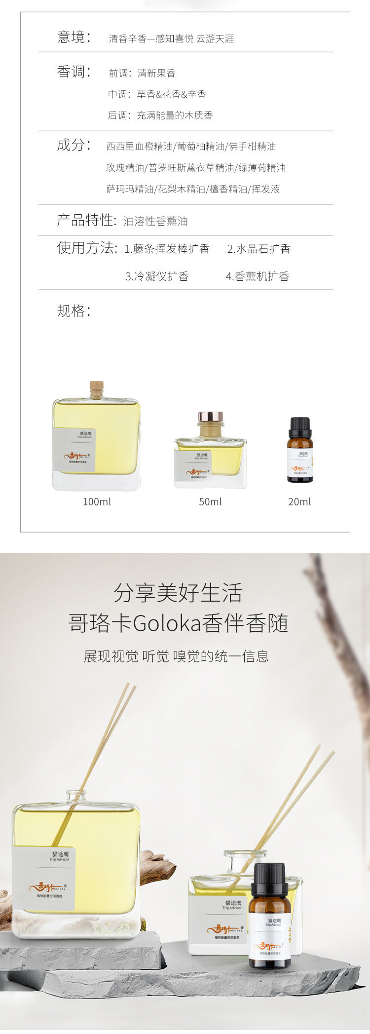 猫途鹰香薰油 无火香薰精油哥珞卡植物香氛家用室内车载酒店香薰