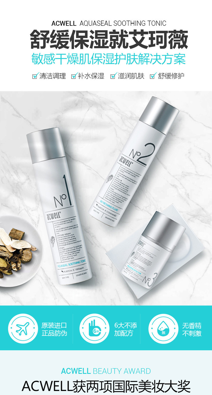 【现货】ACWELL艾珂薇舒缓保湿调理水 调理乳液艾珂薇舒缓水乳套