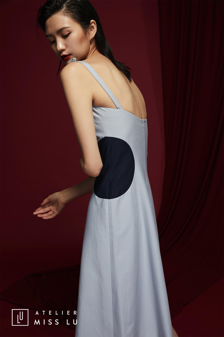 AtelierMissLu /Justo-拼色不对称蝴蝶结吊带连衣裙/0000565