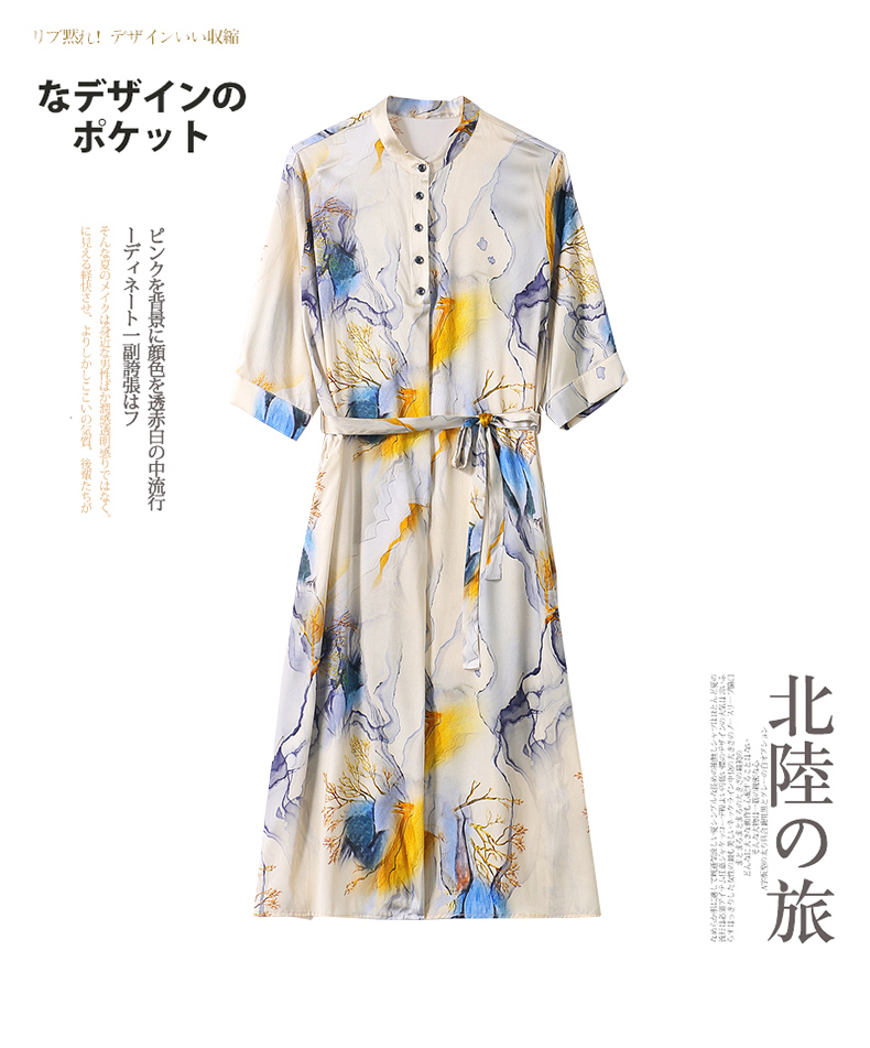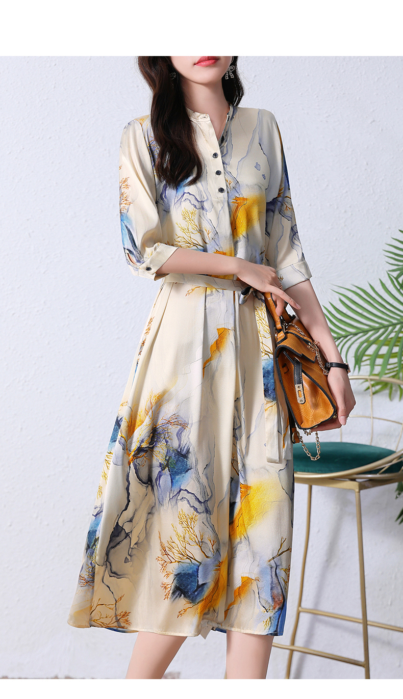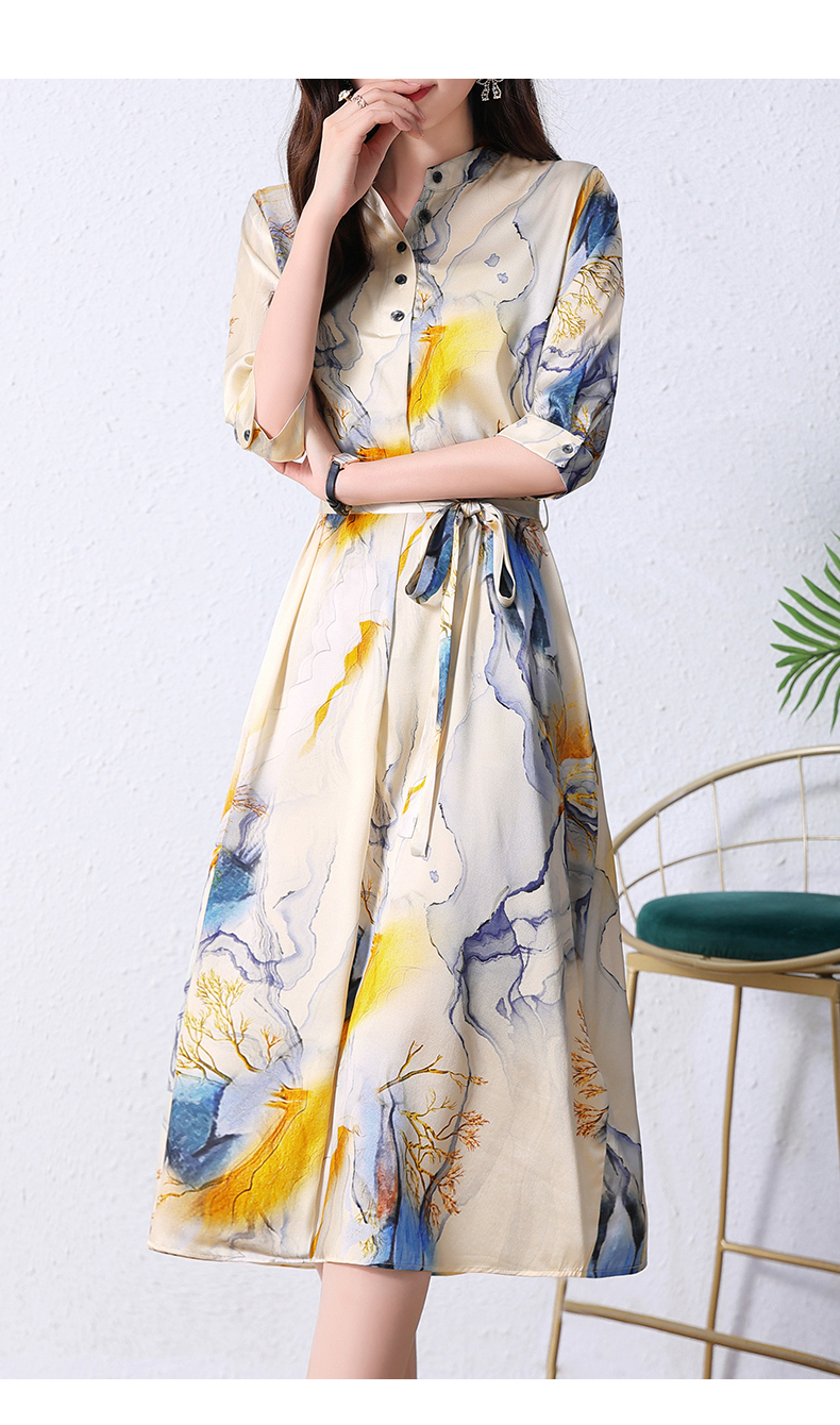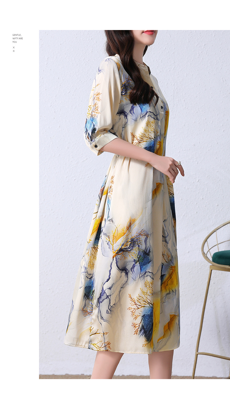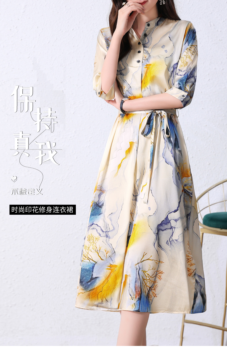 夏季新款,中长款短袖水墨印花收腰裙连衣裙HRYZ7830-1