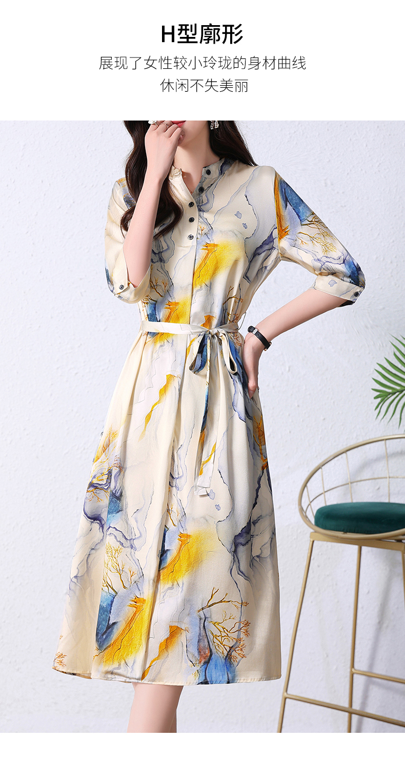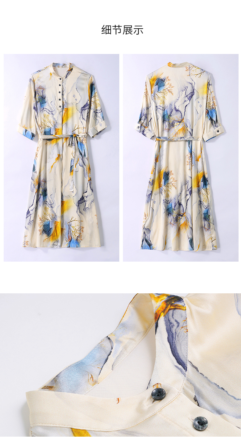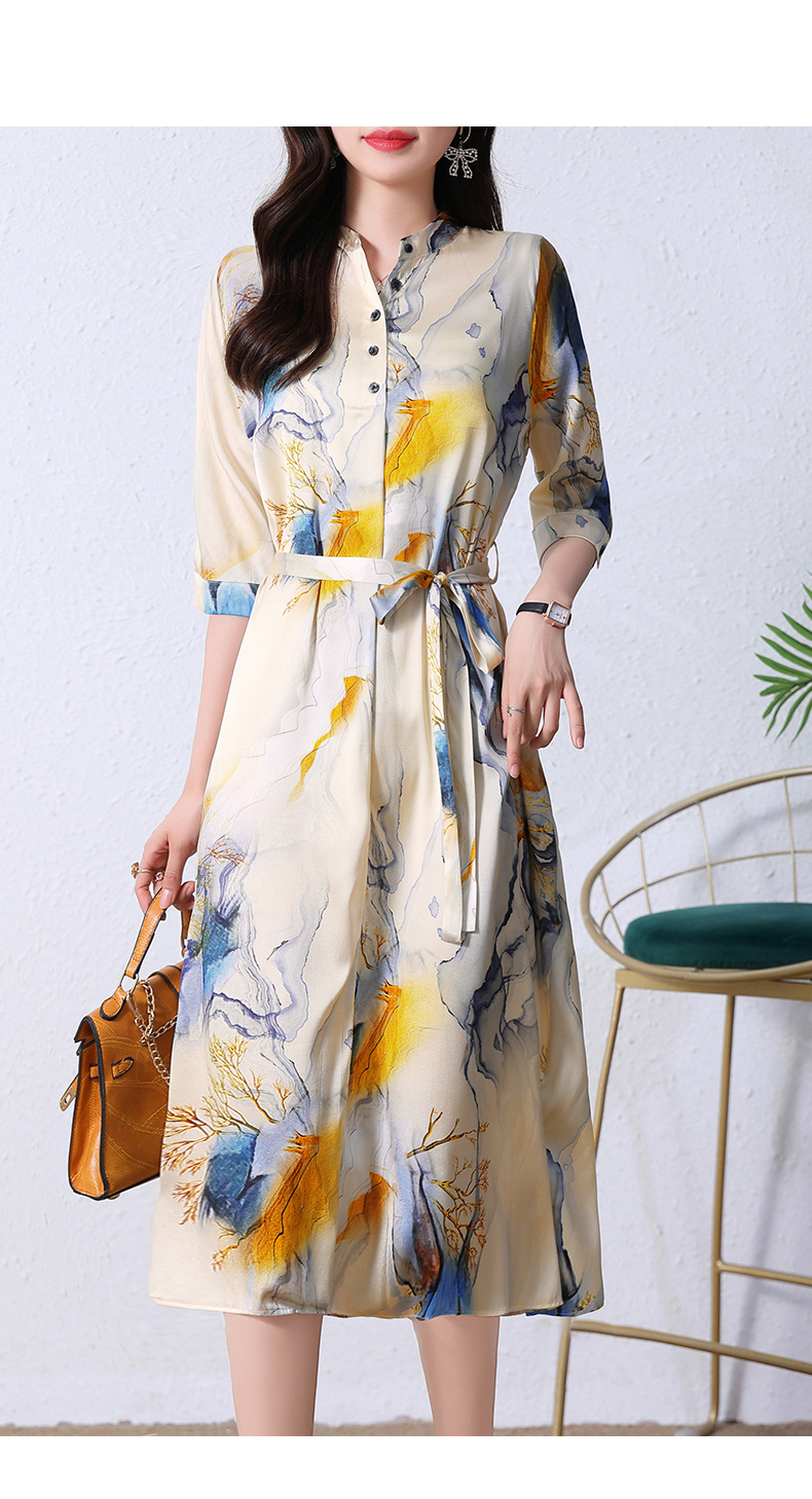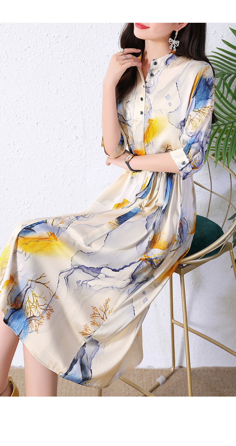 夏季新款,中长款短袖水墨印花收腰裙连衣裙HRYZ7830-1