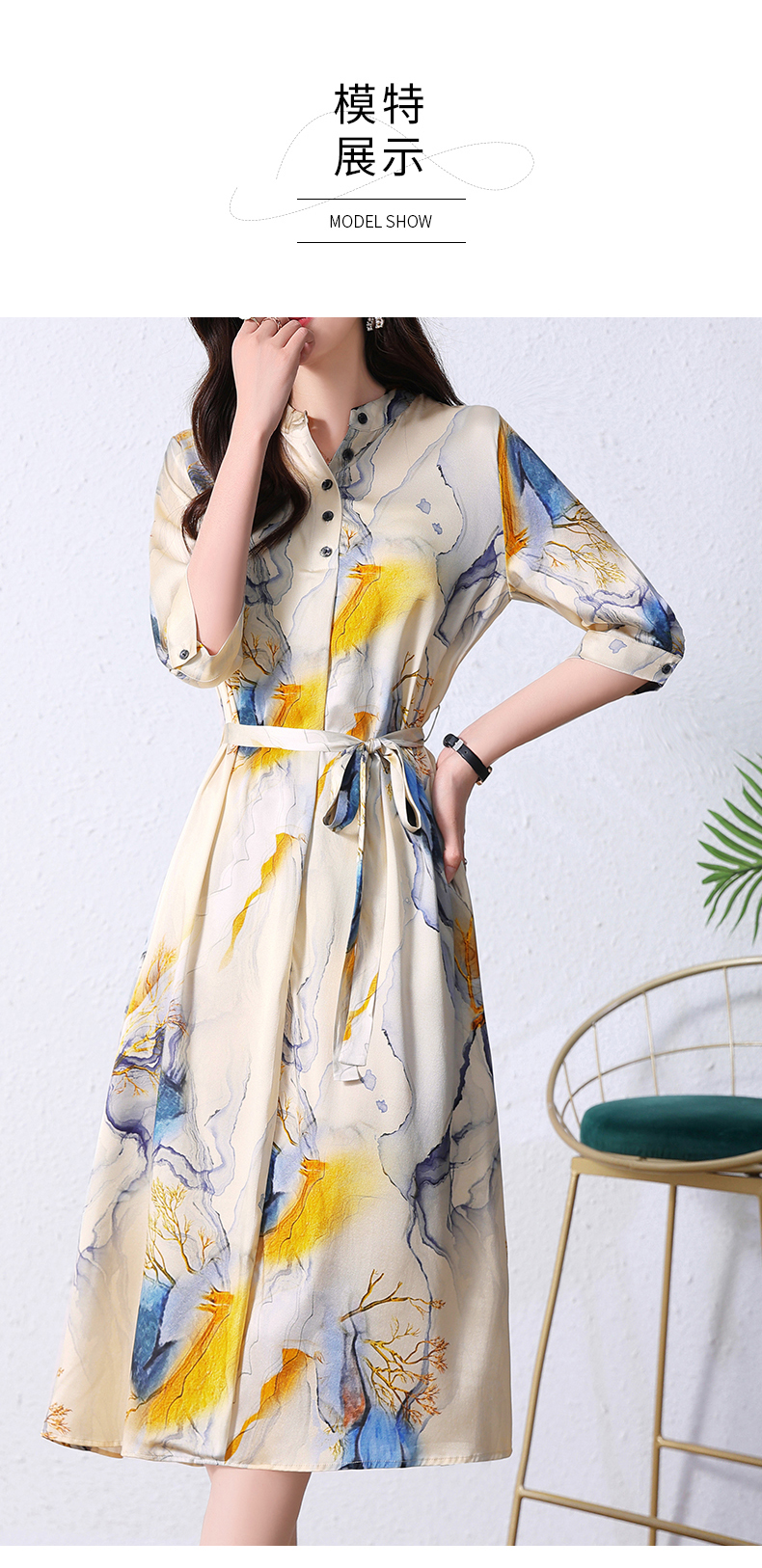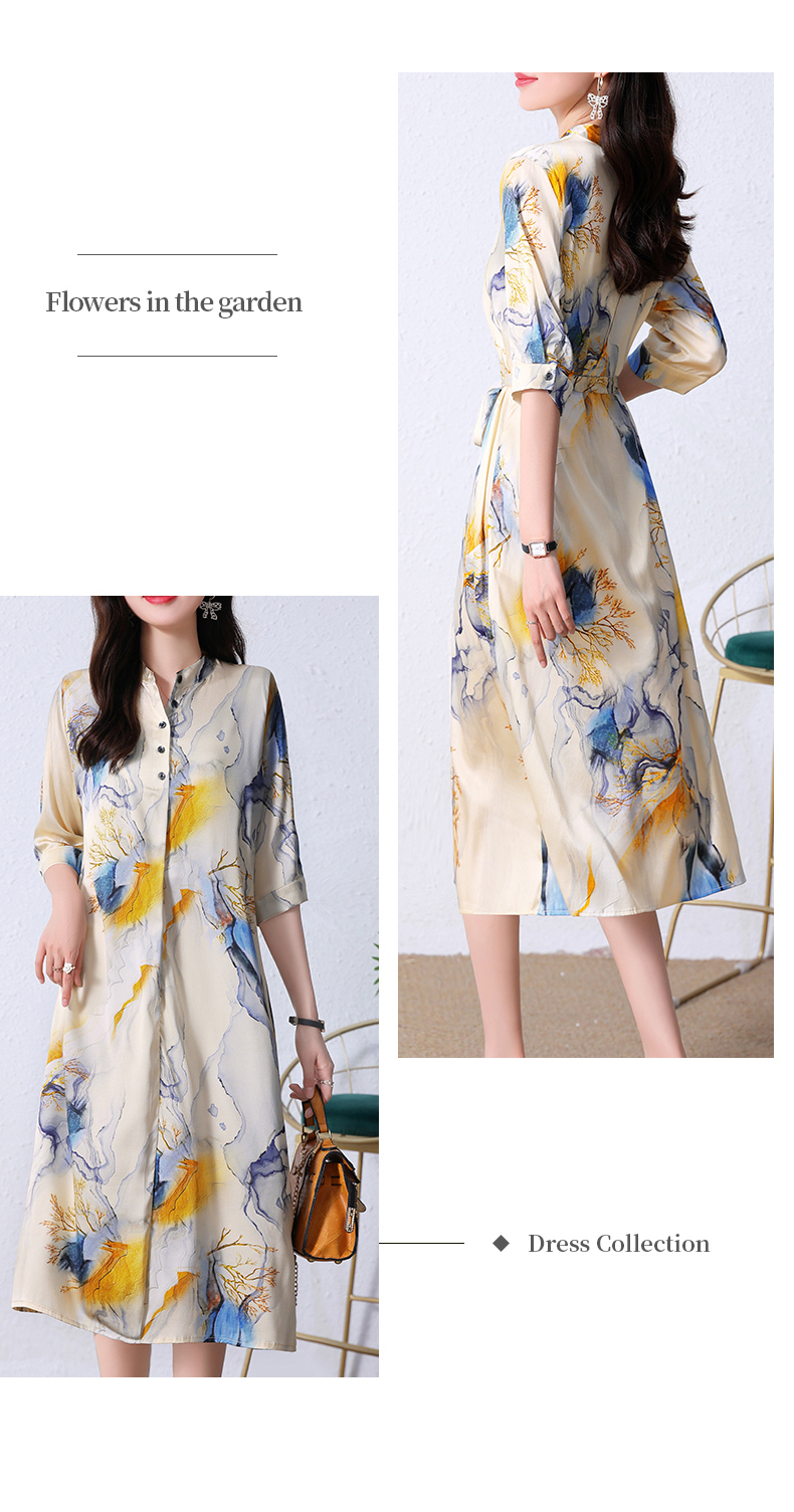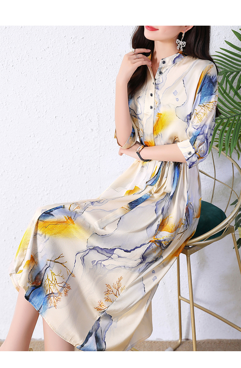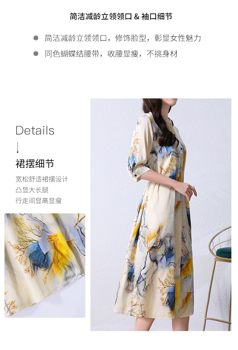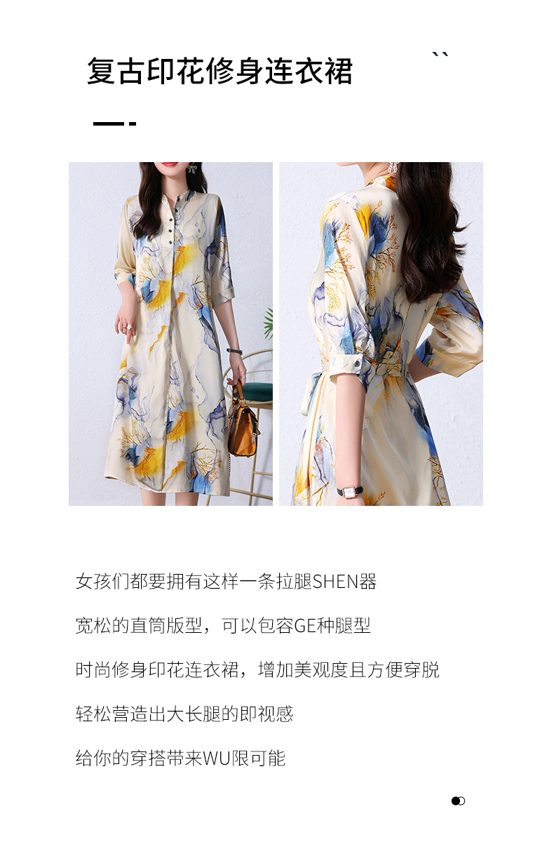 夏季新款,中长款短袖水墨印花收腰裙连衣裙HRYZ7830-1