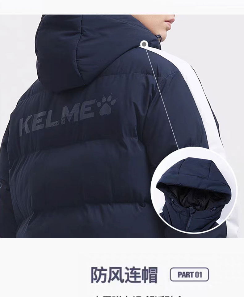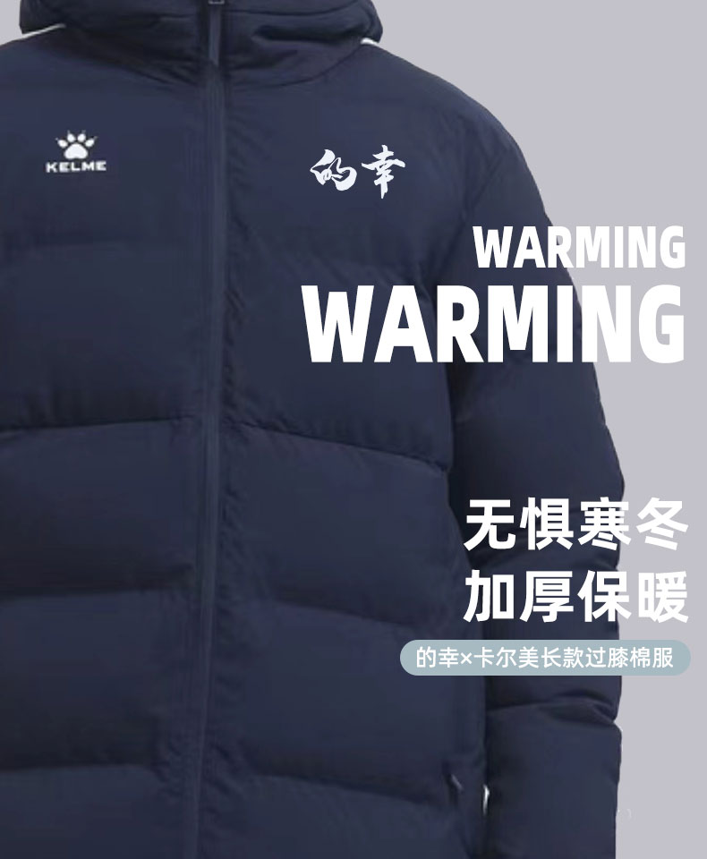 卡尔美联名棉衣男冬季连帽长款棉服穿宽松棉袄加厚保暖外套上衣