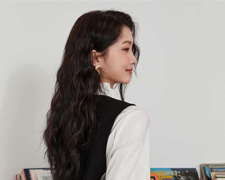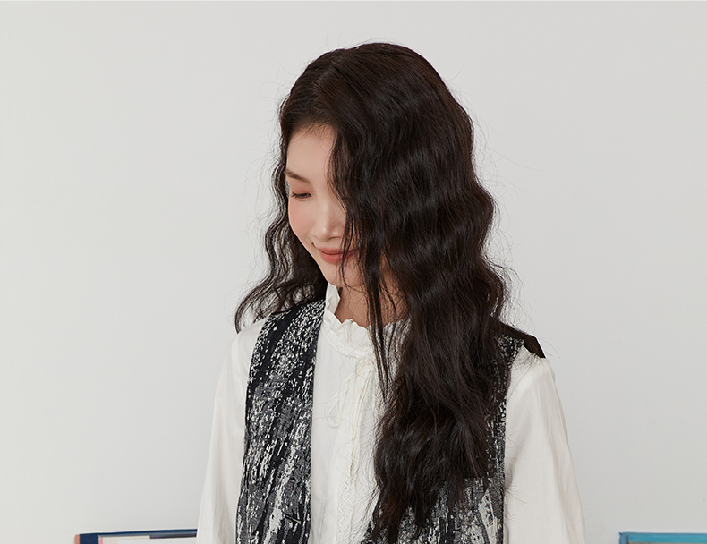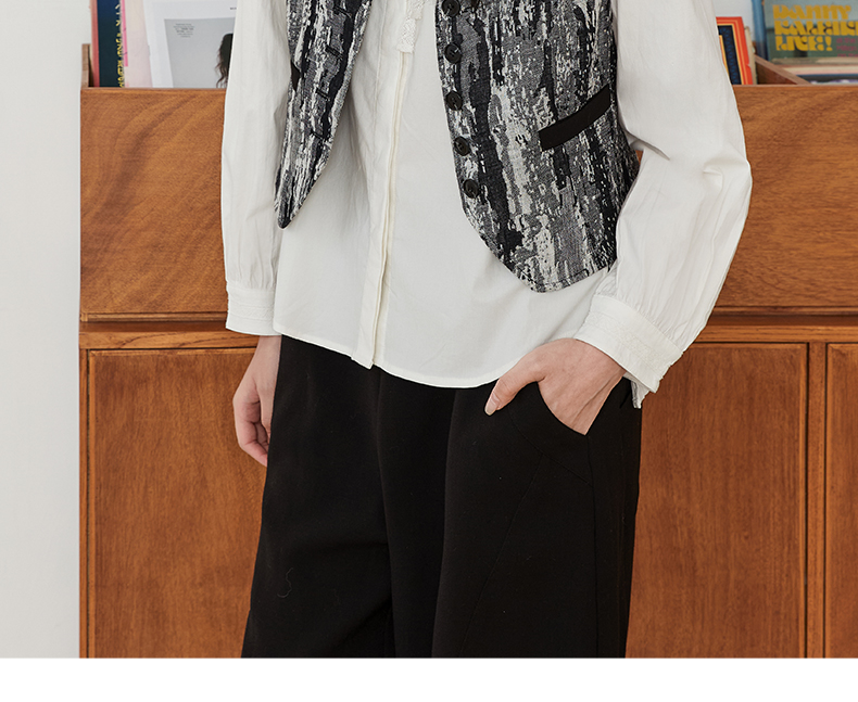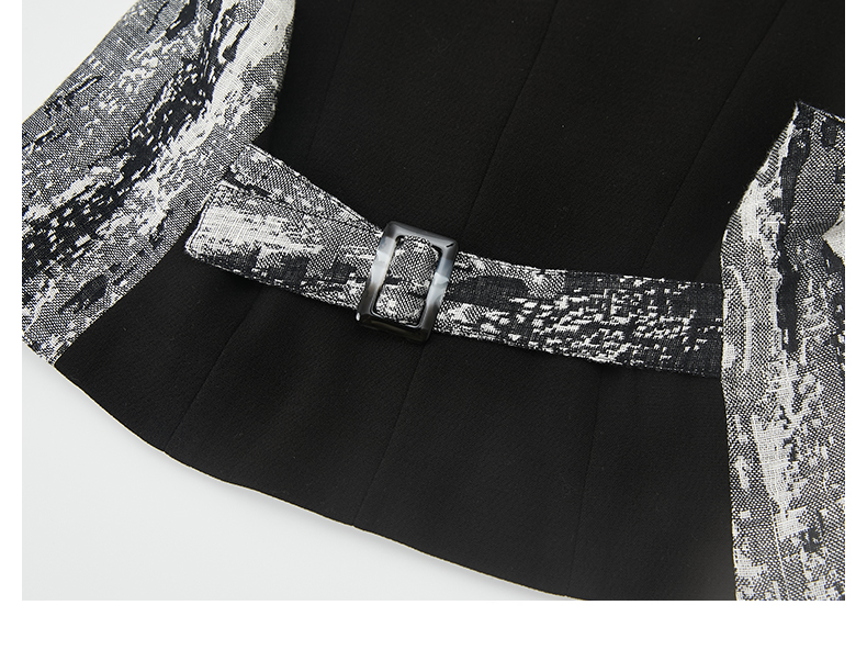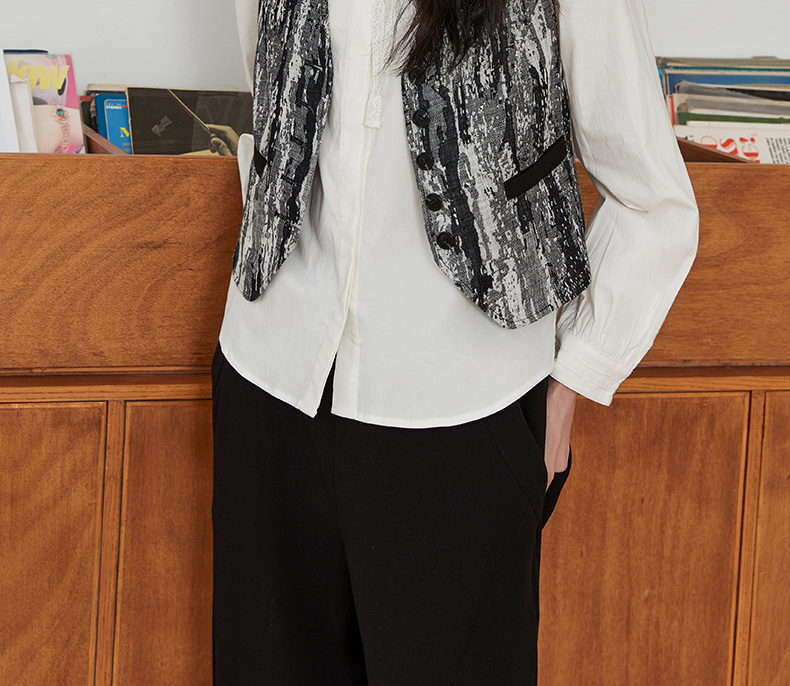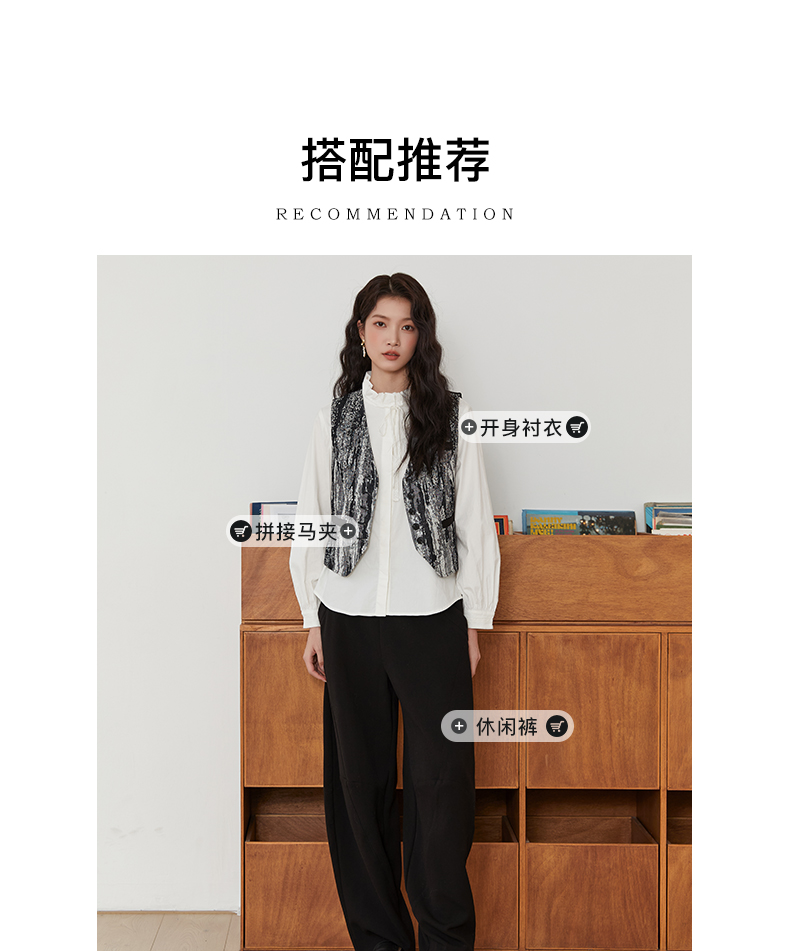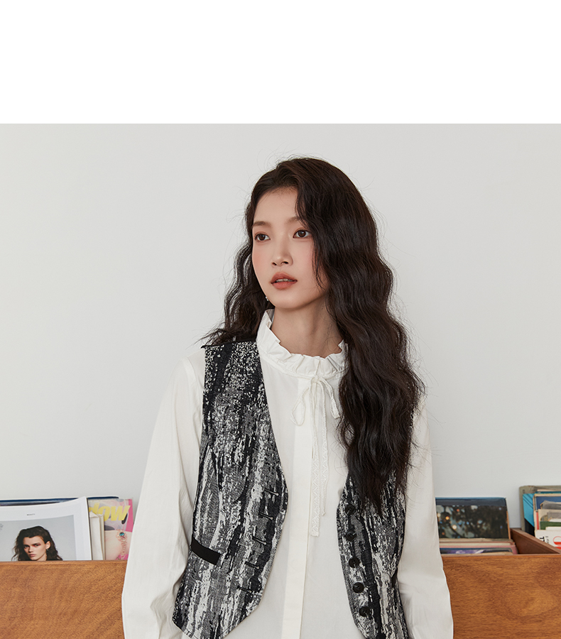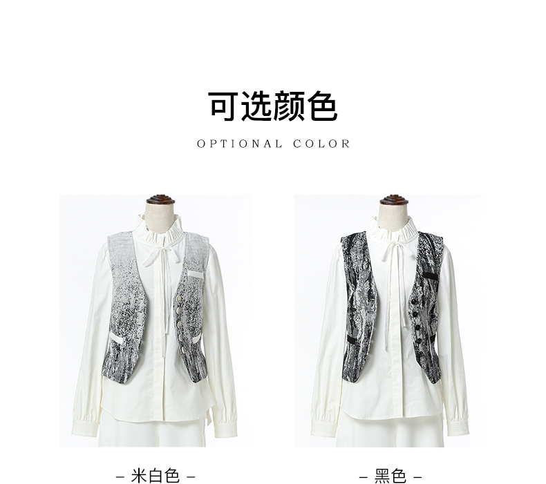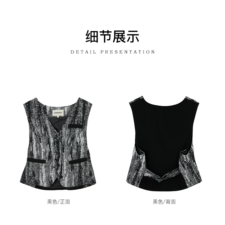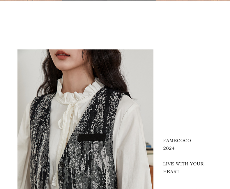Famecoco范可儿马夹拼接系带V字领迷彩外穿马甲通勤女装春秋款FAB6CA022