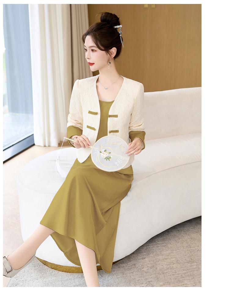 【预订·最迟6天发货】吊带连衣裙2024春夏新款高端精致气质新中式国风蕾丝西装长裙套装