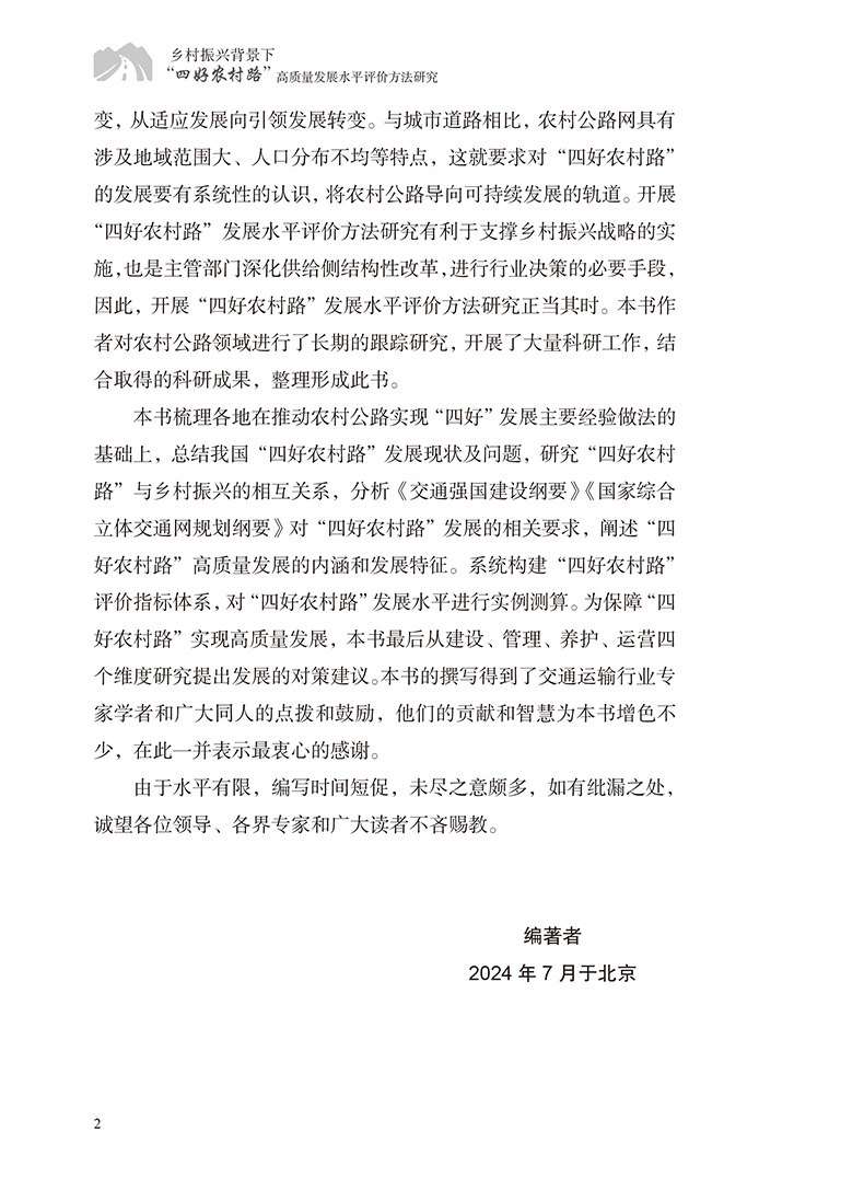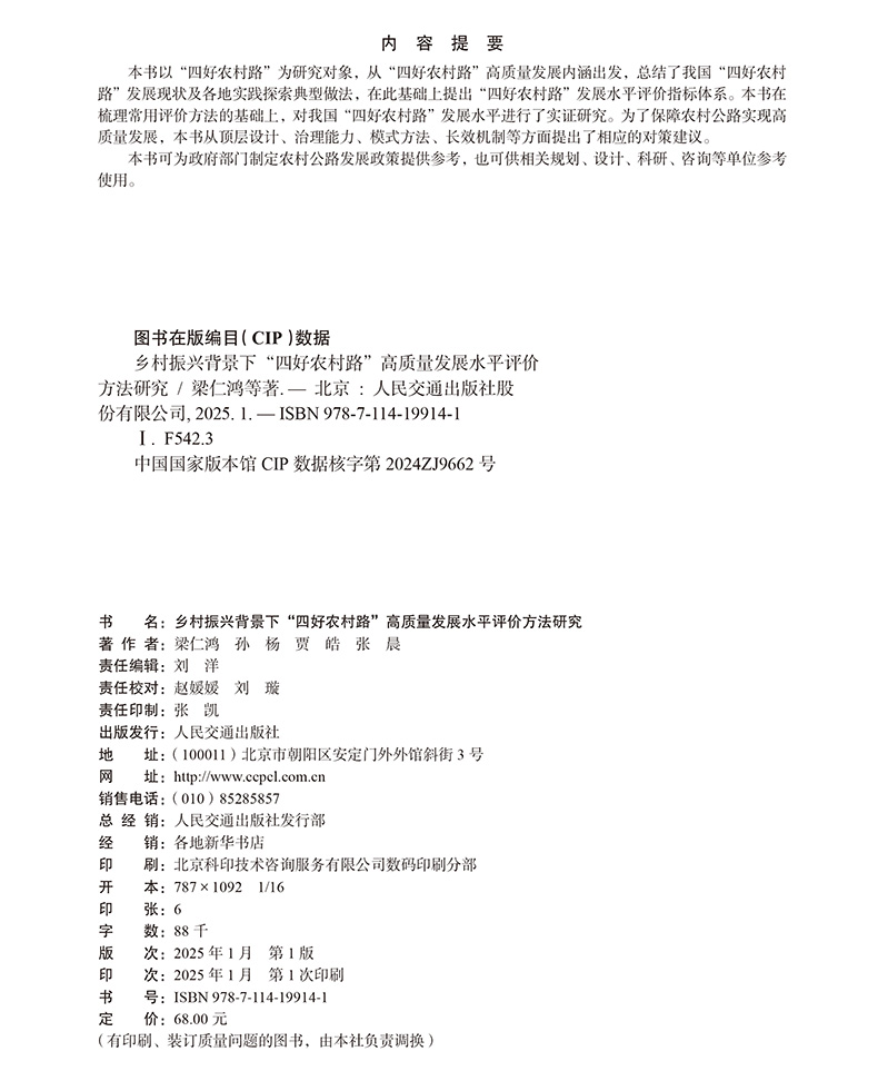 书名:乡村振兴背景下“四好农村路”高质量发展水平评价方法研究