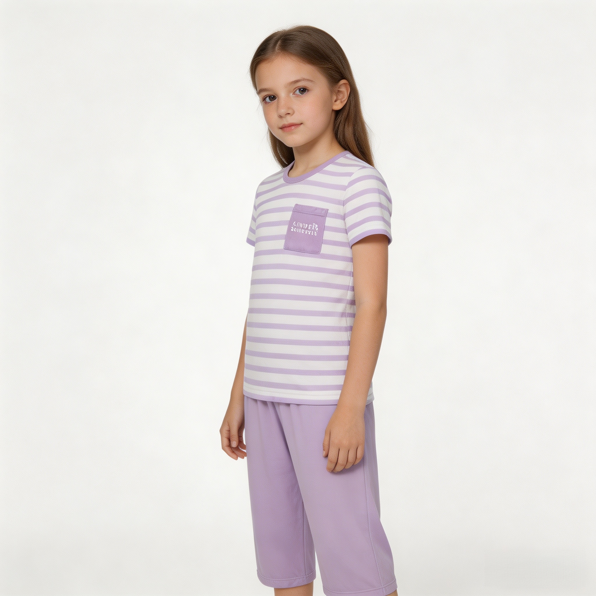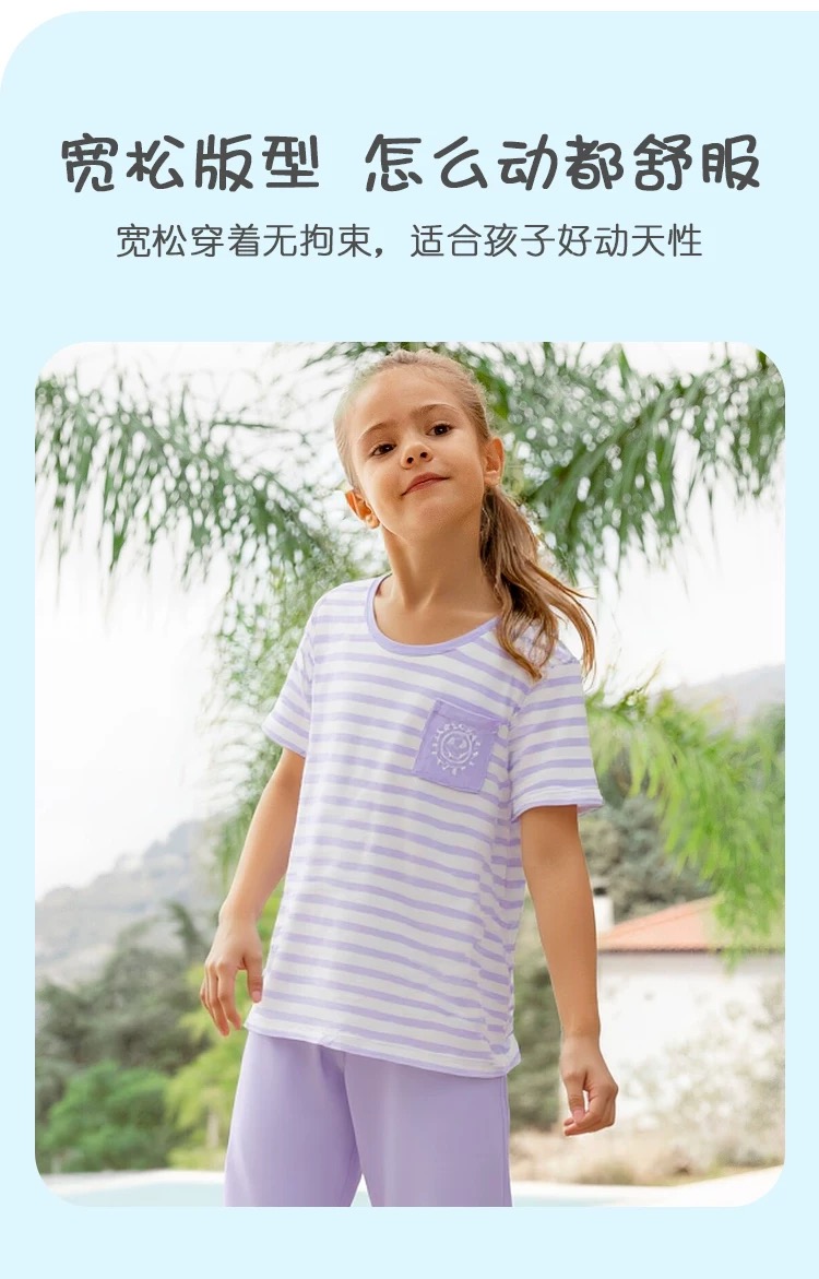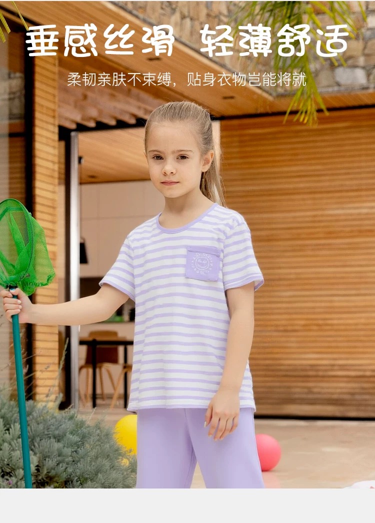 【莫代尔系列】舒雅童装女童短袖七分裤家居套装95%莫代尔5% 氨纶 3F/26383H