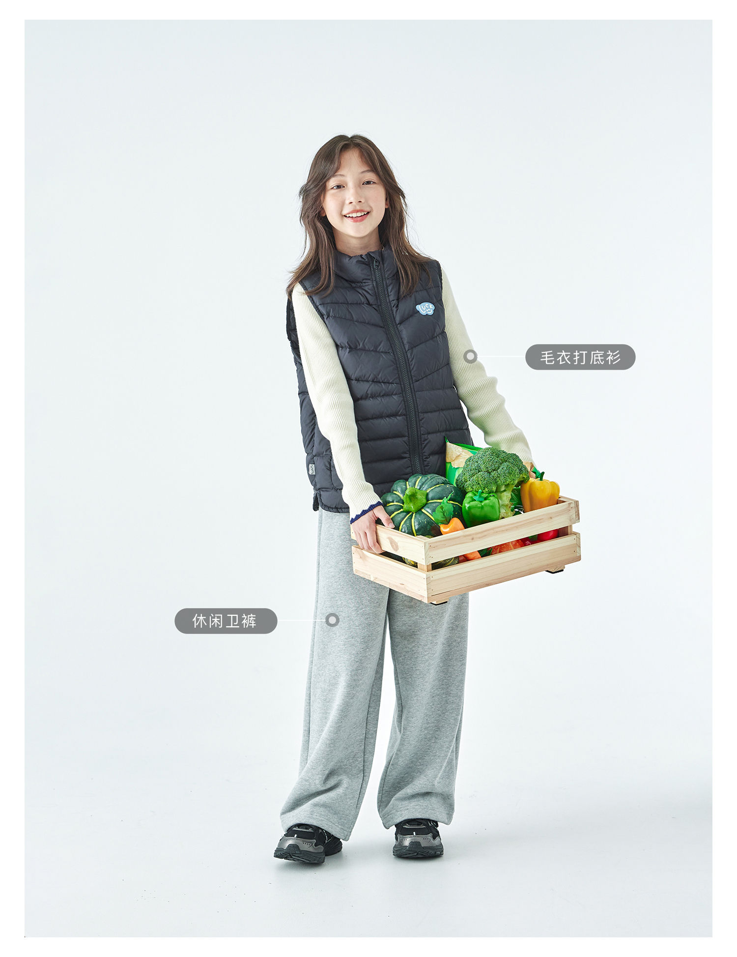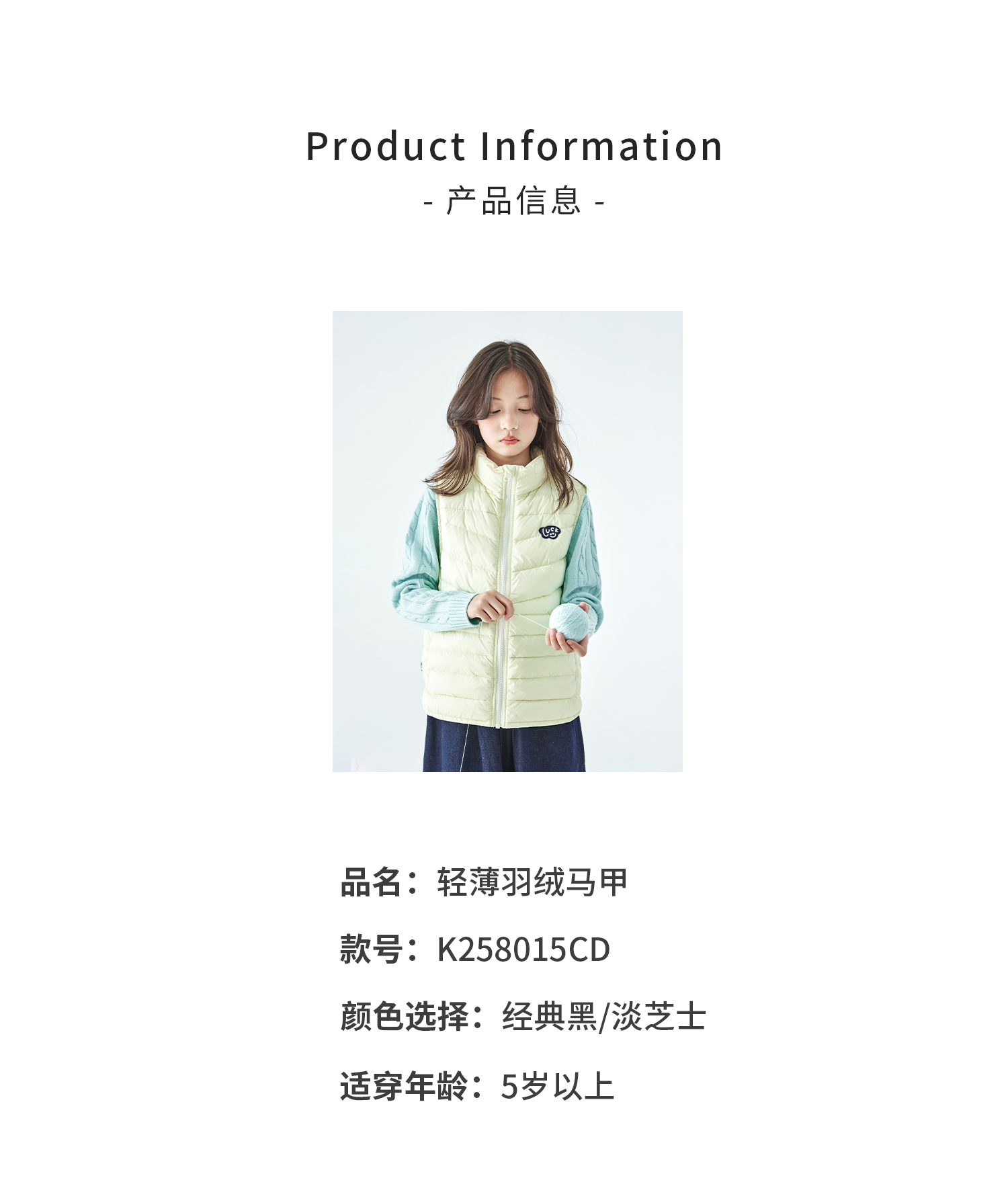 棵初25年秋冬季新款亲子中大女童轻薄羽绒马甲三防面料简约上衣