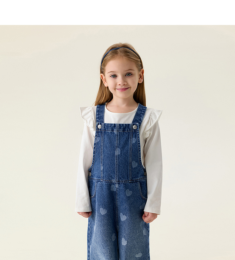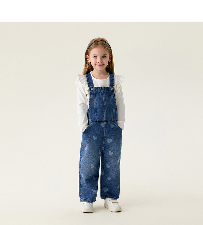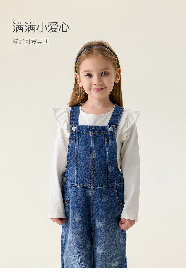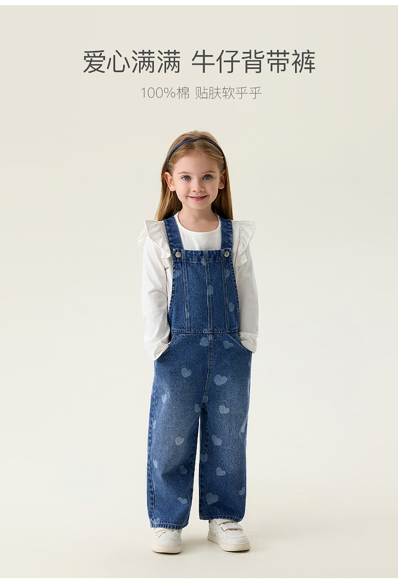 马克珍妮爱心满满女童纯棉牛仔背带裤2026年春装新款560112