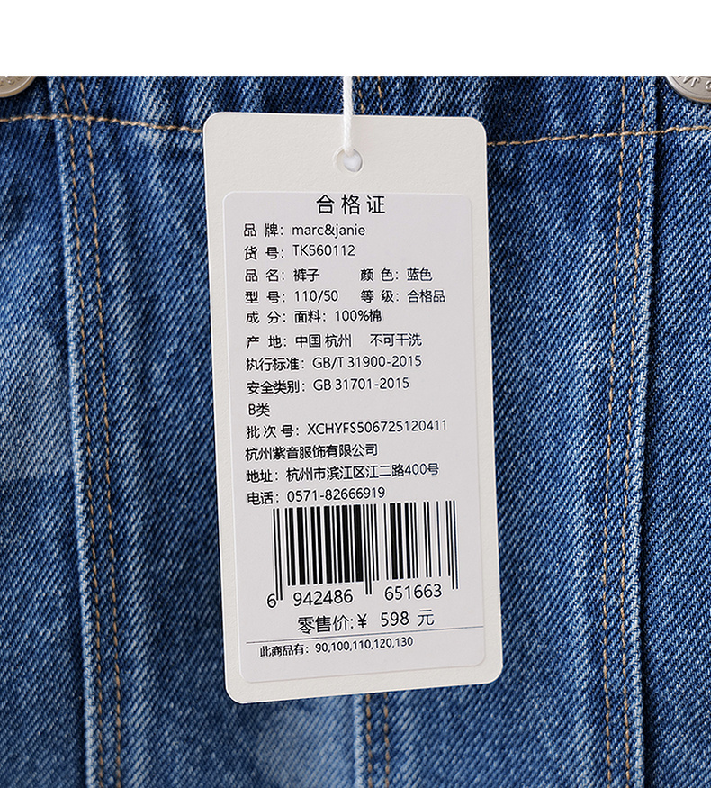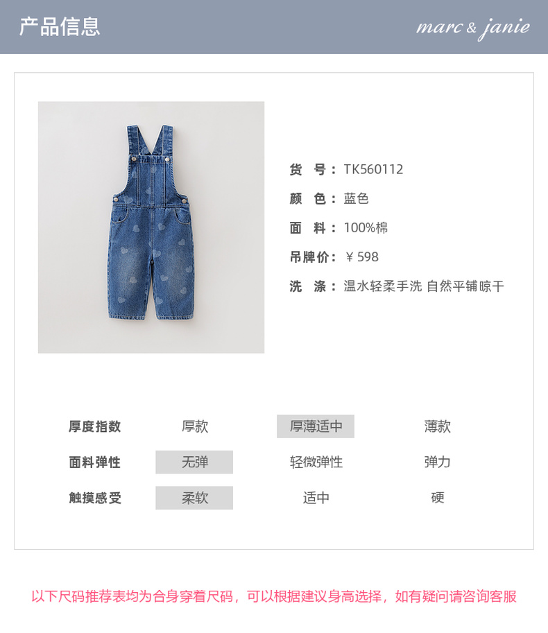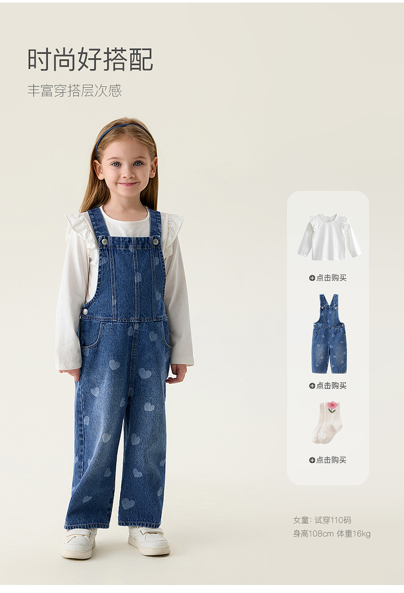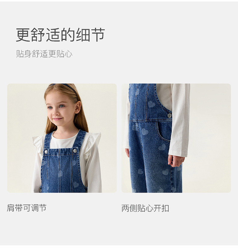 马克珍妮爱心满满女童纯棉牛仔背带裤2026年春装新款560112