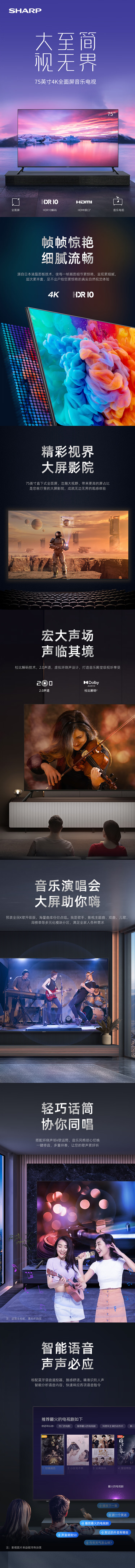 SHARP夏普(13423) 75英寸电视 4T-Z75B3CA 全面屏4K高清杜比音效智能语音遥控液晶平板电视机 75英寸