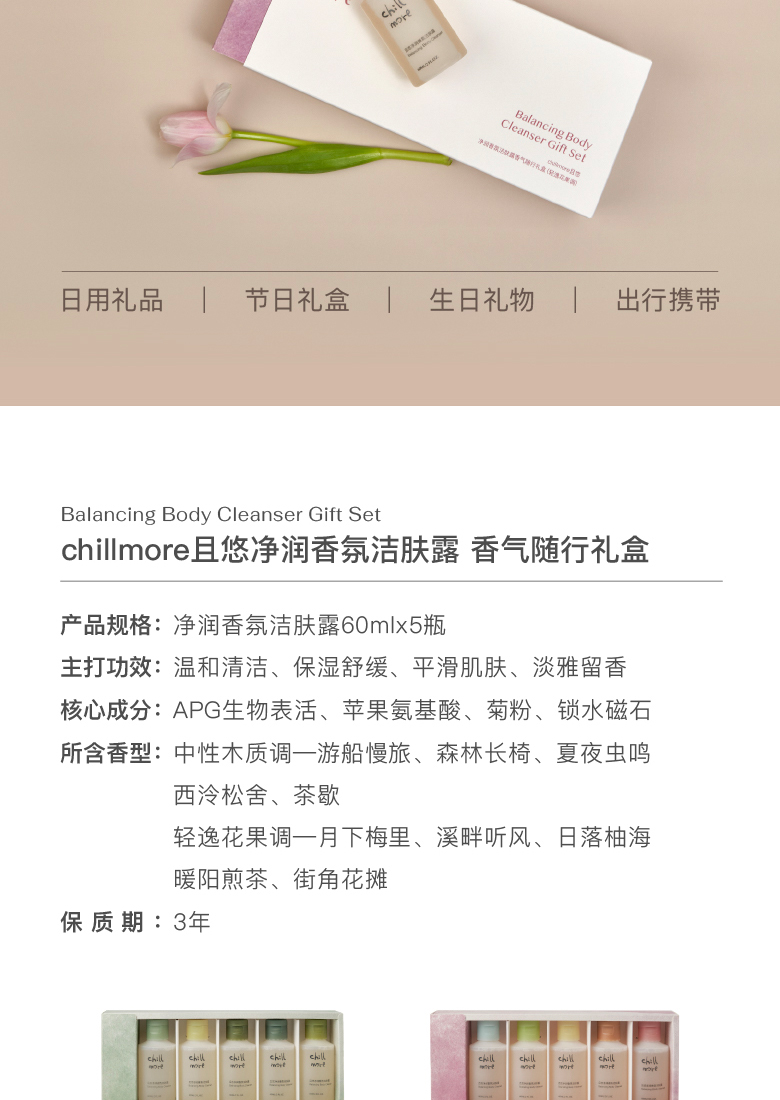 chillmore且悠净润香氛洁肤露 香气随行礼盒60ml*5